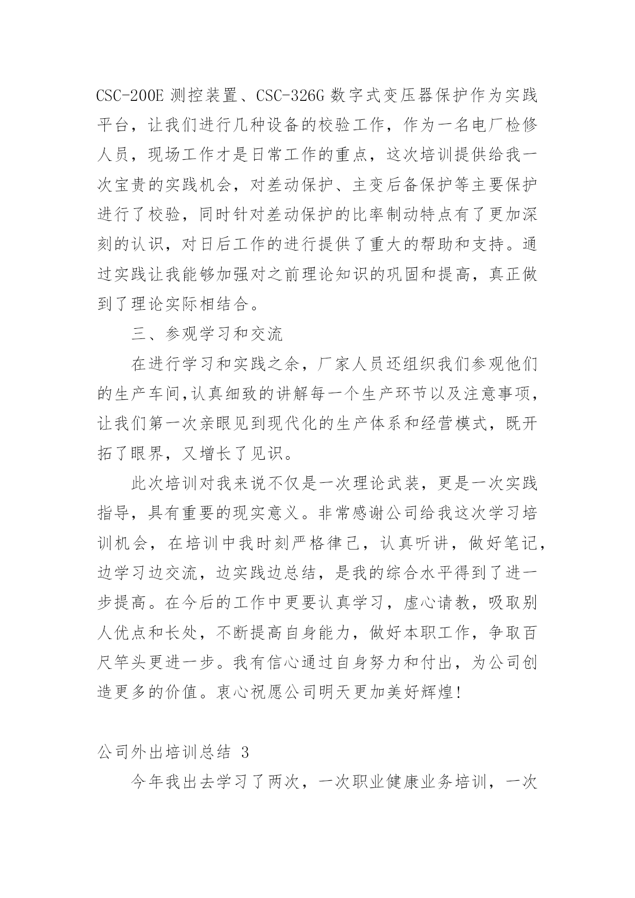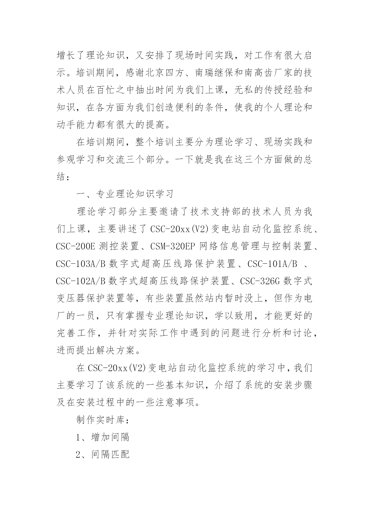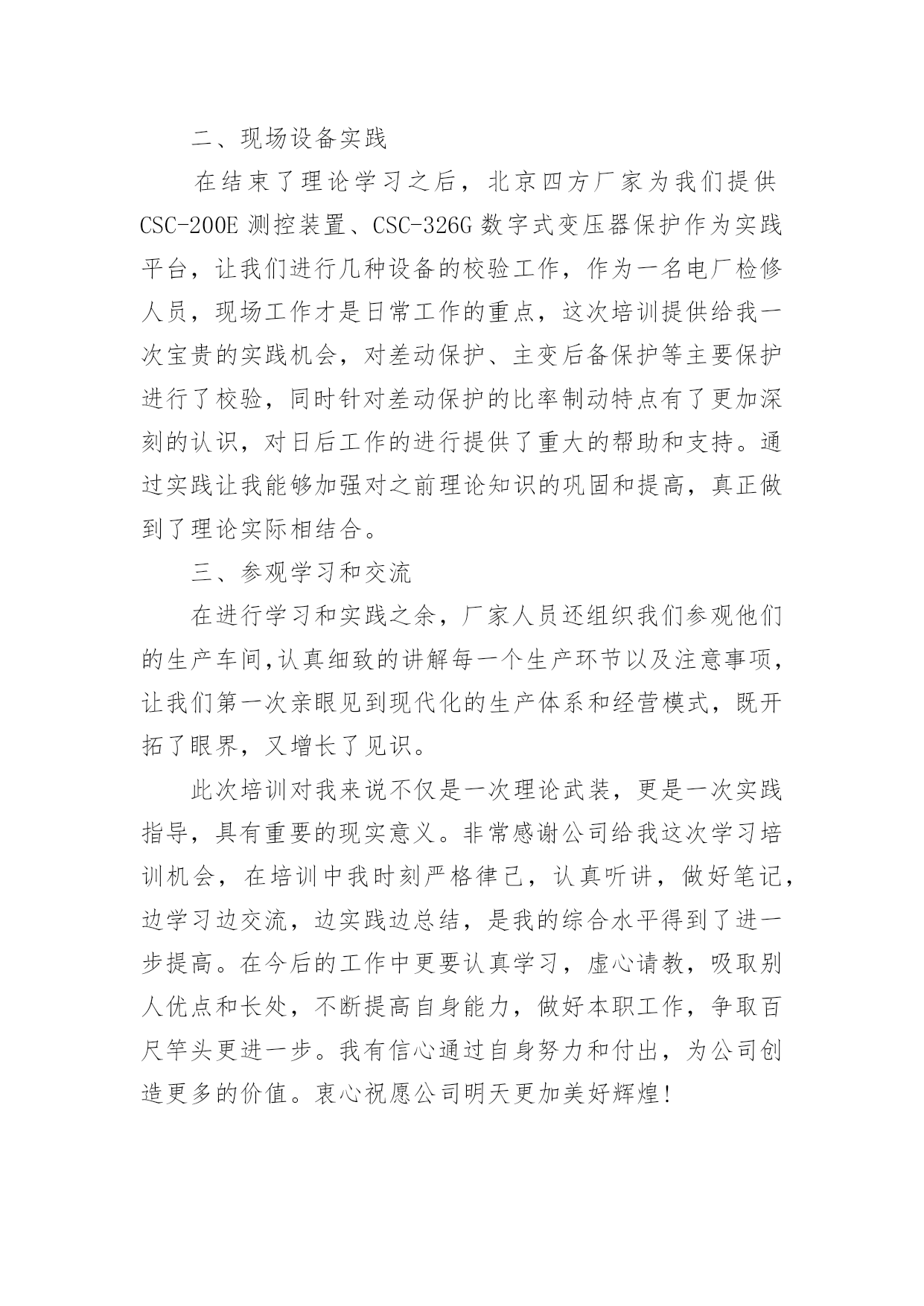 公司外出培训总结总结就是对一个时期的学习、工作或其完成情况进行一次全面系统的回顾和分析的书面材料,它可以使我们更有效率,因此好好准备一份总结吧。那么我们该怎么去写总结呢?下面是小编收集整理的公司外出培训总结,欢迎大家分享。公司外出培训总结1这次的培训已经结束了,我觉得非常的有意义,作为xx的一名员工,我也在不断的提高自己各方面的能力的,还是有一些重要的事情等着我去做好,这是我应该要去反思的,虽然近期在工作当中,我也在不带的积累工作经验,这是对我专业能力的认可,在xx这里的点点滴滴,我也在不断的思考自己各方面的职责,也需要对这次的培训学习总结一番。来到了xx这里也有的几个月的时间了,这确实是让我觉得很有意义,未来在学习当中我也在认真的思考自己的工作经验,这次外出培训,我还是认识到了自身能力的提高,在学习方面我还是需要认真的做好自己的工作,这对我来讲我也是需要看清楚自己的方向,以后在工作当中,我也会不断的.提高自身能力,这对我而言也是很有意义的,我也不希望以后再出现这样的情况了,这次培训的时间虽然不是很长,但是我也还是应该要好好反思清楚的,这是以后需要好好去维持下去的。既然做了这份工作就应该要对自己负责,也是以后需要去反思清楚的,也需要好好的去积累工作经验的,在这段时间以来的学习当中,我也应该要不断的去维持好的状态,这一点是毋庸置疑的,是我对自己学习应该要有的态度,培训时间虽然不长,现在也结束了这一段时间的学习,我也应该要认清楚接下来的方向,只有思考清楚自己接下来的方向,这样才能够做出更好的成绩来,公司的点点滴滴中我一直都觉得这是一个很不错的提高,近期在工作当中,我也是需要对自己有足够多的认识,培训结束的这段时间,在近期的工作当中,我也能够看清楚自己的方向。自我来到xx这里也有一段时间了,我也真切的体会到了自己的问题,以后我也不会再这样消耗自己的时间,我知道这对我来讲,也是非常有必要,我也认清楚了接下来需要做出好的调整的,这对我的影响还是非常有必要的,我现在觉得还是非常有必要的,这对我各方面还是有足够多的提高,这次培训结束之后我也是认识到了自身能力的提高,所以这方面我也是能够认清楚自己的方向,感激这段时间以来的培训,确实是学习到了很多知识,也对接下来的工作更加的有信心了,这一点是非常关键的,是我需要合理规划好的。公司外出培训总结220xx年4月1日至4月12日,我们一行12人参加了北京四方、南瑞继保和南京高速齿轮箱厂家的培训。很高兴公司领导给了我们这次学习的机会,感谢领导对我们的栽培。通过这次培训,让我从中受益匪浅。这次培训实用性强,既增长了理论知识,又安排了现场时间实践,对工作有很大启示。培训期间,感谢北京四方、南瑞继保和南高齿厂家的技术人员在百忙之中抽出时间为我们上课,无私的传授经验和知识,在各方面为我们创造便利的条件,使我的个人理论和动手能力都有很大的提高。在培训期间,整个培训主要分为理论学习、现场实践和参观学习和交流三个部分。一下就是我在这三个方面做的总结:一、专业理论知识学习理论学习部分主要邀请了技术支持部的技术人员为我们上课,主要讲述了CSC-20xx(V2)变电站自动化监控系统、CSC-200E测控装置、CSM-320EP网络信息管理与控制装置、CSC-103A/B数字式超高压线路保护装置、CSC-101A/B、CSC-102A/B数字式超高压线路保护装置、CSC-326G数字式变压器保护装置等,有些装置虽然站内暂时没上,但作为电厂的一员,只有掌握专业理论知识,学以致用,才能更好的完善工作,并针对实际工作中遇到的问题进行分析和讨论,进而提出解决方案。在CSC-20xx(V2)变电站自动化监控系统的学习中,我们主要学习了该系统的一些基本知识,介绍了系统的安装步骤及在安装过程中的一些注意事项。制作实时库:1、增加间隔2、间隔匹配3、间隔所属保护-添加保护-定义保护ID4、可以全部选择也可以部分选择。在CSC-200E测控装置的'培训中,主要先从外部构造上介绍了该装置,例如接口的作用、各插件板的作用等等,然后老师又从软件方面增加了我们对该装置的了解,例如四遥、测量模拟量、信号采集等等。CSC-100系列数字式超高压线路保护装置适用于220kV及以上电压等级的电网,该装置作为CSL-101、102和103数字式超高压线路保护装置的升级产品,吸取了CSL-100系列数字式线路保护装置的优点和成功经验,在此基础上,进行了改进、完善和提高。虽然我站还未使用该系列产品,但也要充分了解,为以后的运用打下良好的基础。北京四方和南瑞继保都为我们介绍了智能变电站,以前只是听说,但具体怎样实施不是很了解,通过老师们的细心讲解我明白了,智能变电站采用先进、可靠、集成、低碳、环保的智能设备,以全站信息数字化、通信平台网络化、信息共享标准化为基
