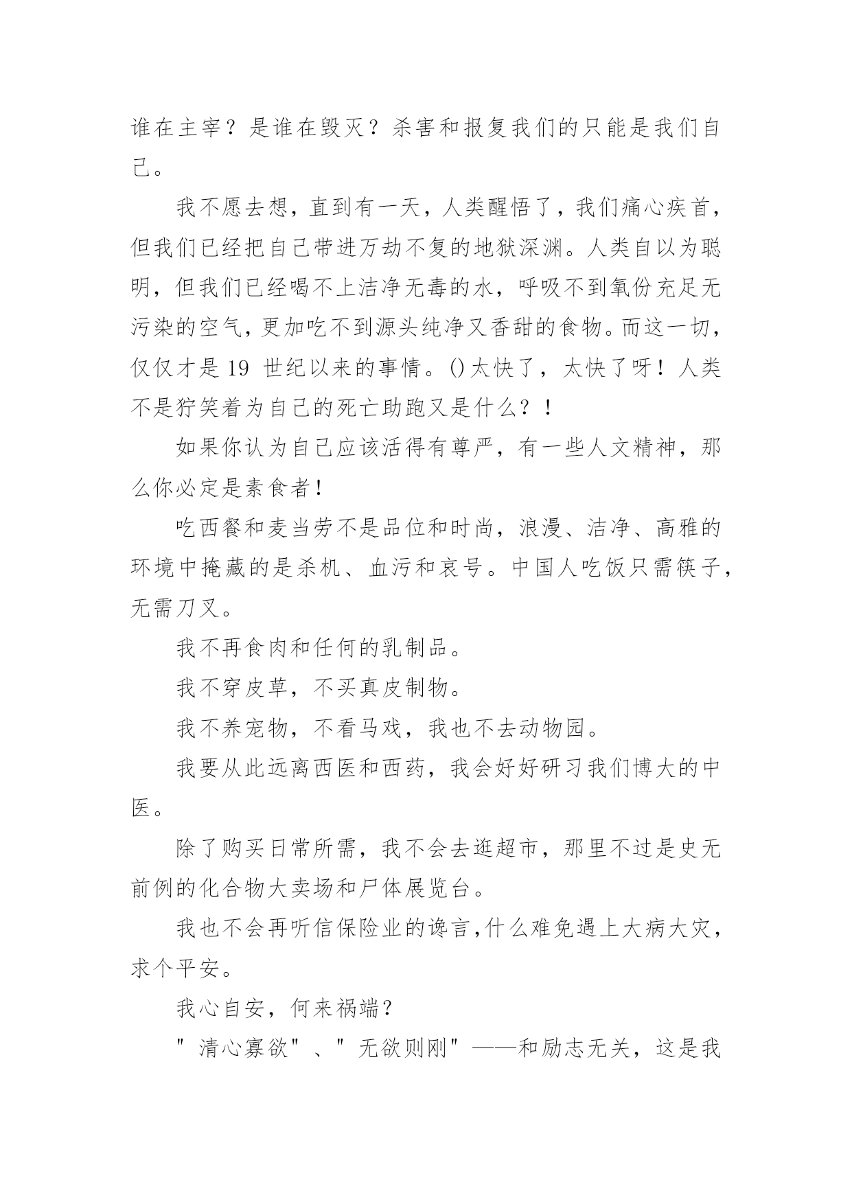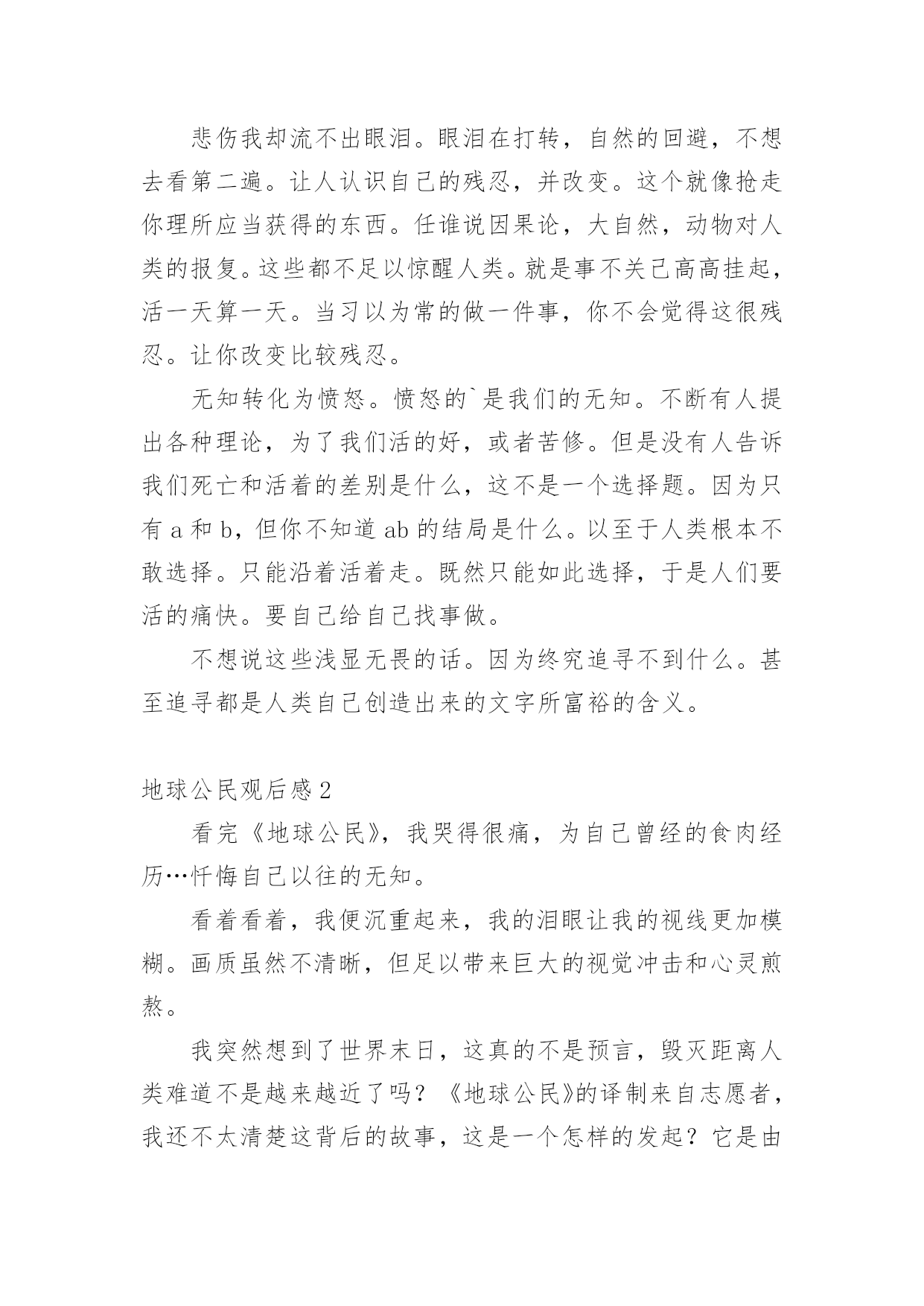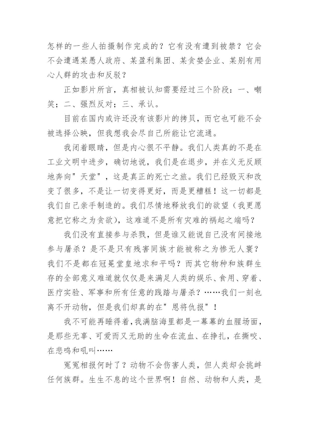 地球公民观后感当认真看完一部作品后,相信大家的视野一定开拓了不少吧,记录下来很重要哦,一起来写一篇观后感吧。观后感你想好怎么写了吗?下面是小编整理的地球公民观后感,希望对大家有所帮助。地球公民观后感1情感至深,很难说出话来。如何表达自己的感受,痛恨人类的行为?还是下定决心从此素食,爱护动物?面对数千年的历史,且不从人类的角度。我也无法去描述人类是如何演变成这样的。我,面对千年的历史。我说不出话,下定不了决心。下定决心,可以用笔记录起来,可以说一千遍。但是假如不坚守,随时都会违心。心是摇曳不定的。现代化社会,人类制定了许多规定,公约。为了给动物死亡前仅剩的一段时间以尊严,优待。机械化屠杀。工作人员也是为了生活而重复着动作。不必说他们多么狠毒,供给本身还是因为需求。动物机械化的生长,从生至死,正如人类寻求目的却依旧只能以人类自身设定目的而追寻直至死亡。人有旦夕祸福,其实人类本质和动物一样,生死往复,死不知生,生不知死。子非鱼焉知鱼之痛。自以为聪明者,不能全然理解哪些愚昧的人或智者他们的幸福和悲伤、以上两句有明显的矛盾存在。我们不了解动物,所以我就不能说人类和动物一样。子非鱼焉知鱼之痛,我不了解你,所以我更不能了解到你了解的我是如何的。看到血腥的场面,我会悲伤。会愤怒。更多的是悲伤和无奈。悲伤是因为面对死亡挣扎抽搐时的无力,无奈跟多的是因为为什么动物和人类要存在在这里,动物被人类所食用食用娱乐。人本身就是动物,可是有时却会那动物和人类区分开来。弱肉强食是自然法则,是人们观察出来的。甚至动物间自相残杀。这些可以给人类残杀动物带来慰藉和借口。总是能找到合适的理由来安慰自己的内心。面对可怜楚楚的羊羔,和一贯认为的蠢猪,憨厚的牛,人类的伙伴狗,还有卖萌的猫儿,我们跟多的会流露出许多情感,但是面对一只虫子,卫生间里的蟑螂。捏死小飞虫,踩死蟑螂。在那一刻,看到被踩扁的蟑螂,稀烂。我想像这对生命的敬畏,但是不知如何控制自己。这些对我们生活是不利的,影响到我们了,可是我们有权利去决定他们的生死么。这一刻他们只是因为光芒飞到夜晚你闪烁的电脑屏幕上,下一刻就被你的双手捏碎成为残骸。我们凭什么拥有决定它们命运的权利,只是我们强大,力量?我们可以让他们死,而且在心理上并不会造成什么影响。可是它们却死亡了。至少这个死亡的定义源于人类,与人类的死亡差别不大。太多想不明白的问题,以及太多想来无益的问题,归类于无益,是因为想不明白。想不明白,首先是承认自己的无知,以及学习前人的东西学的太少。而是,不知道通过什么途径去搞明白去这些事情。悲伤我却流不出眼泪。眼泪在打转,自然的回避,不想去看第二遍。让人认识自己的残忍,并改变。这个就像抢走你理所应当获得的东西。任谁说因果论,大自然,动物对人类的报复。这些都不足以惊醒人类。就是事不关己高高挂起,活一天算一天。当习以为常的做一件事,你不会觉得这很残忍。让你改变比较残忍。无知转化为愤怒。愤怒的`是我们的无知。不断有人提出各种理论,为了我们活的好,或者苦修。但是没有人告诉我们死亡和活着的差别是什么,这不是一个选择题。因为只有a和b,但你不知道ab的结局是什么。以至于人类根本不敢选择。只能沿着活着走。既然只能如此选择,于是人们要活的痛快。要自己给自己找事做。不想说这些浅显无畏的话。因为终究追寻不到什么。甚至追寻都是人类自己创造出来的文字所富裕的含义。地球公民观后感2看完《地球公民》,我哭得很痛,为自己曾经的食肉经历…忏悔自己以往的无知。看着看着,我便沉重起来,我的泪眼让我的视线更加模糊。画质虽然不清晰,但足以带来巨大的视觉冲击和心灵煎熬。我突然想到了世界末日,这真的不是预言,毁灭距离人类难道不是越来越近了吗?《地球公民》的译制来自志愿者,我还不太清楚这背后的故事,这是一个怎样的发起?它是由怎样的一些人拍摄制作完成的?它有没有遭到被禁?它会不会遭遇某愚人政府、某盈利集团、某贪婪企业、某别有用心人群的攻击和反驳?正如影片所言,真相被认知需要经过三个阶段:一、嘲笑;二、强烈反对;三、承认。目前在国内或许还没有该影片的拷贝,而它也可能不会被选择公映,但我想我会尽自己所能让它流通。我闭着眼睛,但是内心很不平静。我们人类真的不是在工业文明中进步,确切地说,我们是在退步,并在义无反顾地奔向"天堂",这是真正的死亡之旅。我们已经毁灭和改变了很多,不是让一切变得更好,而是更糟糕!这一切都是我们自己亲手制造的。我们尽情地释放我们的欲望(我更愿意把它称之为贪欲),这难道不是所有灾难的祸起之端吗?我们没有直接参与杀戮,但是谁又能说自己没有间接地参与屠杀?是不是只有残害同族才能被称之为惨无人寰?我们不是都在冠冕堂皇地求和平吗?而其它物种和族群生存的全部意义难道就仅仅是来满足人类的娱乐、食用、穿着、医疗实验、军事和所有任意的践踏与屠杀?……我们一刻也离不