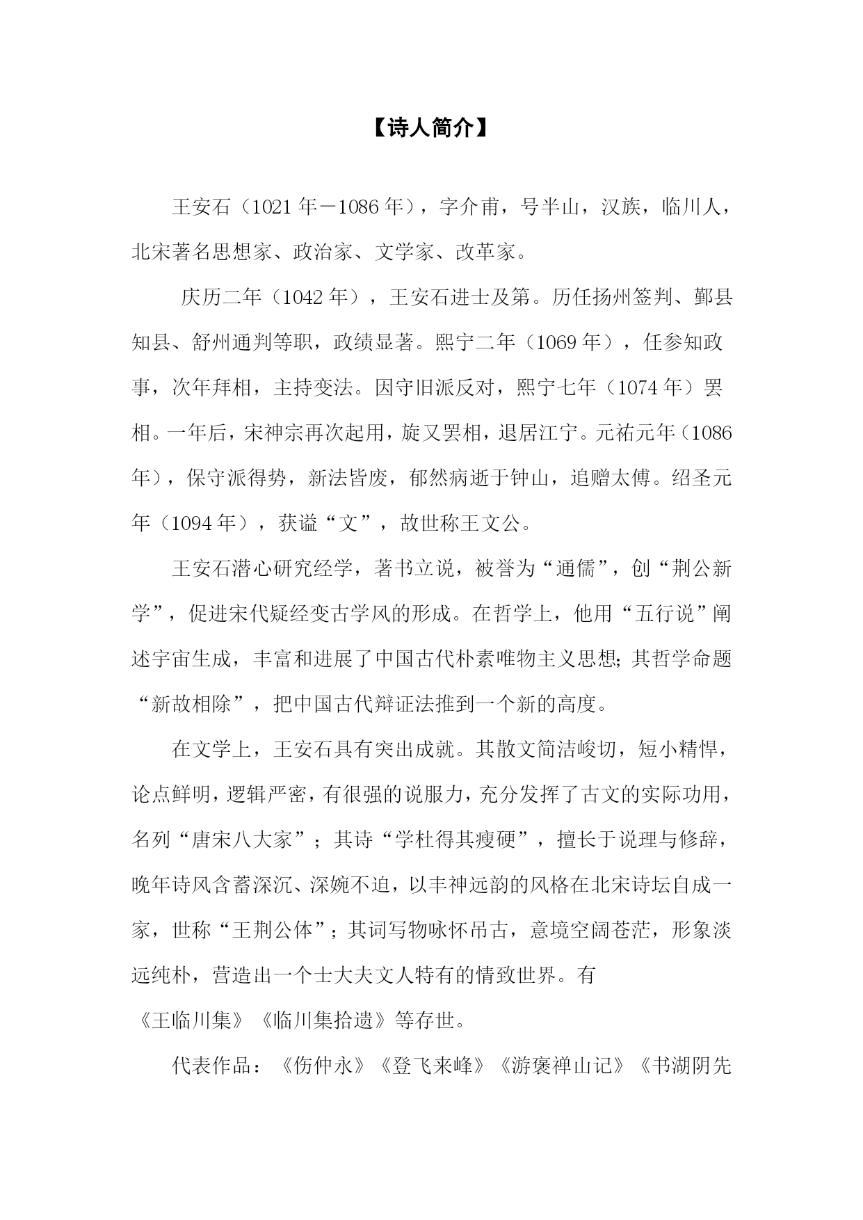 (诗人简介)王安石-最新经典通用教辅资料.doc