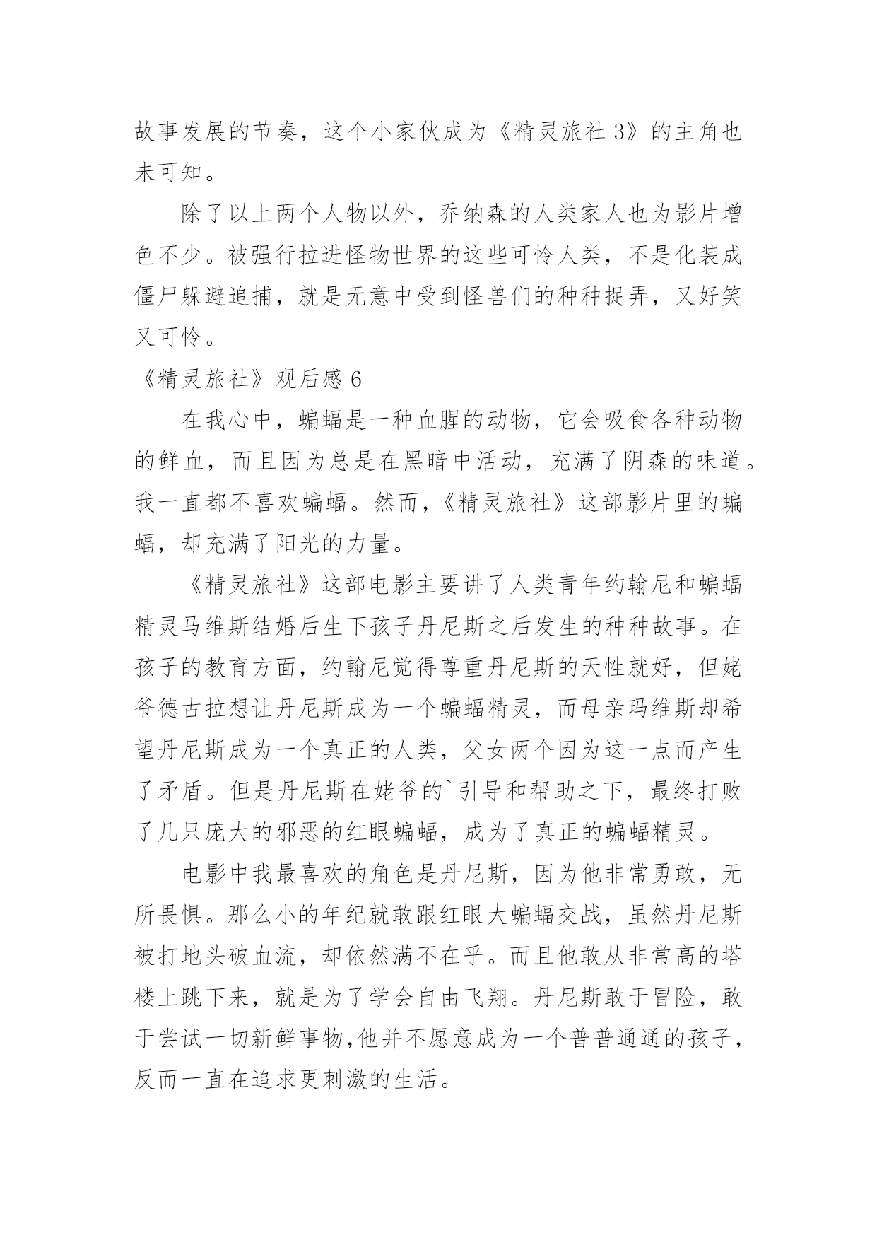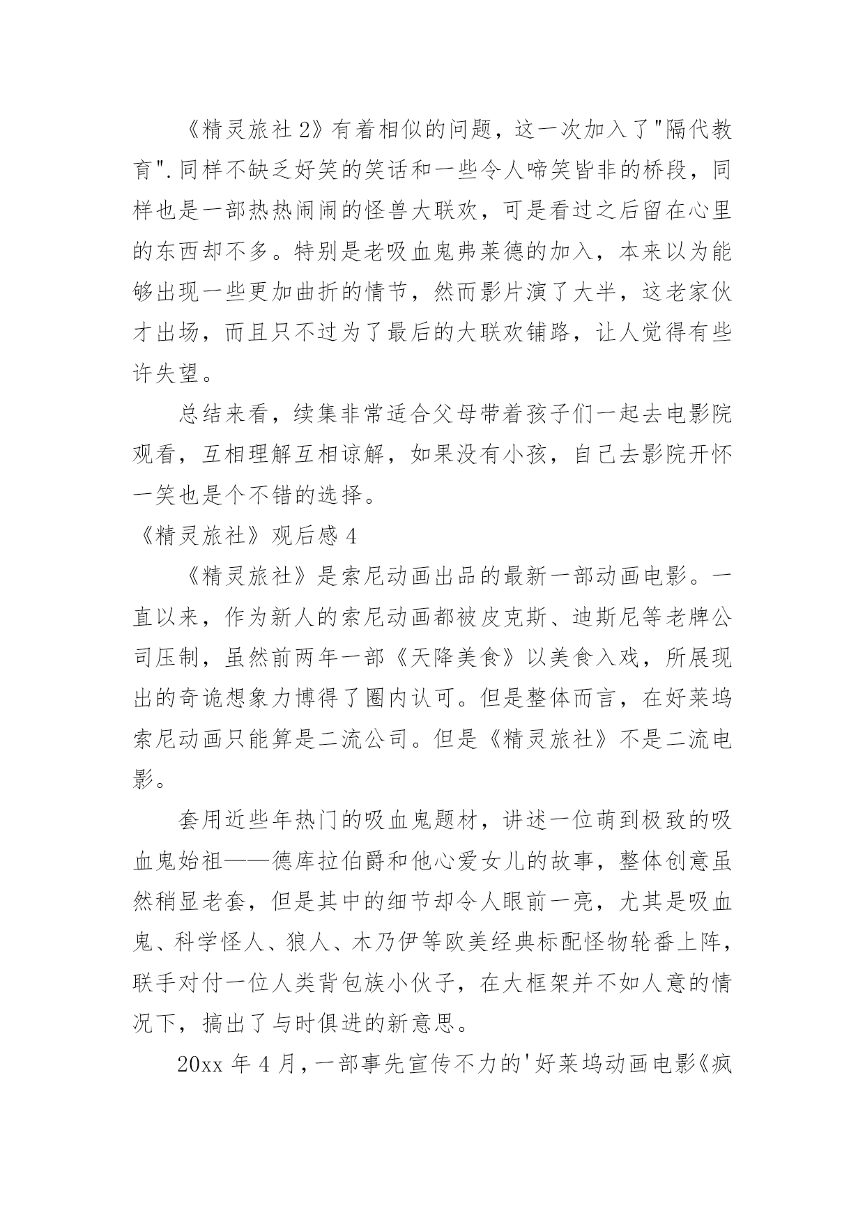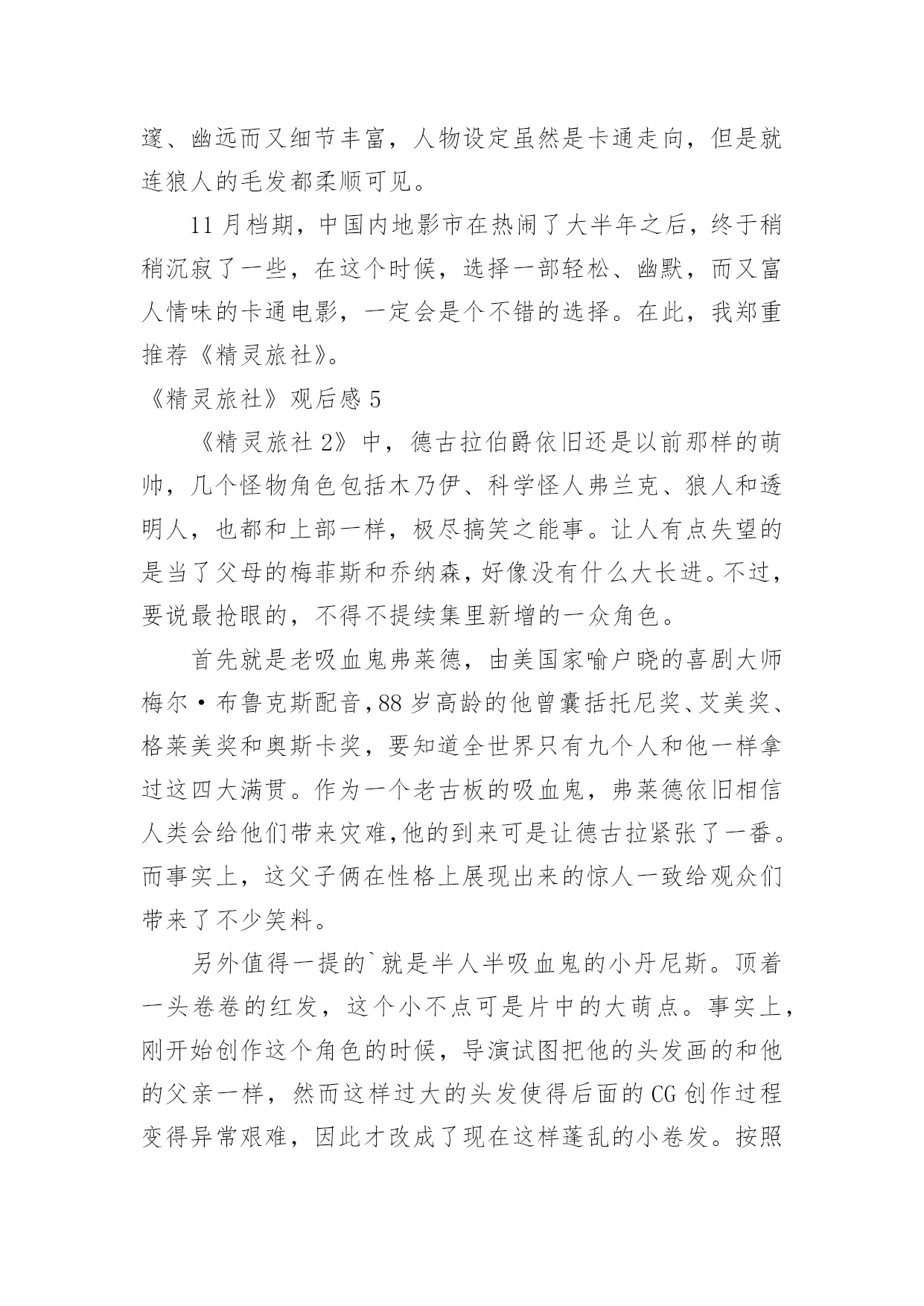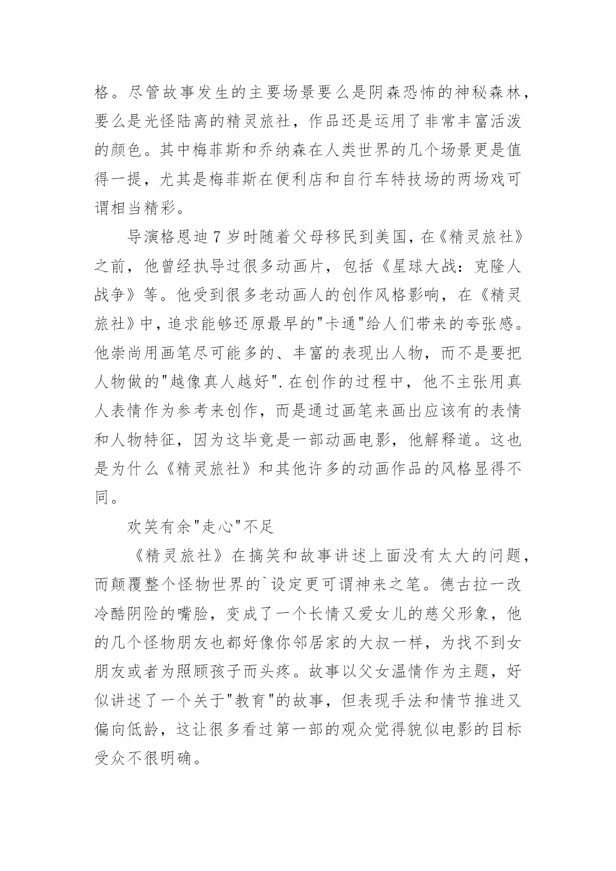 《精灵旅社》观后感《精灵旅社》观后感在看完一部作品以后,能够给我们不少启示,这时我们很有必要写一篇观后感了。在写观后感之前,可以先参考范文,以下是小编为大家收集的《精灵旅社》观后感,希望能够帮助到大家。《精灵旅社》观后感1今天我看了一场《精灵旅社》的电影,看完后内心还是久久不能平静。这电影里面全部都是怪物,我顿时感到很恶心。有一个伯爵,他是吸血鬼僵尸。戴维斯是他的女儿,这是一个爱冒险,想要自己当个侦探的一个女孩子。戴维斯本来想要杀掉那个男人,但是在戴维斯偷音乐谱的时候,那个男人在危险的时刻救出了戴维斯,他们两个就成为了一对好朋友,最后他们相爱了。但是戴维斯的`父亲就是那个吸血鬼伯爵,他不同意他的女儿嫁给那个男人。但我觉得那个男人的这种英雄精神太棒了!而那个吸血鬼伯爵,他用钢琴弹出了一些噪音,还把水里的水怪给吸引了出来。男人请来一个朋友,把电脑上最好听的歌曲挑了出来,让水怪跟他们一起跳舞。而那个吸血鬼伯爵很不耐烦,就自己一不小心滑下了悬崖。这时男人变成了一只飞碟去救了那个吸血鬼僵尸。救到岸上后,老头子把全部的钱交给了男人,还同意了他的女儿跟那个男人的婚事,最后那个男人买了戒指跟戴维斯结婚了。在这部电影中,我觉得那个男人非常的英勇,当初戴维斯的爸爸不同意他们俩的婚事,但是这个男人还是坚持到底,努力着,最后他们两个人终于成功了,在一起了。我很佩服他的这种坚持到底的精神。《精灵旅社》观后感2近几年来,个人最爱的便是索尼出品的动画,快速的对白和密集的笑点,几乎没有给观众留下多少可以喘息时间,但却是其制胜的法宝。《精灵旅社》是这样,《精灵旅社2》亦是这样。对于精灵旅社迷来讲,这部影片最大的骚点便是,网罗了史上最臭名昭著的恐怖怪物恶魔角色,赋予他们全新的形象个性和故事设定,打造成了全新的呆萌宠物联盟。影片虽然是一部传统动画电影,但是全程无尿点笑点满满,并且让我们沉浸在欢乐且温馨的氛围中无法自拔。《精灵旅社2》讲述了人类乔纳森与吸血鬼梅菲斯结婚后生下了"混血儿"丹尼斯,面对"仅允许怪物进入"的酒店规则,丹尼斯却并没有表现出任何"怪物"的特征,德古拉与梅菲斯就丹尼斯的教育产生了分歧,德古拉为了激发孙子的吸血鬼基因,给自己的小外孙办起了"怪物训练营"不仅召集了科学怪人、木乃伊、狼人和隐形人自己的一帮老伙记,还请来自己的老爸瓦拉德帮忙,准备彻底唤醒外孙的吸血鬼血统,于是展开一段有笑又有泪的温暖故事。对于精灵旅社迷们来说,德古拉伯爵绝对是最大的看点,虽然在片中,性格残暴气质高冷的吸血鬼德古拉伯爵,变成了有点啰嗦并且控制欲极强的可爱父亲形象,但他不还是那个我们最爱的德古拉伯爵,因为没有了哥特式的黑暗系风格他显得更加可爱。在德古拉的`召唤下,木乃伊、科学怪人、隐形人等我们熟知的小怪物们悉数回归,老伙计们重聚瞬间开启搞笑攻势。同时小宝宝和德古拉爸爸这一老一少的加入,让原本已经充满了喜剧因素的《精灵旅社2》显得更加的搞笑。相比《精灵旅社》第一部的惊艳,《精灵旅社2》显得有些中规中矩,但整体制作水准及品质并没有下滑,画面有所进步,搞笑部分更是华丽升级,完全不输第一部,是一部让人毫无压力看完,心情还十分舒畅的电影。全片90分钟,不仅从头笑到尾,还从头萌到尾,不论是人物设置还是场景设置都萌得过分,特别是一头卷发的"混血儿"丹尼斯,萌萌哒不要不要的,尤其是变成吸血鬼后超可爱的说,再配上夸张和快节奏的肢体动作,真的是要被他萌化的赶脚。作为一部笑料不断的家庭轻喜剧,非常适合全家观赏的动画片,一部90分钟的动画电影,能让你笑让你忘掉烦恼,我们真的没有任何理由拒绝,除了推荐还是推荐。随着10月27日《精灵旅社2》的上映,精灵旅社不仅向人类敞开大门,也发生了很多新奇刺激的故事,并且还有一大波呆萌小怪物搞笑来袭,各种耍宝各种逗逼,真心有种想再刷一遍的冲动!《精灵旅社》观后感3人畜无害版的德古拉伯爵带着他的狐朋狗友以及他的超五星级旅社再次回归。这一次,开始迎接人类客人的旅馆一切运转良好,然而德古拉和女儿梅菲斯之间的感情又有了新的挑战,那就是在中国目前非常流行的话题之一:隔代教育。《精灵旅社2》的故事设定在上一部的7年之后。梅菲斯生下了一个可爱的半人半吸血鬼的小宝宝——丹尼斯,德古拉又把对女儿无尽的爱延伸到了他的小外孙身上。当丹尼斯长到5岁的时候,德古拉不禁担心起来,因为他的外孙仍然没有任何吸血鬼的特征,尤其是吸血鬼的尖牙至今也没有长出来。梅菲斯也因为害怕丹尼斯无法融入怪兽世界,想要和乔纳森一起带着孩子搬到人类聚居的地方。趁着梅菲斯和乔纳森离开去感受人类世界,德古拉和他的朋友们带着小丹尼斯进行了变身训练历险,想要尽快唤醒他吸血鬼的身份,这样梅菲斯就不会带着他搬走了。父女二人在对第三代的教育上出现了很大分歧,谁知这时,德古拉伯爵顽固的吸血鬼老爸弗莱德也来到了旅社,想要探望一下他的