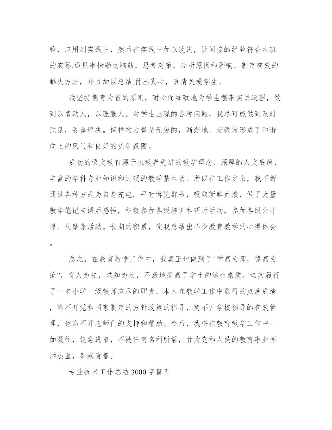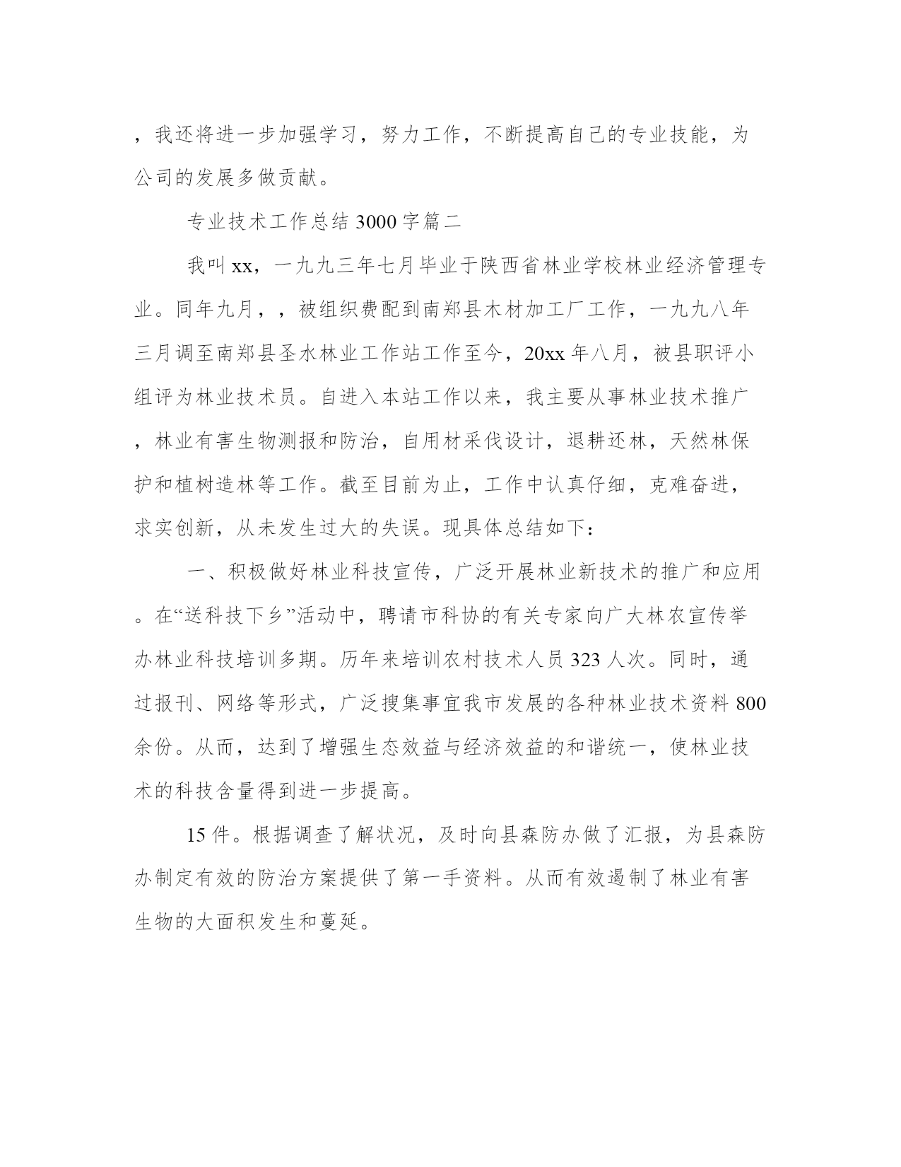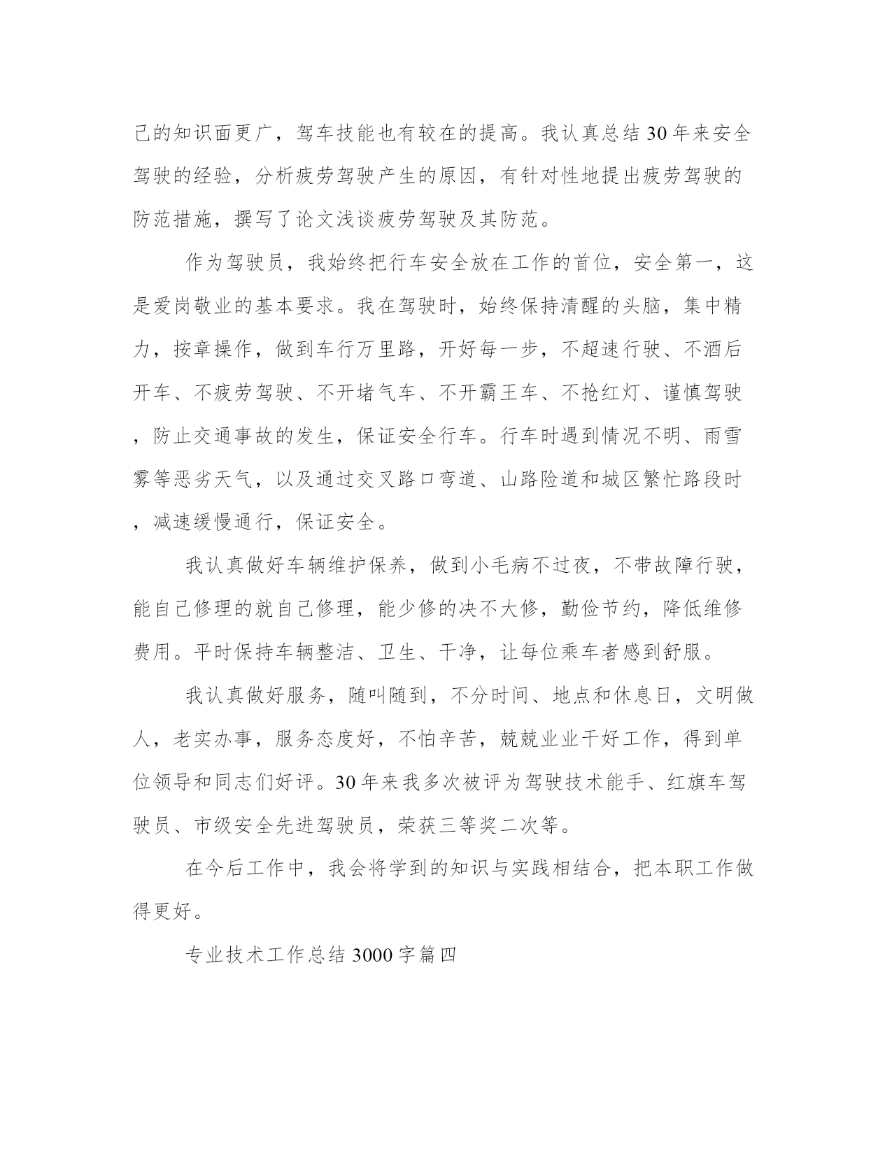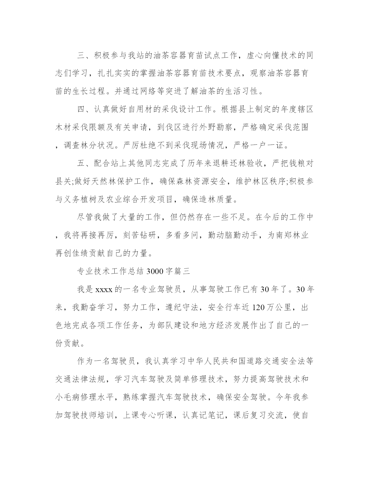 最新专业技术工作总结3000字(通用10篇)通过总结,我们可以发现问题并找到解决之道。在写总结时应尽量客观、准确、简洁地表达观点和结论,避免主观色彩过重。这些总结范文或许会给我们启发,让我们对总结有更深入的理解和认识。专业技术工作总结3000字篇一自参加工作以来,在公司领导及同事们的关心指导下,通过自身的不断努力,我个人无论是在敬业精神、思想境界,还是在业务素质、工作能力上都得到一定提高,并取得了一定的工作成绩,现将本人的学习、工作情况总结如下:三是不断改进学习方法,讲求学习效果,“在工作中学习,在学习中工作”,坚持学以致用,注重融会贯通,理论联系实际,用新的知识、新的思维和新的启示,巩固和丰富综合知识,使自身综合能力不断得到提高。二、严格履行岗位职责,扎实做好本职工作一是养老、失业、医疗保险统计管理工作本人参加工作后从事时间较长的专业技术工作,主要是养老、失业、医疗保险统计管理工作。在部门领导的指导下,我认真负责地做好职工的养老保险信息采集、登记工作,填写核算xxxx公司员工养老保险缴费基数表,做好各类养老保险数据统计工作,保证信息的准确性、完整性和及时性;在办理、核算养老保险金的支付过程中,我灵活运用自己在校学习掌握的社会保障学及有关计算机数据信息库知识,将员工养老保险缴费基数的核算修改为一项简便、合理的函数公式,使单位职工养老保险管理工作由单一、老化的手工操作真正转变成了计算机科学管理,大大缩小了工作量,缴费基数核算的准确性也得到了提高,受到公司领导和同事一致好评。在统计失业、医疗保险统计数据的过程中,我准确理解各类统计指标的解释内容,保证各种保险统计报表基础原始数据正确,多年来,我所在人事部门的保险统计信息资料,填报及时可靠,数据准确无误,工作成绩得到有关业务主管部门的肯定。在人力资源部,我除了主要负责上述类别的保险统计工作以外,还主要具体负责全公司职工工资管理工作。认真做好每月的劳动工资统计审核工作,保证各项原始数据准确无误,并根据上级各部门的要求,及时、准确地上报给各业务部门。建立健全了公司职工工资管理各类各项记录台帐,按规定办理日常的职工转正、职务变动、岗位变动及工龄变化等工作,多年来,由我经手上报的各级各类报表无差错、无遗漏,时间上从不滞后,多次在有关业务检查、审核中受到上级业务部门的高度好评。以上就是我入职公司以来的主要工作,总的来说,本人作为一名人力资源部的业务经办人员,多年的工作实践也为自己积累了一些有益的工作经验,有较为熟悉过硬的专业技术能力,但在今后的工作中,我还将进一步加强学习,努力工作,不断提高自己的专业技能,为公司的发展多做贡献。专业技术工作总结3000字篇二我叫xx,一九九三年七月毕业于陕西省林业学校林业经济管理专业。同年九月,,被组织费配到南郑县木材加工厂工作,一九九八年三月调至南郑县圣水林业工作站工作至今,20xx年八月,被县职评小组评为林业技术员。自进入本站工作以来,我主要从事林业技术推广,林业有害生物测报和防治,自用材采伐设计,退耕还林,天然林保护和植树造林等工作。截至目前为止,工作中认真仔细,克难奋进,求实创新,从未发生过大的失误。现具体总结如下:一、积极做好林业科技宣传,广泛开展林业新技术的推广和应用。在“送科技下乡”活动中,聘请市科协的有关专家向广大林农宣传举办林业科技培训多期。历年来培训农村技术人员323人次。同时,通过报刊、网络等形式,广泛搜集事宜我市发展的各种林业技术资料800余份。从而,达到了增强生态效益与经济效益的和谐统一,使林业技术的科技含量得到进一步提高。15件。根据调查了解状况,及时向县森防办做了汇报,为县森防办制定有效的防治方案提供了第一手资料。从而有效遏制了林业有害生物的大面积发生和蔓延。三、积极参与我站的油茶容器育苗试点工作,虚心向懂技术的同志们学习,扎扎实实的掌握油茶容器育苗技术要点,观察油茶容器育苗的生长过程。并通过网络等突进了解油茶的生活习性。四、认真做好自用材的采伐设计工作。根据县上制定的年度辖区木材采伐限额及有关申请,到伐区进行外野勘察,严格确定采伐范围,调查林分状况。严厉杜绝不到采伐现场情况,严格一户一证。五、配合站上其他同志完成了历年来退耕还林验收,严把钱粮对县关;做好天然林保护工作,确保森林资源安全,维护林区秩序;积极参与义务植树及农业综合开发项目,确保造林质量。尽管我做了大量的工作,但仍然存在一些不足。在今后的工作中,我将再接再厉,刻苦钻研,多看多问,勤动脑勤动手,为南郑林业再创佳绩贡献自己的力量。专业技术工作总结3000字篇三我是xxxx的一名专业驾驶员,从事驾驶工作已有30年了。30年来,我勤奋学习,努力工作,遵纪守法,安全行车近120万公里,出色地完成各项工作任务,为部队建设和地方经济发展作出了自