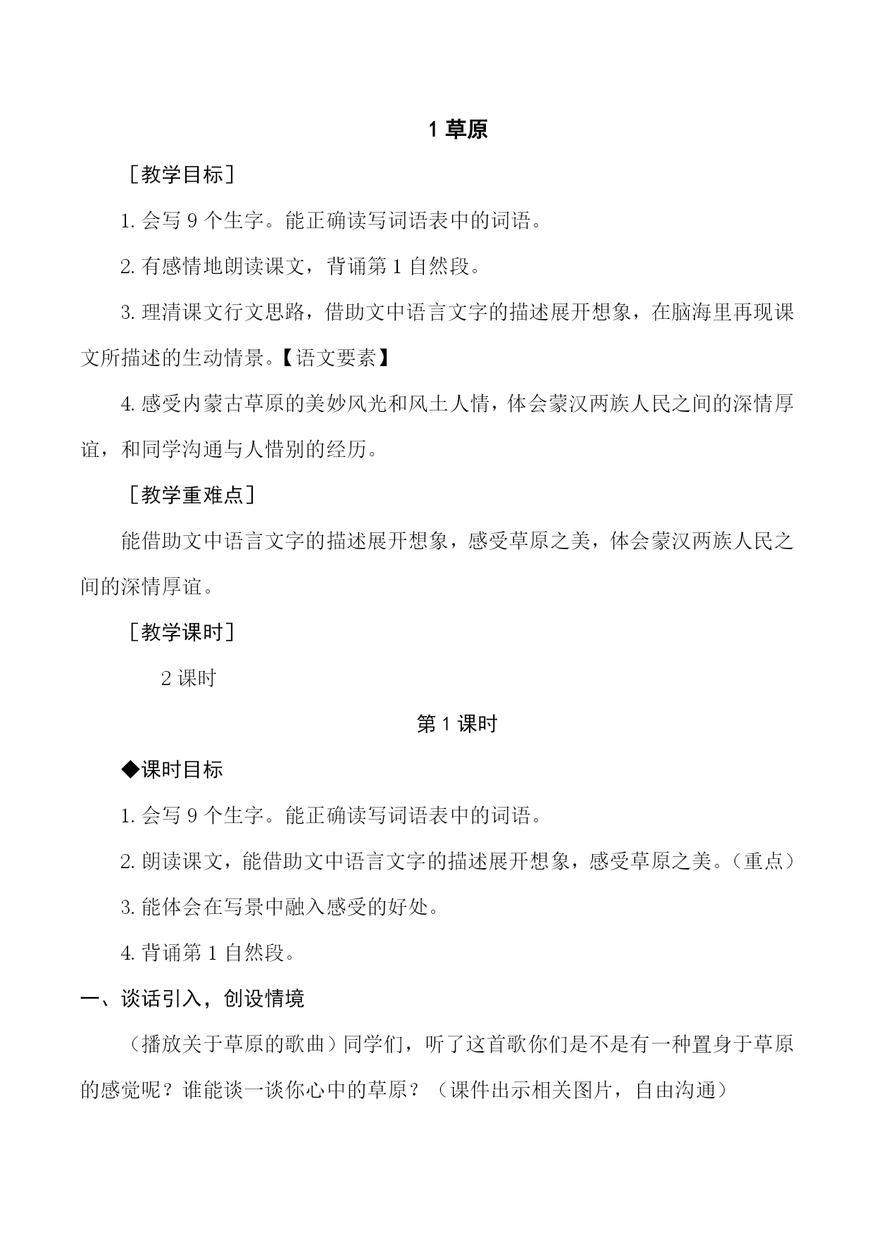 (教案) 1 草原-最新经典通用教辅资料.doc