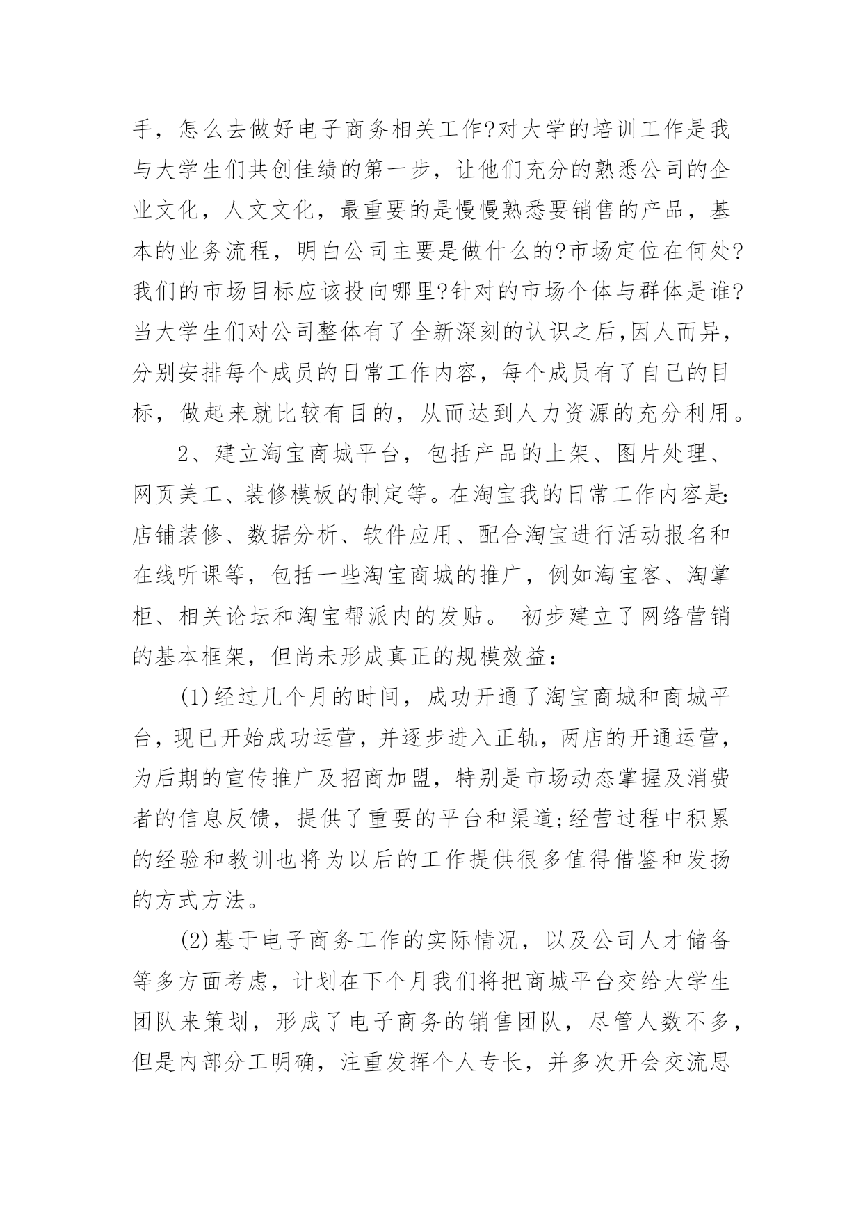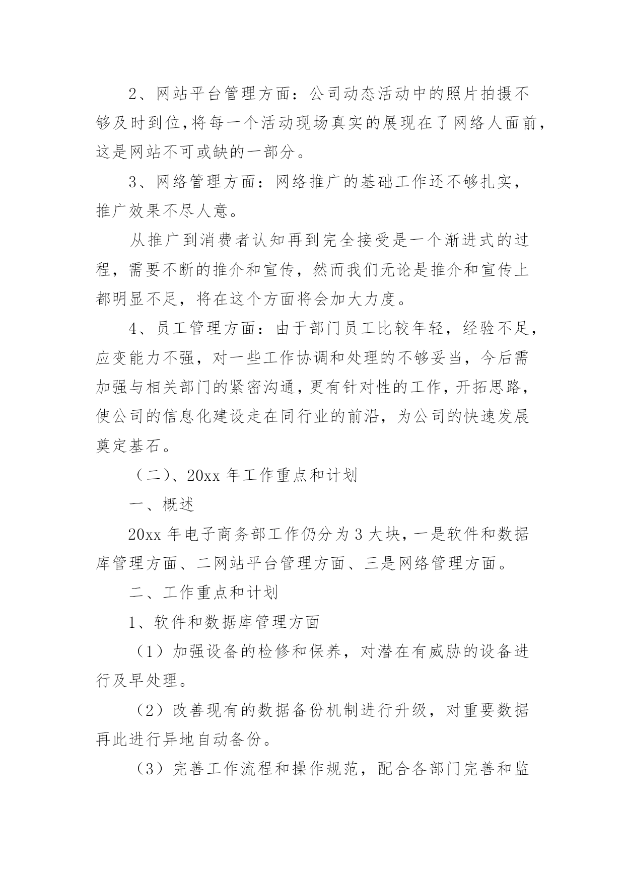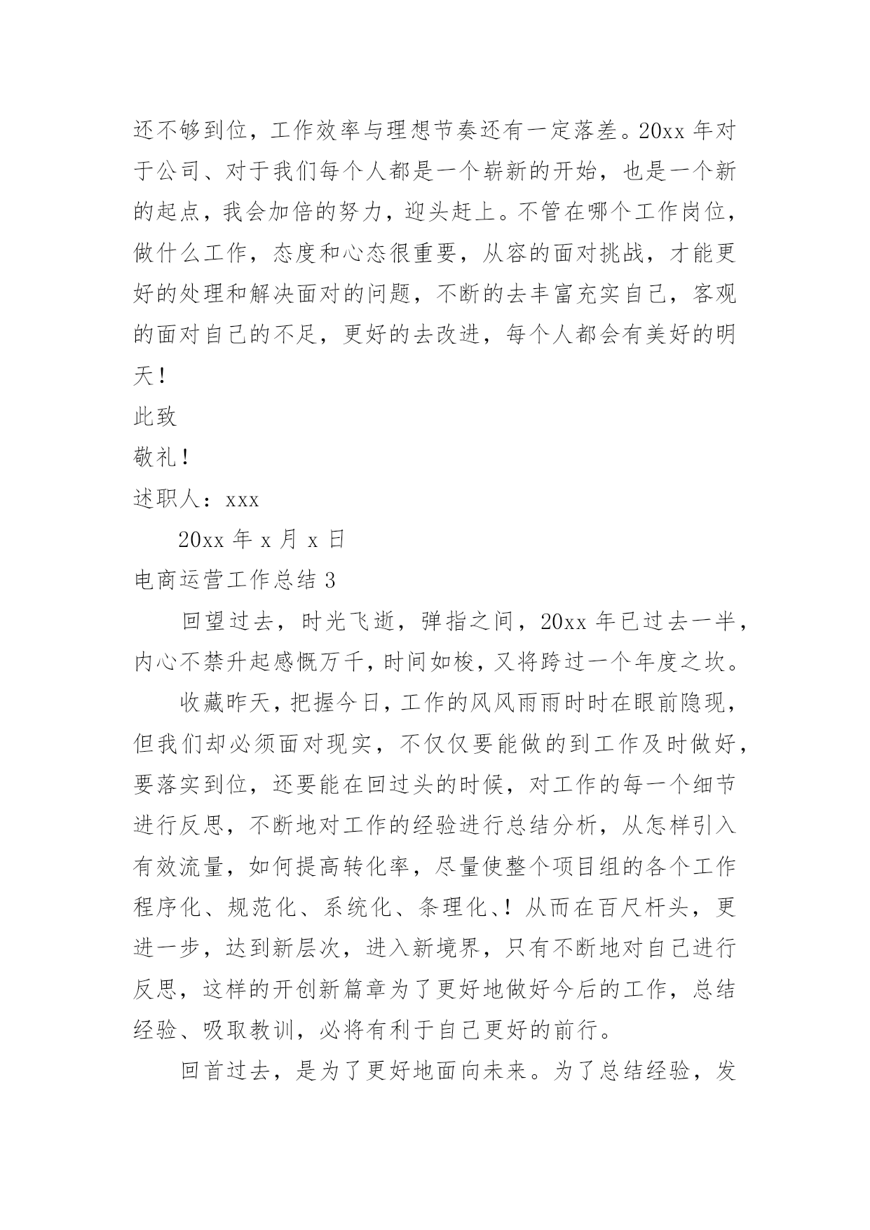 电商运营工作总结电商运营工作总结15篇总结是事后对某一时期、某一项目或某些工作进行回顾和分析,从而做出带有规律性的结论,它可以使我们更有效率,让我们一起来学习写总结吧。那么你知道总结如何写吗?以下是小编精心整理的电商运营工作总结,希望能够帮助到大家。电商运营工作总结1时光荏苒,20xx年即将过去,回顾这一年的工作历程,电子商务部在公司领导的支持和各个部门的配合下,确保了公司网络的正常运行,配合各个部门顺利完成公司的各项工作任务,推进了“搜车网”的开发、制作、测试及全面上线。新的一年意味着新的起点新的机遇新的挑战,希望同大家一道,在20xx年的工作基础上,继续群策群力,为明杰人的明天,携手共进!总结如下:(一)、20xx年工作重点回顾和存在的问题一、工作重点回顾1、软件和数据库管理方面(1)合理安排软件使用流程并制定相关规范,及时响应了各部门的电脑软件的维护,尽可能的降低使用故障,在其出现故障的时候,并做到了能即时解决就即时解决,不能当场解决的也在最短时间内解决。(2)定期对数据库进行维护、备份,对数据库的系统问题、服务器故障等问题根据实际问题及时加以解决。2、网站平台管理方面全面加强公司4个门户网站(明杰集团官网、赢家环保再生资源公共服务平台、OK14资讯网、赢家汽拆网站)的建设、更新及中国再生资源客户管理系统的管理工作,是电子商务部的工作重点,根据公司的实际情况不定期发布各类信息并加以推广,为明杰每一个进步打下了坚实的基础。在以后我们电子商务部会再接再厉,使公司各网站的内容的更丰富更精彩。3、网络管理方面网络市场的竞争日趋激烈,为了顺应形势,我们组织了多次网站推广,包括网站和公司收车业务的宣传,例如百度知道问答模式的.推广使得赢家环保、赢家汽车拆解等曝光率大增并使网站的流量有了很大提高,同时对消除公司的负面影响起到关键性作用。4、员工管理方面基于电子商务工作的实际情况,以及公司多方面考虑,尽管人数很少,但是内部分工明确,注重发挥个人专长,相互交流思想和经验,今后团队成员的数量、结构、分工、素质等将不断加以提高和完善。二、工作中存在的问题1、软件和数据库管理方面:部分设备老化,硬件问题突出,维修周期长,费用高。2、网站平台管理方面:公司动态活动中的照片拍摄不够及时到位,将每一个活动现场真实的展现在了网络人面前,这是网站不可或缺的一部分。3、网络管理方面:网络推广的基础工作还不够扎实,推广效果不尽人意。从推广到消费者认知再到完全接受是一个渐进式的过程,需要不断的推介和宣传,然而我们无论是推介和宣传上都明显不足,将在这个方面将会加大力度。4、员工管理方面:由于部门员工比较年轻,经验不足,应变能力不强,对一些工作协调和处理的不够妥当,今后需加强与相关部门的紧密沟通,更有针对性的工作,开拓思路,使公司的信息化建设走在同行业的前沿,为公司的快速发展奠定基石。(二)、20xx年工作重点和计划一、概述20xx年电子商务部工作仍分为3大块,一是软件和数据库管理方面、二网站平台管理方面、三是网络管理方面。二、工作重点和计划1、软件和数据库管理方面(1)加强设备的检修和保养,对潜在有威胁的设备进行及早处理。(2)改善现有的数据备份机制进行升级,对重要数据再此进行异地自动备份。(3)完善工作流程和操作规范,配合各部门完善和监督操作的措施,从数据管理,病毒防范管理,网络系统操作流程开始规范。(4)在继续完善以上工作的同时,加强学习,提高部门综合素质水平,学习并引入各种的技术,提高服务质量和工作效率。2、网站平台管理方面网站的维护建设开发,主要包括网站的进一步完善和优化,完成对网站诊断、优化,加强网站用户体验、方便运营推广,自己也会加强与各部门之间的联系与沟通,以保证各部门资源及可发布信息能达到最优整合,使网站形象与公司形象达到统一。针对我公司的4个网站,20xx年日常维护更新工作主要包括:(1)监控网站整体运行正常,一旦出现异常,立即解决,解决不了的第一时间联系运营商处理,确保公司网站在互联网上的健康的运行。(2)主要是每个网站的公司动态更新和新闻信息的更新,其他栏目偶尔的个别调整。(3)在线交流和留言板的管理,保证每天查看留言板,遇到客户留言,及时进行处理,确保每天在线,及时解决咨询者的问题。3、网络管理方面我们将在公司现有网络的基础上,合理设计、配置资源,不断完善网站建设,为公司的再度拓展提供一个良好的安全网络平台。(1)对公司网站进行全面分析了解,全面加强网站建设的基础工作,使其更加适应市场行情和消费者需求,根据市场需求,精心设计,加强推广。(2)全方位的进行网络推广。充分利用百度功能,在百度百科、知道、空间、文库、贴吧和经验专栏上策略性的插入企业和产品信息。通过搜索引擎、广告宣传等多种途径加强对公司及网站的推广,多箭齐发,树立明杰集团形象