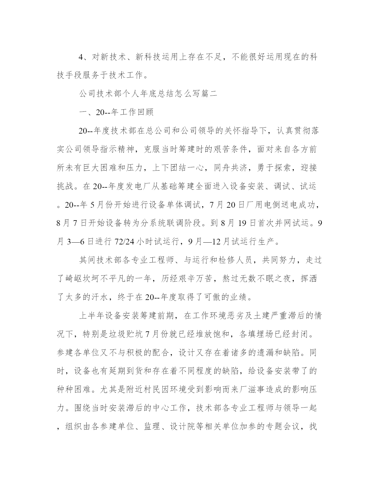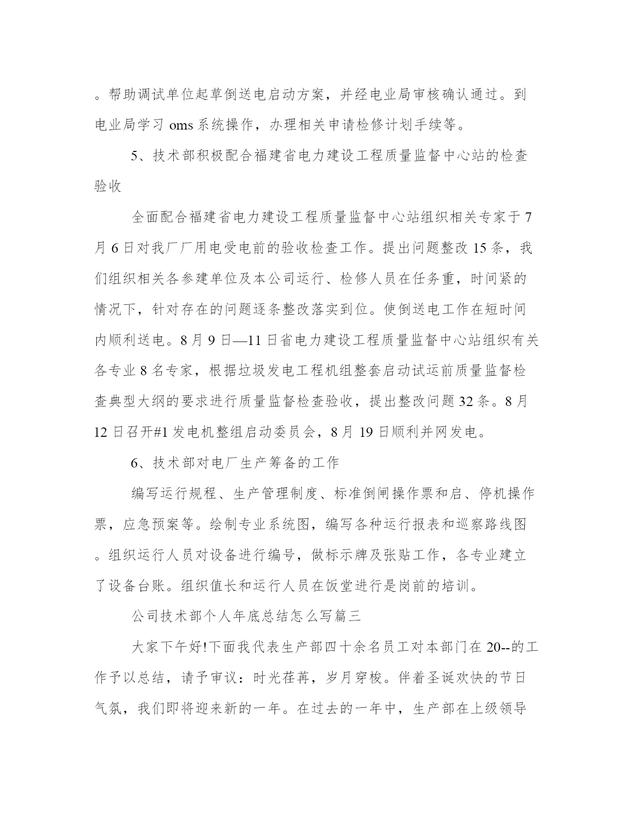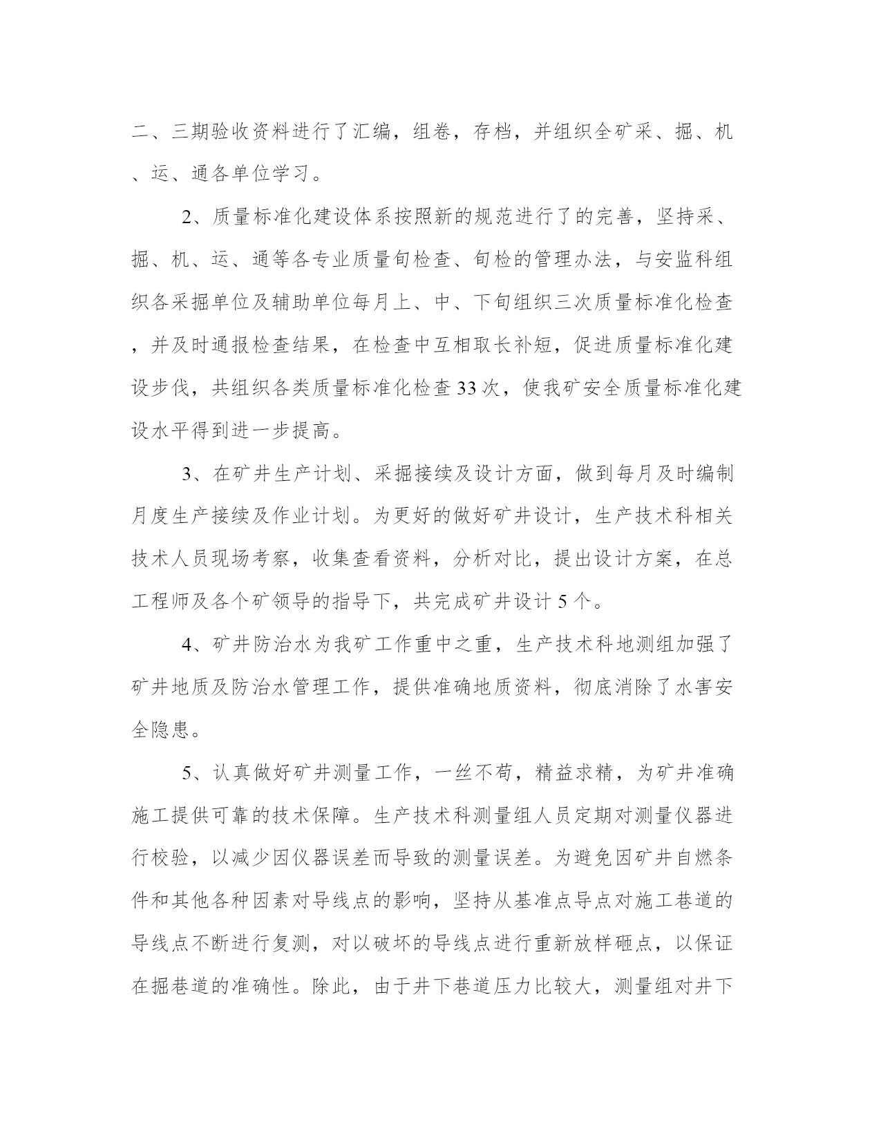 最新公司技术部个人年底总结怎么写(十三篇)总结不仅仅是总结成绩,更重要的是为了分析经验,发现做好工作的规律,也可以找出工作失误的教训。这些经验教训是非常宝贵的,对工作有很好的借鉴与指导作用,在今后工作中可以改进提高,趋利避害,避免失误。那么我们该如何写一篇较为完美的总结呢?这里给大家分享一些最新的总结书范文,方便大家学习。公司技术部个人年底总结怎么写篇一一、一年以来主要特点和具有创新性的内容1、通过生产技术科的努力工作,技术管理工作逐渐走向正规化、制度化。首先完善基础资料,从矿井水文地质、矿井测量、矿井图纸、巷道设计抓起,积累了自己的资料管理经验并建立资料管理制度,从技术上确保矿井的安全生产;其次规范并修编了我矿的各种施工作业规程、技术措施及各种图纸资料,严格执行作业规程的修编、会审,要求“一工程一措施”,增补了技术资料管理漏洞,完善并规范了月度规程及措施会审制度,健全了单项工程开、竣工验收制度,单项工程施工技术交底制度、顶板分析会制度、隐患排查分析会及周、月度生产技术例会制度。建立施工规程及措施管理台账,并将各类规程及措施归档。在开展好各项技术工作的同时,加强与基层单位的工作联系和沟通,及时提供基层单位所需的各种技术资料,对矿井建设一、二、三期验收资料进行了汇编,组卷,存档,并组织全矿采、掘、机、运、通各单位学习。2、质量标准化建设体系按照新的规范进行了的完善,坚持采、掘、机、运、通等各专业质量旬检查、旬检的管理办法,与安监科组织各采掘单位及辅助单位每月上、中、下旬组织三次质量标准化检查,并及时通报检查结果,在检查中互相取长补短,促进质量标准化建设步伐,共组织各类质量标准化检查33次,使我矿安全质量标准化建设水平得到进一步提高。3、在矿井生产计划、采掘接续及设计方面,做到每月及时编制月度生产接续及作业计划。为更好的做好矿井设计,生产技术科相关技术人员现场考察,收集查看资料,分析对比,提出设计方案,在总工程师及各个矿领导的指导下,共完成矿井设计5个。4、矿井防治水为我矿工作重中之重,生产技术科地测组加强了矿井地质及防治水管理工作,提供准确地质资料,彻底消除了水害安全隐患。5、认真做好矿井测量工作,一丝不苟,精益求精,为矿井准确施工提供可靠的技术保障。生产技术科测量组人员定期对测量仪器进行校验,以减少因仪器误差而导致的测量误差。为避免因矿井自燃条件和其他各种因素对导线点的影响,坚持从基准点导点对施工巷道的导线点不断进行复测,对以破坏的导线点进行重新放样砸点,以保证在掘巷道的准确性。除此,由于井下巷道压力比较大,测量组对井下巷道布臵了顶板沉降和巷道收敛观测点,并根据规范对各处点进行测量观察并完善台账,为我矿巷道的支护提供指导性依据。此外,测量组还对地面建筑物布臵了沉降观测点,按照规程规定对建筑物进行测量并建立台账。特别是今年在施工强排水硐室时,测量起到了至关重要的作用,科室坚持每天安排技术人员配合工区对强排硐室基准线进行校验,并给出各个关键部位的基准线。6、煤炭生产管理作为管理全矿煤炭生产的科室,在日常的生产管理过程中,生产技术科始终坚持珍惜资源,减少浪费,确保工作面回采率达到要求,面对严峻的安全形势以及井下复杂的生产条件,全科人员,特别是生产调度室人员,科学调度,合理安排,对工作面的每一个生产细节进行跟踪,及时调度及督促现场生产环节,不但实现了稳产,而且最大限度的回收了煤炭资源。二、工作中存在的差距和问题,以及针对性的解决方法:1、生产技术科人员流动性比较大。2、技术工作超前性不够。基础技术工作比较薄弱。体现在日常技术工作不规范;工作面设计内容程序不够规范;作业规程的针对性、可操作性不强;基础技术资料收集、整理不全面、不及时,图纸管理不规范;超前指导性不够。3、技术管理制度有待进行一步健全和完善。4、对新技术、新科技运用上存在不足,不能很好运用现在的科技手段服务于技术工作。公司技术部个人年底总结怎么写篇二一、20--年工作回顾20--年度技术部在总公司和公司领导的关怀指导下,认真贯彻落实公司领导指示精神,克服当时筹建时的艰苦条件,面对来自各方前所未有巨大困难和压力,上下团结一心,同舟共济,勇于探索,迎接挑战。在20--年度发电厂从基础筹建全面进入设备安装、调试、试运。20--年5月份开始进行设备单体调试,7月20日厂用电倒送电成功,8月7日开始设备转为分系统联调阶段。到8月19日首次并网试运。9月3—6日进行72/24小时试运行,9月—12月试运行生产。其间技术部各专业工程师、与运行和检修人员,共同努力,走过了崎岖坎坷不平凡的一年,历经艰辛万苦,熬过无数不眠之夜,挥洒了太多的汗水,终于在20--年度取得了可傲的业绩。上半年设备安装筹建前期,在工作环境恶劣及土建严重滞后的情况下,特别是垃圾