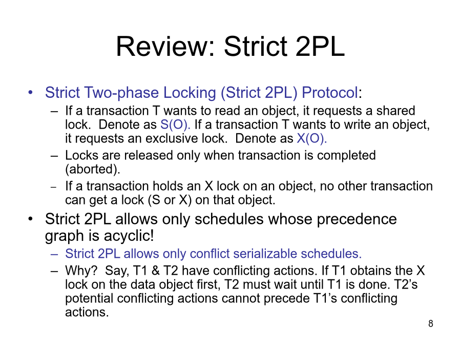 DatabaseSystems(資料庫系統)AnnouncementsCool&PracticalUbicompProjectUbiHealth:afewexamplesConcurrencyControlConflictSerializableSchedulesExamplePrecedenceGraphReview:Strict2PLTwo-PhaseLocking(2PL)Non-recoverableScheduleViewSerializabilityLockManagementLockMana