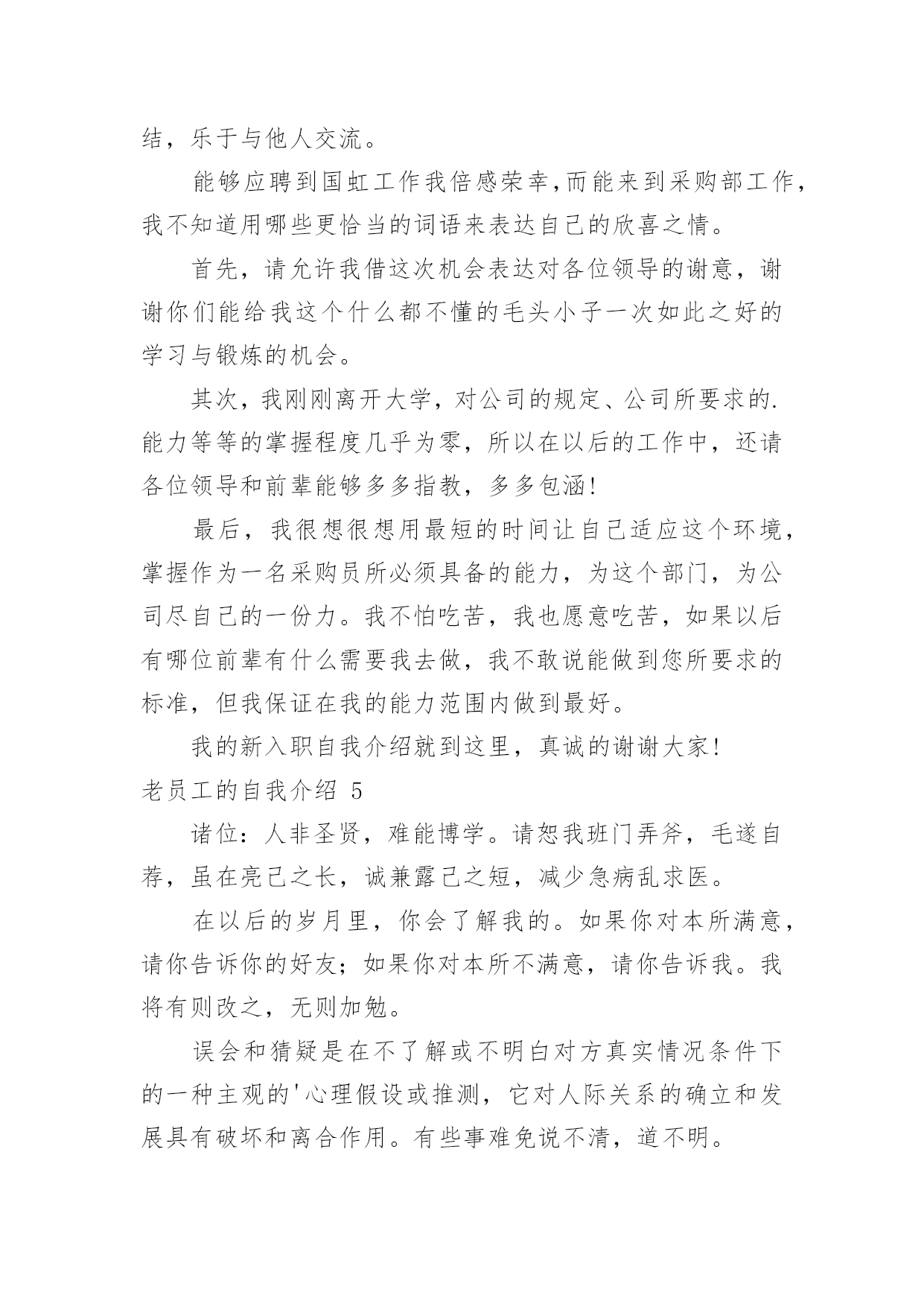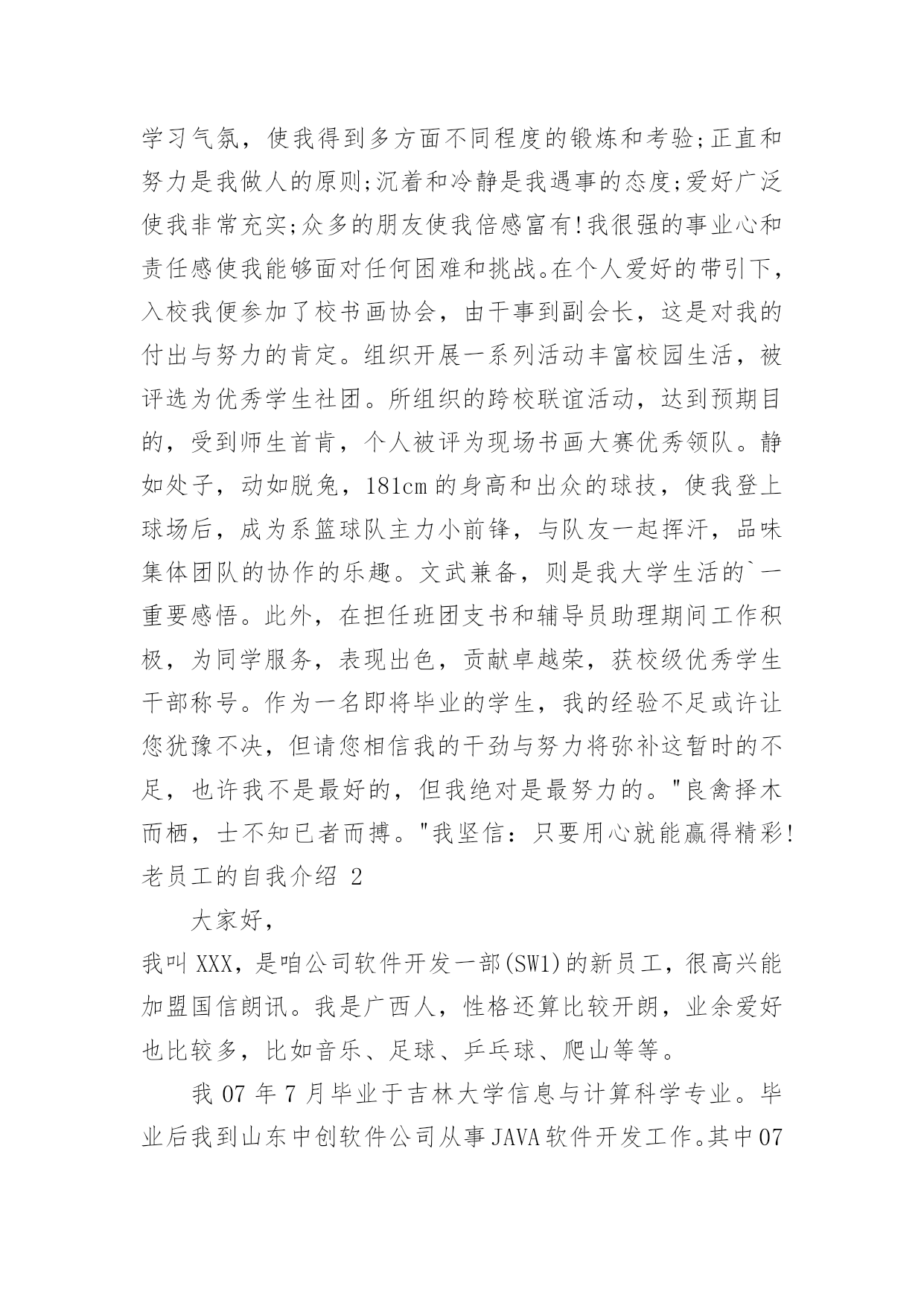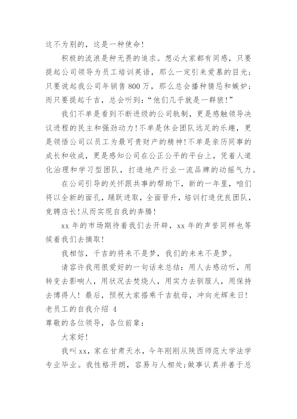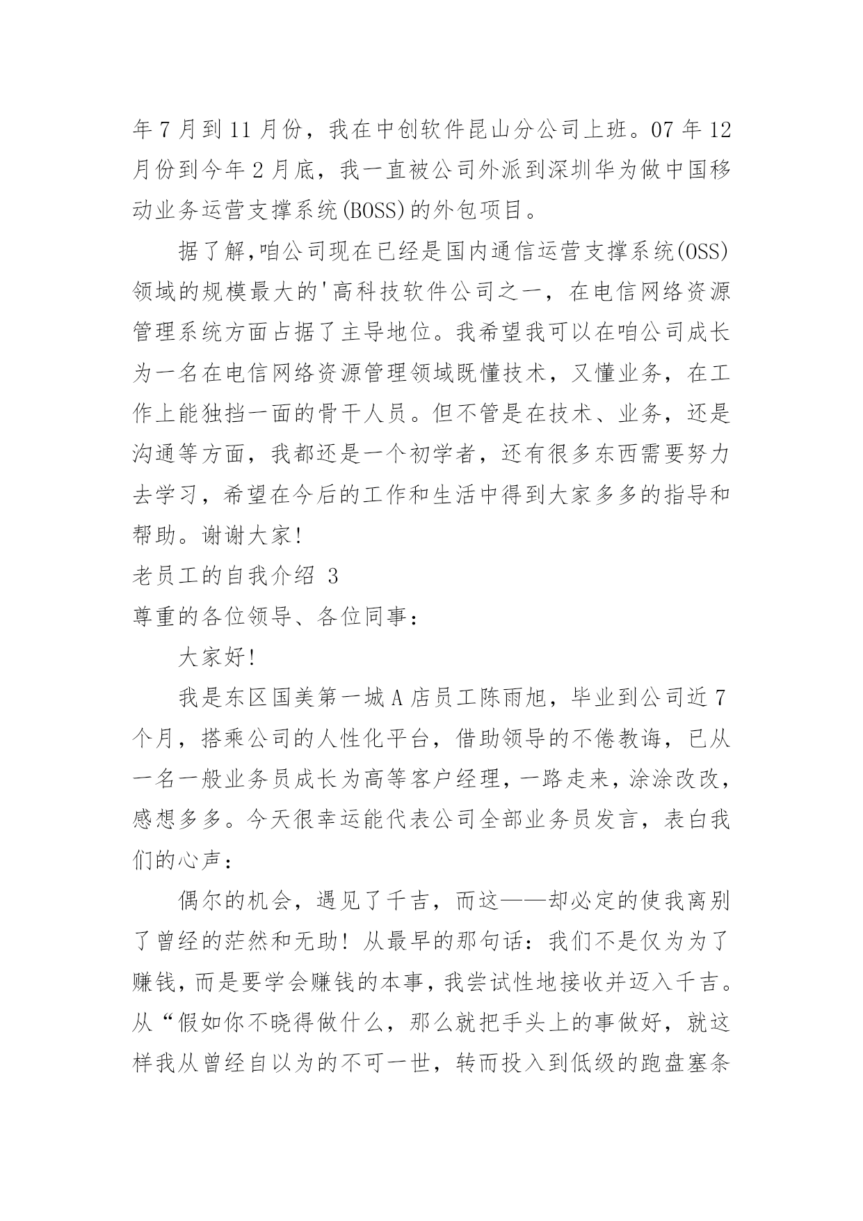 老员工的自我介绍老员工的自我介绍来到一个新的地方后,常常需要我们进行自我介绍,自我介绍是认识自我的手段。你所见过的自我介绍是什么样的呢?下面是小编整理的老员工的自我介绍,希望对大家有所帮助。老员工的自我介绍1我叫xxx,是XXXX学院XXXX专业XX届即将毕业的学生。在校的X年里,我不断充实自己,全面发展,以锐意进取和踏实诚信的作风及表现赢得了老师和同学的信任和赞赏。我有较强的策划、组织、管理能力,以及人际交往能力。大学四年是我思想、知识结构及心理、生长成熟的X年。在大学期间,我自己认真学习专业技能,掌握了较强的专业理论实践知识技能,并把理论知识运用到实践中去,期末总评成绩名列年级前茅,获得优秀学生奖学金二等、三等各两次,荣获校级三好学生称号。我所学专业是计算机,在熟练掌握各种基本软件的使用及硬件维护过程中,有独特的经验总结。顺利通过国家社会和劳动保障部高新技术办公软件应用模块资格高级操作员考试。同时,我发扬团队精神,帮助其他同学,把自己好的学习经验无私的介绍给其他同学,共同进步.大学里,丰富多彩的社会生活和井然有序而又紧张的学习气氛,使我得到多方面不同程度的锻炼和考验;正直和努力是我做人的原则;沉着和冷静是我遇事的态度;爱好广泛使我非常充实;众多的朋友使我倍感富有!我很强的事业心和责任感使我能够面对任何困难和挑战。在个人爱好的带引下,入校我便参加了校书画协会,由干事到副会长,这是对我的付出与努力的肯定。组织开展一系列活动丰富校园生活,被评选为优秀学生社团。所组织的跨校联谊活动,达到预期目的,受到师生首肯,个人被评为现场书画大赛优秀领队。静如处子,动如脱兔,181cm的身高和出众的球技,使我登上球场后,成为系篮球队主力小前锋,与队友一起挥汗,品味集体团队的协作的乐趣。文武兼备,则是我大学生活的`一重要感悟。此外,在担任班团支书和辅导员助理期间工作积极,为同学服务,表现出色,贡献卓越荣,获校级优秀学生干部称号。作为一名即将毕业的学生,我的经验不足或许让您犹豫不决,但请您相信我的干劲与努力将弥补这暂时的不足,也许我不是最好的,但我绝对是最努力的。"良禽择木而栖,士不知已者而搏。"我坚信:只要用心就能赢得精彩!老员工的自我介绍2大家好,我叫XXX,是咱公司软件开发一部(SW1)的新员工,很高兴能加盟国信朗讯。我是广西人,性格还算比较开朗,业余爱好也比较多,比如音乐、足球、乒乓球、爬山等等。我07年7月毕业于吉林大学信息与计算科学专业。毕业后我到山东中创软件公司从事JAVA软件开发工作。其中07年7月到11月份,我在中创软件昆山分公司上班。07年12月份到今年2月底,我一直被公司外派到深圳华为做中国移动业务运营支撑系统(BOSS)的外包项目。据了解,咱公司现在已经是国内通信运营支撑系统(OSS)领域的规模最大的'高科技软件公司之一,在电信网络资源管理系统方面占据了主导地位。我希望我可以在咱公司成长为一名在电信网络资源管理领域既懂技术,又懂业务,在工作上能独挡一面的骨干人员。但不管是在技术、业务,还是沟通等方面,我都还是一个初学者,还有很多东西需要努力去学习,希望在今后的工作和生活中得到大家多多的指导和帮助。谢谢大家!老员工的自我介绍3尊重的各位领导、各位同事:大家好!我是东区国美第一城A店员工陈雨旭,毕业到公司近7个月,搭乘公司的人性化平台,借助领导的不倦教诲,已从一名一般业务员成长为高等客户经理,一路走来,涂涂改改,感想多多。今天很幸运能代表公司全部业务员发言,表白我们的心声:偶尔的机会,遇见了千吉,而这——却必定的使我离别了曾经的茫然和无助!从最早的那句话:我们不是仅为为了赚钱,而是要学会赚钱的本事,我尝试性地接收并迈入千吉。从“假如你不晓得做什么,那么就把手头上的事做好,就这样我从曾经自以为的不可一世,转而投入到低级的跑盘塞条等业务中。从住群体宿舍的温馨无忧到员工间的友爱互助,从领导培训至深夜的恩惠到店长送我到病院看病的关心,使来自他乡的我们觉得家的暖和。我们——不再须要更多的理由。仅此这些,使我们不理由不贪心地学习!不充斥豪情的工作!狼道精神,更使我们意识到:既要能孤身奋战,也要擅长群体进攻!当我们像狼一样傲视所有时,我们就必定能成为职场中真正的强人。在精力上,有优秀文化的陶冶,有店长每月每周甚至天天的目的鼓励;在实际中,学会了如何有组织有纪律的应用策略;如何有效的逼定;如何疾速掌握客户收取诚意金;也深知胜利前应积蓄力气、不急于求成、等待全面暴发的谋略!生涯老是这样,一份热忱总会换来一份机遇,而每一份机遇都是你走向成熟的一个阶梯!蓦然回想,有了专一做房产的我们、有了十一月份单店34万的佳绩、有了局部同事月薪3万多的喜悦、更有了无可比较的自负和前所未有的凝集力!我信任,只有我们居心去做,即便谈不上飞黄腾达,也确定不至于平淡!