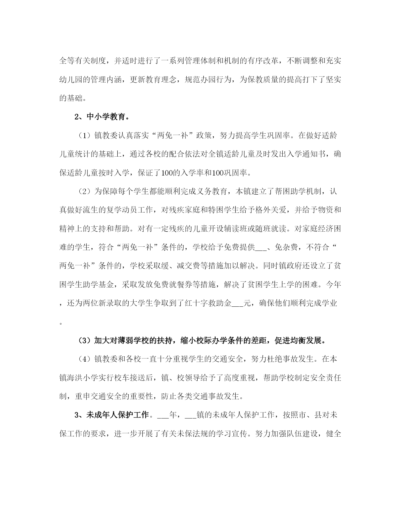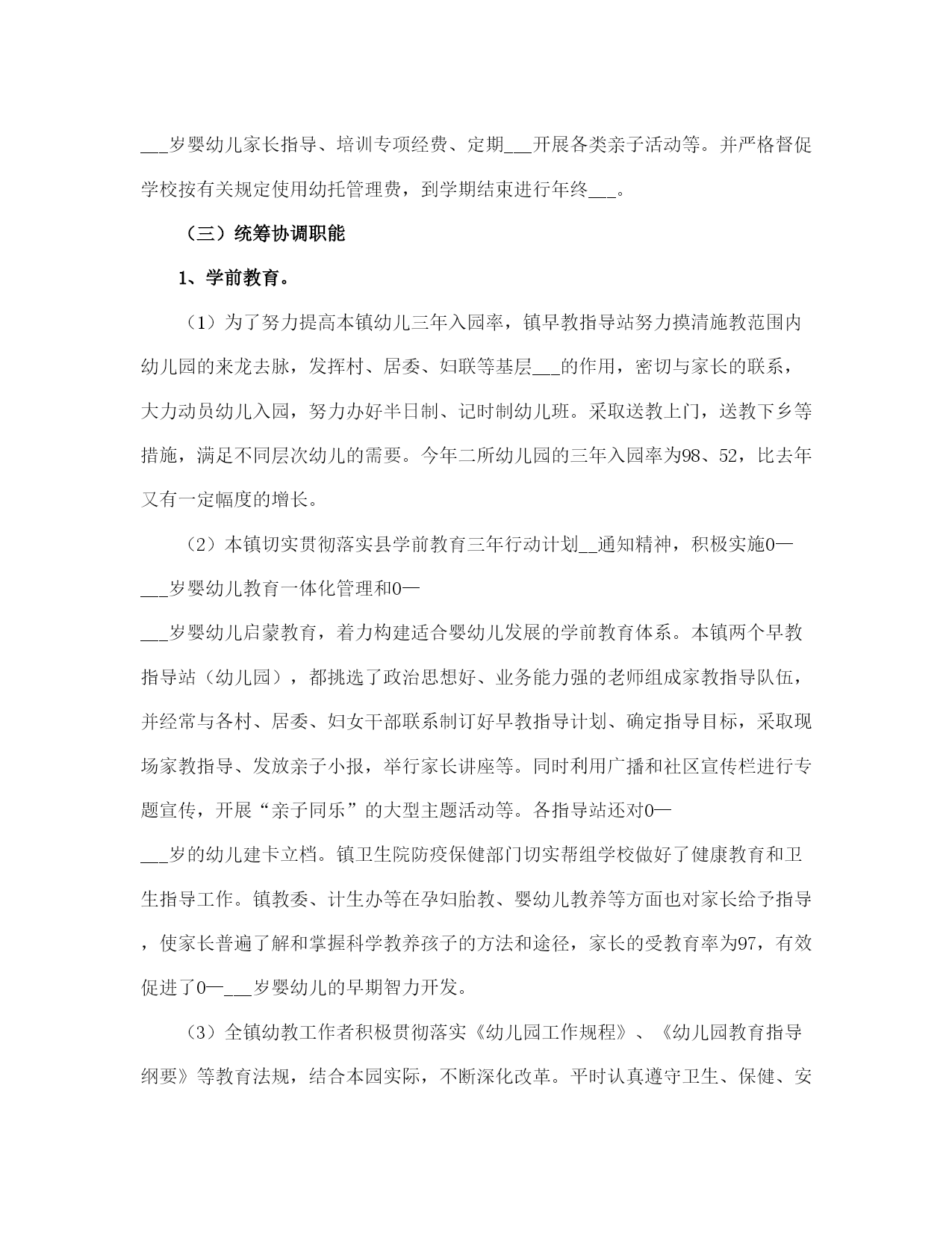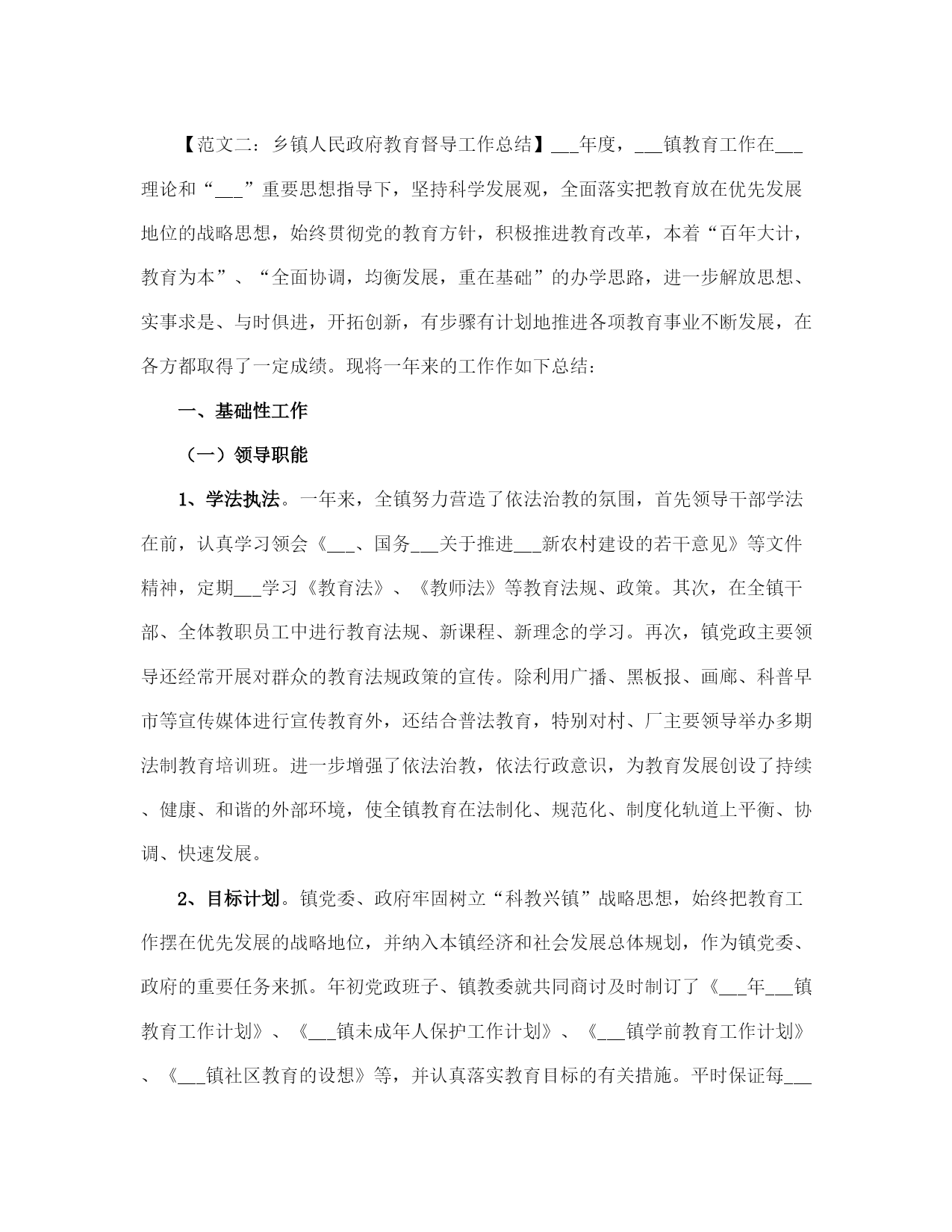督导工作总结的(完整版)文档资料可直接使用,可编辑,欢迎下载督导工作总结的范文【范文一:督导工作总结】本年度是学院推进骨干高职院校建设,全面实施争先创优活动关键的一年,分院督导组在督导处的领导下,全体人员认真履行职责,创造性地开展工作,坚持督与导相结合,以导为主、以督为辅的工作方针,本着深化教学改革,提升教学质量的基本思想,坚持在常规管理中抓规范,在规范管理中求创新,对稳定教学秩序,提高教学质量起到了积极的作用,现总结如下:一、加强督导队伍建设,加大课堂教学的监控力度师范分院督导组本学期进行了改组,基本形成了数量充足,质量较高,覆盖各专业的督导队伍。人数共___人,全部由具有___年以上教学经验且在专业中是教学骨干教师组成,这些人员教学水平高,工作责任心强,能够认真履行督导规程职责。为了便于督导和管理,结合督导组成员本人的业务专长,根据相关性原则,将教学督导人员根据教研室进行了分配,每位督导员主要负责___个教研室的督导工作。本学期督导人员在各自的范围内共听课113学时,被听课教师人数为___人次,按照听课人不重复计算,被听课人数为___人。进一步加强对二级学院督导小组的建设与工作指导,在评价性听课方面取得了一定的成效。从教与学两方面极大提高课堂教学的监控力度。二、加强教学检查,规范教学秩序师范分院督导组的工作分常规检查和专项检查,专项检查主要以期初、期中和期末教学检查为主,在扩大课堂、实践教学的督导面的同时,强化了课堂教学的针对性和引导性。1、在狠抓课堂教学质量督查的基础上,特别重视了青年教师、学生有所反映教师的授课情况,重视了技能课的教学检查。2、加强了对一些薄弱环节的___。特别是加强了音乐、美术教研室教师的督导工作,一方面加强教学的规范性,另一方面加强了教学文件的管理,加大了对实践课堂的督查力度。对听课中发现的问题能及时地在课后同教师进行沟通和交流,并及时在学院督导会议或在分院教工会上进行信息反馈。3、加强了青年教师的培养,从整体上促进教风与学风建设。督导组在听评课过程中,对青年教师课堂教学的引导比较突出,既了解他们的情况,反映他们的意见,又充分肯定他们的成绩,客观公正地指出他们的不足。4、通过督导,教师的授课更加规范。(范本)从整体上看,老教师课堂授课认真,教学过程严谨,重难点突出,注重学生学习积极性的调动,课堂效果好;年轻教师有很强的创新性,课堂气氛活跃,讲解条理也比较清楚。如青年教师汪铁楠___教学的能力很强,教学过程严谨,讲课时重难点突出,讲授能够深入浅出。姜晓燕老师根据学生层次调节自己的教学进度和教学方法,重视艺术的相关性,教学语言规范严谨,态度认真,项目齐全。王宏宇是一个很有潜质的年轻教师,讲课活泼自然,语言流利,思维敏捷,重视学生的体验与参与,重难点突出,重视学生数学思维及能力的培养。其他如季瑞红、陈悦、夏微等讲课各有各的特点,有的亲切,有的有讲有练,有的全面严谨。在教学环节的安排,教学内容的设计,能力培养等方面都有自己的特点,都比较注重学生主体性的发挥,课堂气氛比较活跃。三、存在的问题及今后的打算(一)存在的问题1、个别教师在授课内容上重点不突出,难点讲的不透彻,交代不清。特别是从事理论课教学教师在授课时缺乏理论联系实际,举不出生动贴切的实例,教学案例不够丰富。2、教学方法的运用有待提高更新。不少教师还沿用过去的教学方法,课讲的不活,课堂上照本宣科。没有积极采用启发式、讨论式等新的教学方法,缺乏对教学新理念、新方法的研究。3、教学环节不够完整,结构层次不够清晰。个别教师上课无提问、或在课堂教学过程中提问时间较长,影响本节课的教学进度。还存在新课授完无小结、无重点等现象。在知识的传授过程中,教学层次出现混乱的情况。4、课堂___教学能力不强。课堂上大部分老师能够竭尽全力___教学,维持课堂纪律,但个别教师在课堂教学中,课堂___能力薄弱,缺乏德育渗透,责任心不强。(二)今后的打算1、继续加大听课力度,认真落实师范教育分院年初制定的工作目标,提高教学质量监控体系;2、继续加强督导队伍的建设和管理,强化责任意识,为进一步提高对课堂教学的监控,探索提高教学质量的长效机制;3、继续加强教学检查,规范教学秩序和教师的教学行为。树立科学的管理理念,不断提高管理质量;4、鼓励青年教师,多出课,出好课,在督导职责的范围内,推出新人,树立年轻教师中的标杆,使青年教师中的优秀者涌现出来,从整体上形成崇教,乐教,以教为乐,以教为荣的良好教风。【范文二:乡镇人民政府教育督导工作总结】___年度,___镇教育工作在___理论和“___”重要思想指导下,坚持科学发展观,全面落实把教育放在优先发展地位的战略思想,始终贯彻党的教育方针,积极推进教育改革,本着“百年大计,教育为本”、“全面协