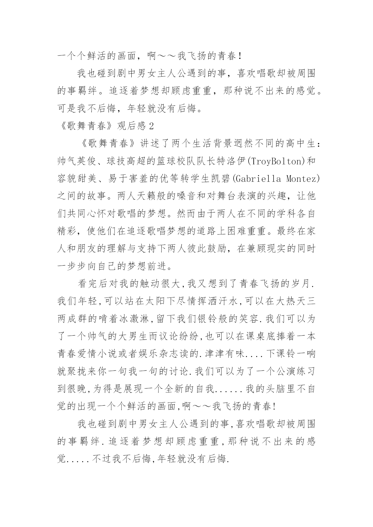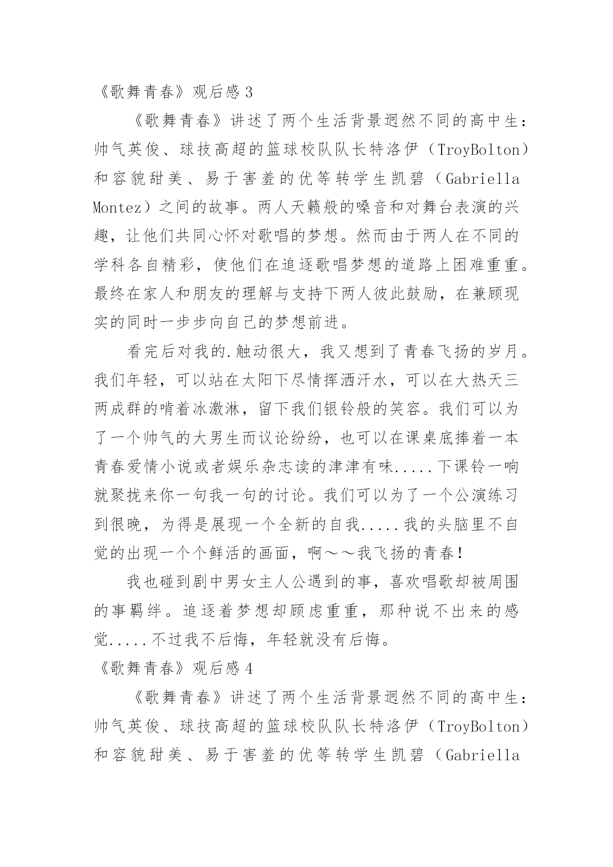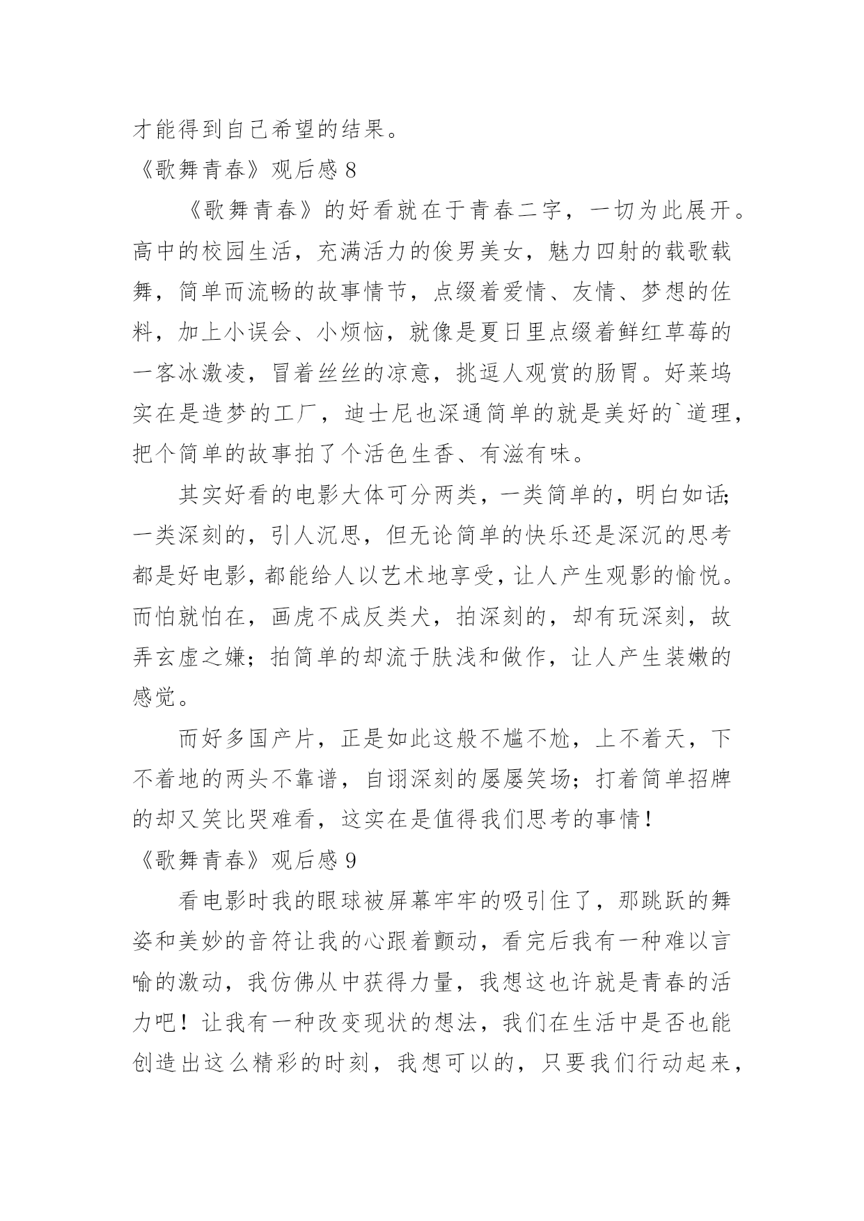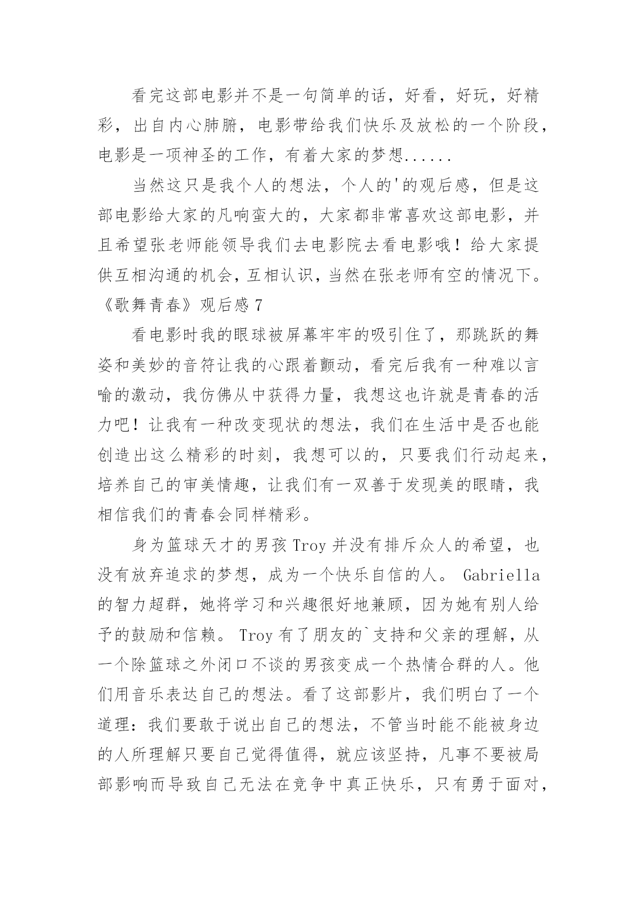 《歌舞青春》观后感《歌舞青春》观后感9篇看完某一作品后,相信你一定有很多值得分享的收获,不妨坐下来好好写写观后感吧。但是观后感有什么要求呢?以下是小编帮大家整理的《歌舞青春》观后感,供大家参考借鉴,希望可以帮助到有需要的朋友。《歌舞青春》观后感1歌舞青春》讲述了两个生活背景迥然不一样的高中生:帅气英俊、球技高超的篮球校队队长特洛伊(TroyBolton)和容貌甜美、易于害羞的优等转学生凯碧(GabriellaMontez)之间的故事。两人天籁般的嗓音和对舞台表演的兴趣,让他们共同心怀对歌唱的梦想。然而由于两人在不一样的学科各自精彩,使他们在追逐歌唱梦想的道路上困难重重。最终在家人和朋友的理解与支持下两人彼此鼓励,在兼顾现实的`同时一步步向自我的梦想前进。看完后对我的触动很大,我又想到了青春飞扬的岁月。我们年轻,能够站在太阳下尽情挥洒汗水,能够在大热天三两成群的啃着冰激淋,留下我们银铃般的笑容。我们能够为了一个帅气的大男生而议论纷纷,也能够在课桌底捧着一本青春感情小说或者娱乐杂志读的津津有味。下课铃一响就聚拢来你一句我一句的讨论。我们能够为了一个公演练习到很晚,为得是展现一个全新的自我。我的头脑里不自觉的出现一个个鲜活的画面,啊~~我飞扬的青春!我也碰到剧中男女主人公遇到的事,喜欢唱歌却被周围的事羁绊。追逐着梦想却顾虑重重,那种说不出来的感觉。可是我不后悔,年轻就没有后悔。《歌舞青春》观后感2《歌舞青春》讲述了两个生活背景迥然不同的高中生:帅气英俊、球技高超的篮球校队队长特洛伊(TroyBolton)和容貌甜美、易于害羞的优等转学生凯碧(GabriellaMontez)之间的故事。两人天籁般的嗓音和对舞台表演的兴趣,让他们共同心怀对歌唱的梦想。然而由于两人在不同的学科各自精彩,使他们在追逐歌唱梦想的道路上困难重重。最终在家人和朋友的理解与支持下两人彼此鼓励,在兼顾现实的同时一步步向自己的梦想前进。看完后对我的触动很大,我又想到了青春飞扬的岁月.我们年轻,可以站在太阳下尽情挥洒汗水,可以在大热天三两成群的啃着冰激淋,留下我们银铃般的笑容.我们可以为了一个帅气的大男生而议论纷纷,也可以在课桌底捧着一本青春爱情小说或者娱乐杂志读的.津津有味....下课铃一响就聚拢来你一句我一句的讨论.我们可以为了一个公演练习到很晚,为得是展现一个全新的自我......我的头脑里不自觉的出现一个个鲜活的画面,啊~~我飞扬的青春!我也碰到剧中男女主人公遇到的事,喜欢唱歌却被周围的事羁绊.追逐着梦想却顾虑重重,那种说不出来的感觉.....不过我不后悔,年轻就没有后悔.《歌舞青春》观后感3《歌舞青春》讲述了两个生活背景迥然不同的高中生:帅气英俊、球技高超的篮球校队队长特洛伊(TroyBolton)和容貌甜美、易于害羞的优等转学生凯碧(GabriellaMontez)之间的故事。两人天籁般的嗓音和对舞台表演的兴趣,让他们共同心怀对歌唱的梦想。然而由于两人在不同的学科各自精彩,使他们在追逐歌唱梦想的道路上困难重重。最终在家人和朋友的理解与支持下两人彼此鼓励,在兼顾现实的同时一步步向自己的梦想前进。看完后对我的.触动很大,我又想到了青春飞扬的岁月。我们年轻,可以站在太阳下尽情挥洒汗水,可以在大热天三两成群的啃着冰激淋,留下我们银铃般的笑容。我们可以为了一个帅气的大男生而议论纷纷,也可以在课桌底捧着一本青春爱情小说或者娱乐杂志读的津津有味.....下课铃一响就聚拢来你一句我一句的讨论。我们可以为了一个公演练习到很晚,为得是展现一个全新的自我.....我的头脑里不自觉的出现一个个鲜活的画面,啊~~我飞扬的青春!我也碰到剧中男女主人公遇到的事,喜欢唱歌却被周围的事羁绊。追逐着梦想却顾虑重重,那种说不出来的感觉.....不过我不后悔,年轻就没有后悔。《歌舞青春》观后感4《歌舞青春》讲述了两个生活背景迥然不同的高中生:帅气英俊、球技高超的篮球校队队长特洛伊(TroyBolton)和容貌甜美、易于害羞的优等转学生凯碧(GabriellaMontez)之间的故事。两人天籁般的嗓音和对舞台表演的兴趣,让他们共同心怀对歌唱的梦想。然而由于两人在不同的学科各自精彩,使他们在追逐歌唱梦想的道路上困难重重。最终在家人和朋友的理解与支持下两人彼此鼓励,在兼顾现实的同时一步步向自己的梦想前进。看完后对我的触动很大,我又想到了青春飞扬的岁月。我们年轻,可以站在太阳下尽情挥洒汗水,可以在大热天三两成群的`啃着冰激淋,留下我们银铃般的笑容。我们可以为了一个帅气的大男生而议论纷纷,也可以在课桌底捧着一本青春爱情小说或者娱乐杂志读的津津有味......下课铃一响就聚拢来你一句我一句的讨论。我们可以为了一个公演练习到很晚,为得是展现一个全新的自我。我的头脑里不自觉的出现一个个鲜活的画面,啊~~我飞扬