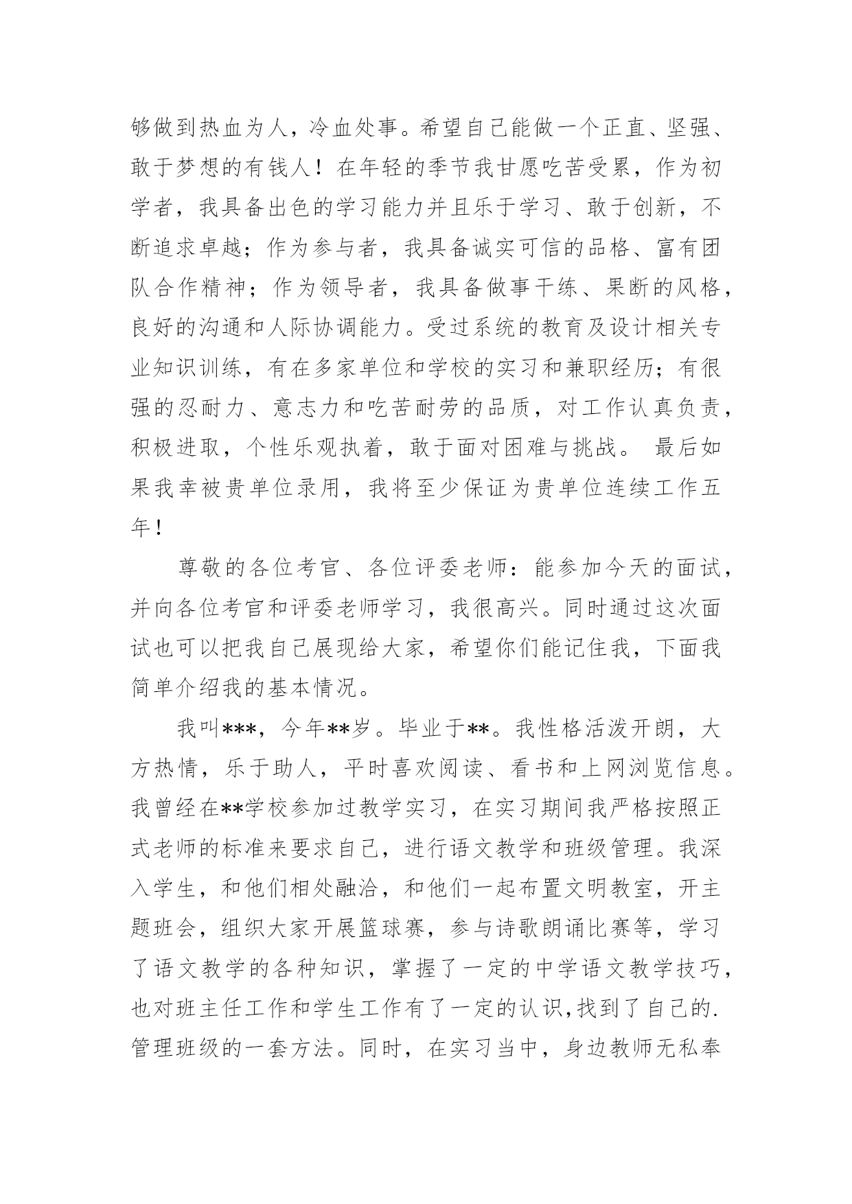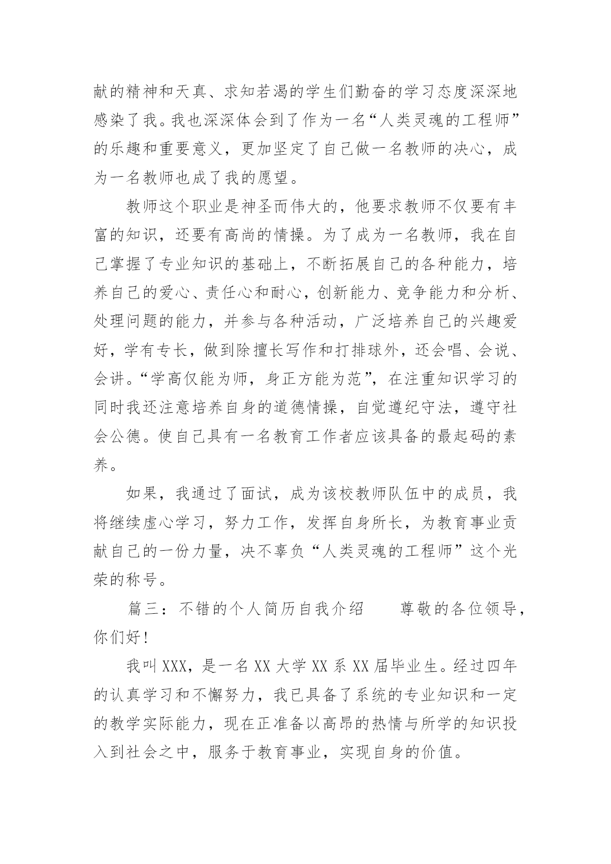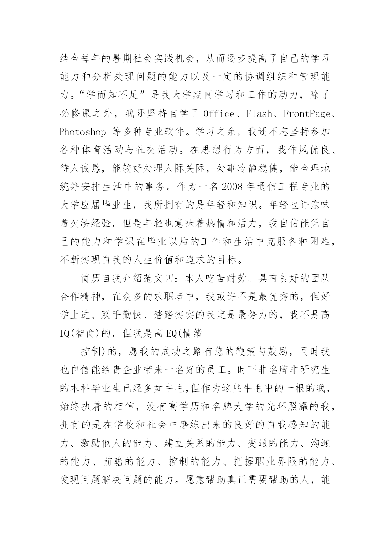 求职岗位自我介绍求职岗位自我介绍篇一:自我介绍、职业规划自我介绍:尊敬的各位考官,大家好。今天有这个机会与考官面对面地交流,我感到很荣幸与开心。我叫XX,我本科和研究生都是就读于XXX大学,本科专业是XXX,研究生的专业是艺术设计,目前通过硕士答辩。在学习上曾多次获得奖学金,并考取了大学英语四级证书,计算机二级证书,并且在2011年光荣地加入了中国共产党。本科室,我一直是我们班的班长,组织并参加了一些社会实践活动,很好地锻炼了自己的组织协调能力。在2012年我以文化课第一,专业课第一的成绩考取了公费硕士研究生。研究生期间,我刻苦钻研专业知识,获得优秀研究生奖学金。在性格上,我认真踏实,学习能力和适应能力很强,对待学习工和作一丝不苟而且具有大局意识和团队精神,善于沟通,爱交朋友。在求职时,我也客观的分析过我的条件和职位要求,认为这些特点也使我非常适合宣传干事这个岗位。港务局是一个拥有100多年历史的港口,它浓厚的底蕴吸引了我。我非常期盼有机会成为港务局的一份子,再踏踏实实的工作中,实现个人的价值,为港口集团的发展贡献自己的力量!职业规划:如果有幸进入港口集团工作,我将会这样设计我未来职业生涯。首先,最初的一两年,我会深入了解岗位职责,工作要求,向领导和同事学习,快速适应新环境,尽快融入到团队中,熟悉公司的各项规章制度、掌握岗位工作的必要知识和技能,并在学以致用的过程中寻找到工作乐趣。在这个过程中,我不断查找自身能力素质和职位之间的差距,通过工作中的锻炼和自我的不断学习,缩短差距。其次,随后的两三年,我要不断的总结工作中经验教训,工作中展现主动性,不断提高和丰富工作的知识和技能技巧,对各项本职工作做到熟练和精进,踏实工作,争取能够在工作中独当一面,团结周围的同事,在工作中争创一流,让领导对我的工作放心、省心。最后,五年以后,我力争对本职工作做到游刃有余,更加爱岗敬业,我希望能尝试逐步承担和接触其他方面的工作,拓宽业务面,承担更多的责任,以此实现自我价值,也为港口集团做出更大的贡献。篇二:不错的个人简历自我介绍在面试的过程中,通常口语自我介绍及简历自我介绍并存,虽然简历中的自我介绍可以不与口语时的完全一致,但一定要真实可靠。以下为您举例几篇个人简历自我介绍资料,请参考。简历自我介绍范文一:我是一名应届毕业生,来自湖北武汉,农村生活铸就了我淳朴、诚实、善良的性格,培养了我不怕困难挫折,不服输的奋斗精神。我深知学习机会来之不易,在校期间非常重视计算机基础知识的学习,取得了良好的成绩。基本上熟悉了pc机的原理与构造,能熟练地应用各种机床操作系统,通过了劳动部《模具设计师》高级级认证。在学习专业知识的同时,还十分重视培养自己的动手实践能力,利用暑假参加了长江融达企业给予的宝贵实习机会,了解的各式机床的操作,以及简单数控机床的编程及操作。我冒昧向贵企业毛遂自荐,给我一个机会,给您一个选择,我相信您是正确的。祝贵企业蓬勃发展,您的事业蒸蒸日上!此致敬礼简历自我介绍范文二:本人经过三年多扎实的工作实践,现已能够独立操作整个外贸流程.工作踏实、细致、认真。具有较好的文字组织能力,有一定的英语听说读写能力,能都熟练操作windows平台上的个类应用软件(如photoshop、word2000、excel2000),动手能力较强。本人具有较强的责任心和工作主动性,较好的组织协调能力和应变能力,可以和各个部门的同事相处融洽,配合顺利地完成工作任务。为人诚实并得到领导的认可!曾去广州、上海等地参加国际性展会,有翻译和外贸经验及出国参展经验!本人性格开朗,善于沟通,谦虚,自信。虽然新的工作和环境与以往的有所不同,但我相信通过自己的努力和已有的工作基础可以很快胜任,对此我很有信心!简历自我介绍范文三:在大学期间,我始终以提高自身的综合素质为目标,以自我的全面发展为努力方向,树立正确的人生观、价值观和世界观。为适应社会发展的需求,我认真学习各种专业知识,发挥自己的特长;挖掘自身的潜力,结合每年的暑期社会实践机会,从而逐步提高了自己的学习能力和分析处理问题的能力以及一定的协调组织和管理能力。“学而知不足”是我大学期间学习和工作的动力,除了必修课之外,我还坚持自学了Office、Flash、FrontPage、Photoshop等多种专业软件。学习之余,我还不忘坚持参加各种体育活动与社交活动。在思想行为方面,我作风优良、待人诚恳,能较好处理人际关际,处事冷静稳健,能合理地统筹安排生活中的事务。作为一名2008年通信工程专业的大学应届毕业生,我所拥有的是年轻和知识。年轻也许意味着欠缺经验,但是年轻也意味着热情和活力,我自信能凭自己的能力和学识在毕业以后的工作和生活中克服各种困难,不断实现自我的人生价值和追求的目标。简历自我介绍范文四:本人吃苦耐劳、具有良好的团队合