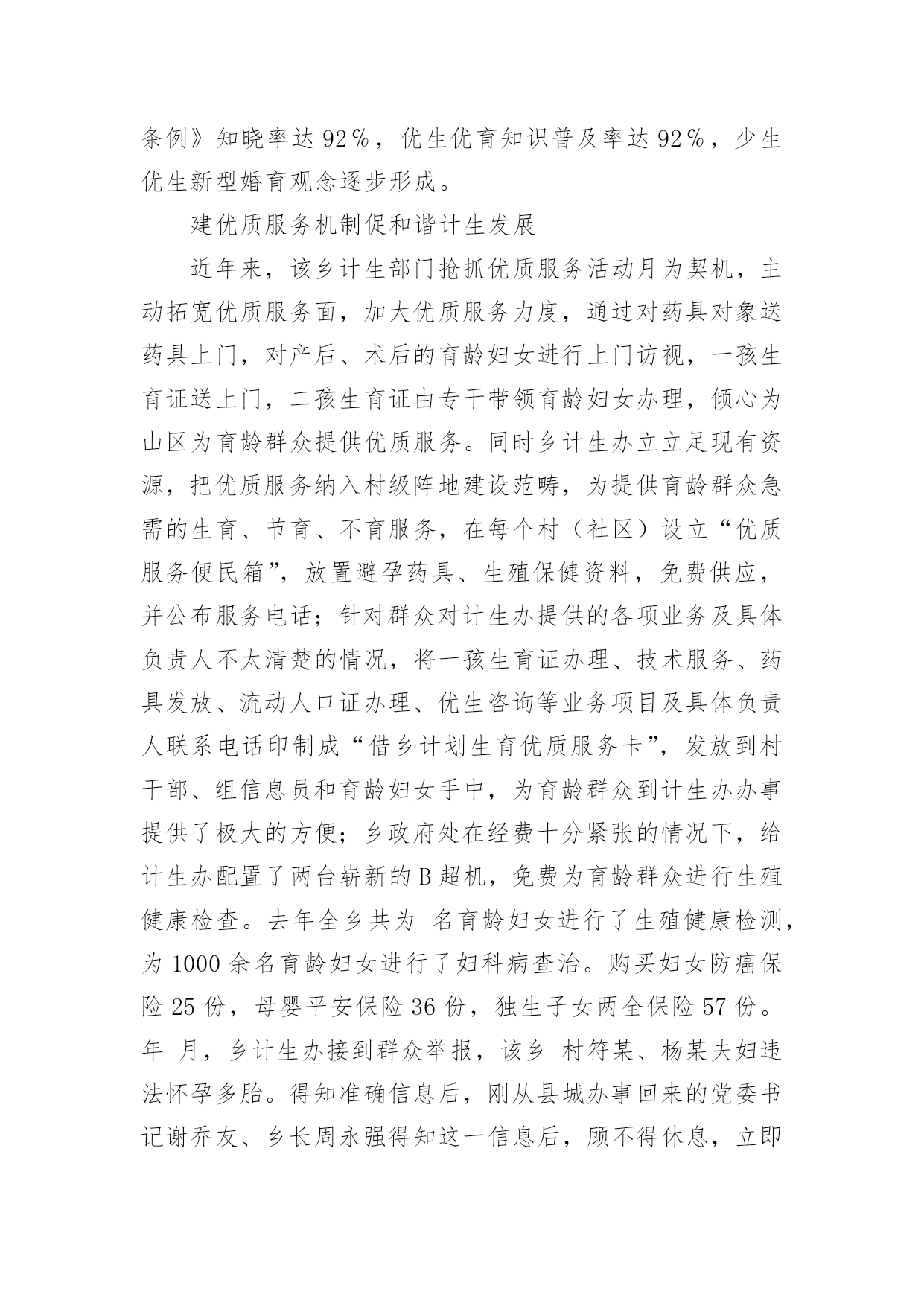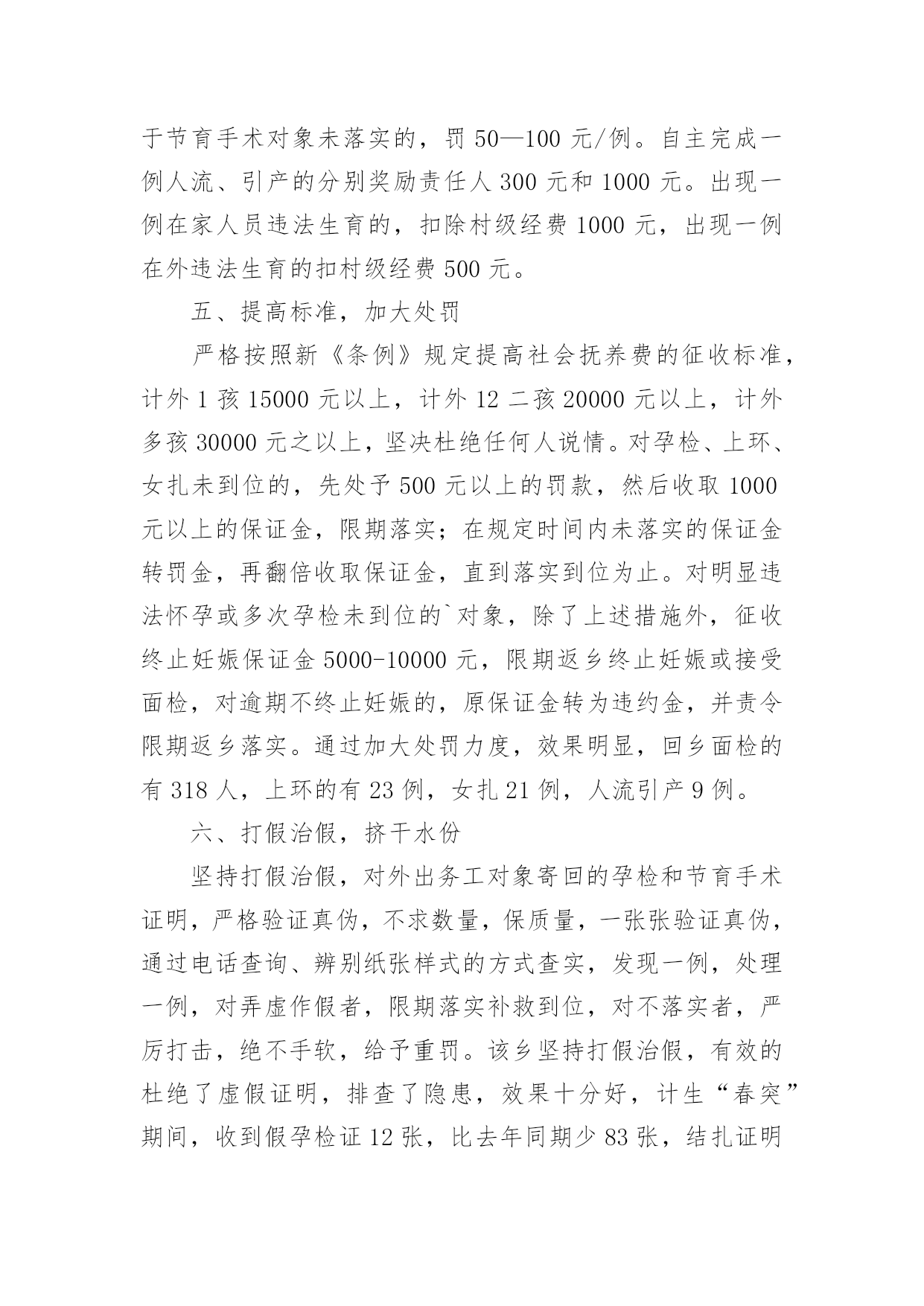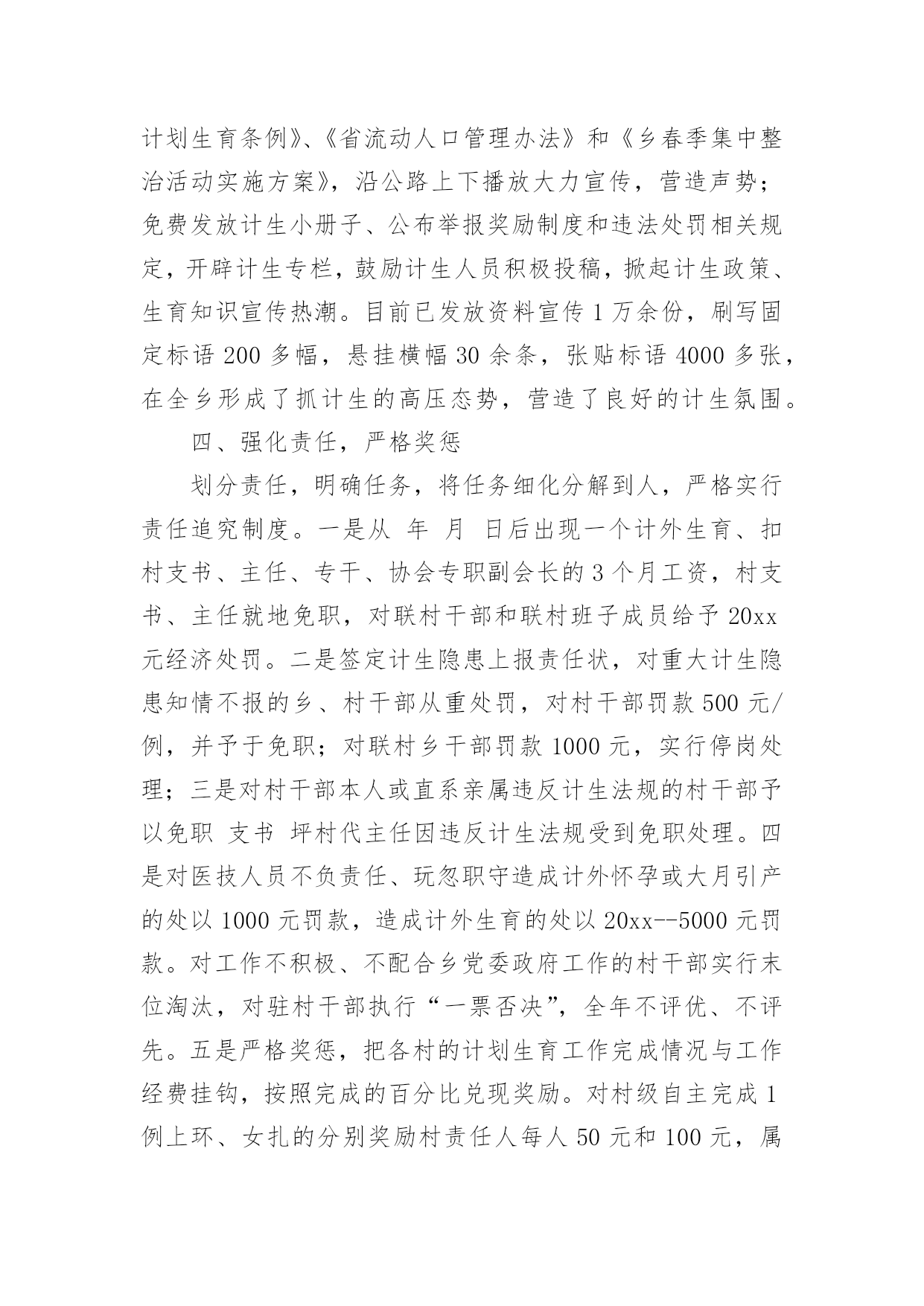乡镇计生工作报告乡镇计生工作报告在现在社会,报告不再是罕见的东西,我们在写报告的时候要注意语言要准确、简洁。你知道怎样写报告才能写的好吗?下面是小编为大家收集的乡镇计生工作报告,仅供参考,欢迎大家阅读。乡镇计生工作报告1XX年是“xx”规划的起步年,为了认真贯彻落实中央和省委《关于全面加强人口和计划生育工作统筹解决人口问题的决定》精神,确保全镇人口和计划生育目标的实现,范文之工作报告:乡镇计生工作报告。半年来,我镇紧紧围绕县委、县政府制定的人口与计划生育目标责任的要求,针对全镇实际,强化责任,细化措施,狠抓落实。截止3月底,全镇共出生婴儿477人,其中一孩403人,二孩64人,多孩10人。计外出生二孩7人,符合政策生育率为97.9%,人口出生性别比为100:102,控制在正常值范围,无“两非”案件发生。主要工作如下:一、加强制度建设。建立党委会议计生制度,镇党委十分重视计划生育工作,安排一名副书记和一名副镇长专抓计划生育工作,并将人口计生工作列入重要议事日程,逢会必讲计划生育工作,镇党委每月听取一次计生办工作汇报,镇计生办每星期一开工作例会,及时研究部署计划生育工作,做到情况明,措施力;坚持党委委员带头,党总支书记负责的计生工作机制,镇党委政府还与各单位各村签订人口和计划生育目标管理责任书,同时建立专干包村制度,机关干部和计生服务中心人员包村,村干部包组,包户,工作和工资挂钩,严格执行一票否决。二、多措并举抓宣传。利用网络,设立咨询台,发放宣传材料等多种途径,进行计划生育政策法规和生殖健康知识的宣传教育,强化宣传氛围,利用农家书屋结合创建生育文明示范村的活动,发放入户宣传资料5000余份,刷写小标语100条,宣传挂图100套,引导人民群众树立科学、文明的生育观念。三、着力规范生育秩序。今年来,我们认真清理生育情况,确保出生人口统计准确率达到100%,对XX年10月1日以来的生育对象进行了认真清理,对照统计口径及时做好入户调查,入户审核,及时录入全员人口数据系统。同时认真清理政策外孕妇,并加大力度,采取有效办法落实补救措施。我们在此项工作中,主要领导加强督办,专班队伍不辞劳苦,牺牲个人休息时间连续作战,从XX年10月1日至XX年3月31日,全镇共补救计外三个月以上孕妇8例,有效遏制了全镇二孩符合政策生育下降的趋势。我们还配合县执法大队,坚决打击违法生育行为,在三月份的突击月活动中,严格依法行政,征收社会抚养费10多万元。通过建立健全严格监管制度,建立党政负责,部门配合,综合治理,孕情过程管理的有效机制,全镇没有发生一起非法鉴定胎儿性别和非医学需要选择性别终止妊娠事件。四、流动人口管理到位。今年以来,我们积极推行流出人口“宣传、访视、帮扶、联系”四到位服务管理模式。一是宣传服务到位,春节前后,利用大流出人口返乡之际,组织5个专班集中开展一次人口法律法规,生殖健康,避孕节育知识宣传培训,现场为流出对象更换或办理《流动人口婚育证明》,签订《村民自治合同》,建立健全流动人口档案。二是访视服务到位,对返乡流动人口上门“家访”,对流出人口集中地进行“外访”,对在外遇上困难的人员进行“探访”,对群众反映有疑点的人员进行“查访”。三是帮扶到位,对流出人口留守在家的父母、儿童予以生产、生活等方面的照顾,如帮助耕种,提供资金信息等,复合中心小学还成立了留守儿童帮扶站,解决留守儿童学习生活困难。四是电话联系到位,准确掌握流出对象的电话号码,定期与外出已婚育龄妇女联系,收集相关信息,随时掌握流出已婚妇女的基本信息。乡镇计生工作报告2针对严峻的计划生育形势和落后的工作局面,乡党委、政府高度重视,在春季集中整治活动中,及时调整整治方案,扩大整治面,突出重点,集中力量、集中时间,加大力气,下猛药,效果十分显著。截止月日全乡应孕检3739例,已检3634例,孕检率达97.19%,应女扎43例,实际落实48例,超额完成任务,上环78例,占任务78.79%,人流11例、引产10例,分别占任务总数的91.67%、58.82%,征收社会抚养费已经征收12.3万元,这些工作成绩的取得,主要是我乡下大力,强措施的效果。一、认清形势,提高认识针对问题,乡党委政府高度重视,连续两次召开全体乡村干部、乡直机关单位负责人和联乡单位工作队员参加的高标准集中整治攻坚大会,查问题,找工作中的不足,探究原因,及时调整整治方案,提高乡村干部的认识,增强危机感和紧迫感。邀请副县长张振华、人大副主任、计生局长等领导到该乡指导计生工作,给乡村干部极大的鼓舞。二、明确任务,加强领导我乡整治任务是:严格控制违法生育,分类指导整治17个后进村为重点,排查隐患,全面落实孕检、节育措施、流引产补救措施和征收社会抚养费,强化村级工作基础,完成上级下达的各项任务指标。为了将工作落到实处,切实加强领导,成立