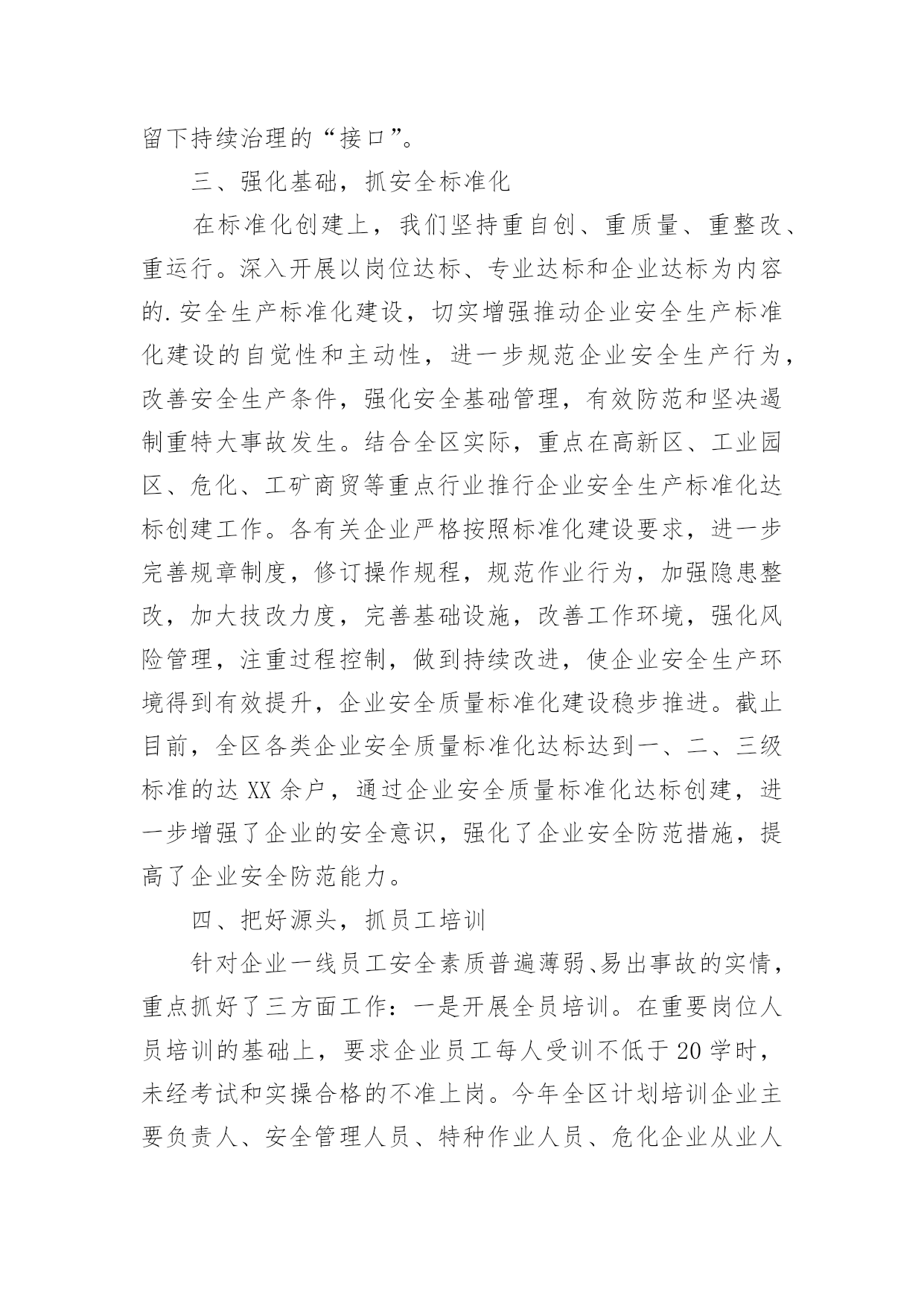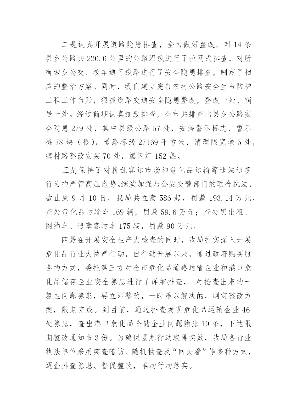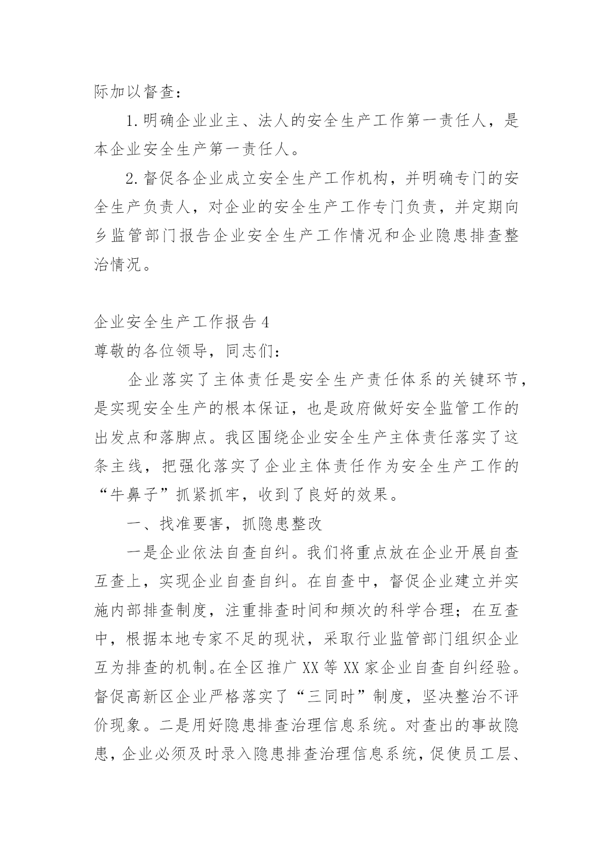 企业安全生产工作报告在经济发展迅速的今天,需要使用报告的情况越来越多,写报告的时候要注意内容的完整。一听到写报告马上头昏脑涨?以下是小编为大家收集的企业安全生产工作报告,仅供参考,希望能够帮助到大家。企业安全生产工作报告1根据市卫生局《南安市安全生产委员会关于下发全市立即开展全市安全生产大检查方案的通知》现结合我院安全生产有关内容,我院组织人员对上述各项工作进行了认真的自查和整改,现总结报告如下:一、检查内容(一)安全生产情况:院安全生产管理领导小组对全院进行了一次彻底检查,包括各项安全生产规章制度制定及落实情况。用电及消防情况,易燃、易爆、麻毒药品等危险品管理以及医疗安全管理等项目,具体情况如下:1、组织领导领导责任制落实情况良好,成立了由院长为组长的安全生产领导小组,值班人员到位,各项规章制度健全。2、预防医疗事故方面落实了医疗安全的各项核心制度,急危重症患者的.抢救措施到位。医疗安全的各项硬件设施完善,供应室、手术室等科室设施建设规范。医疗废物处理的各项规章制度健全,处理方式符合标准,做到了有专人管理并责任到人。3、突发公共卫生事件应急处置和医疗卫生保障方面针对可能发生的突发公共卫生事件和灾害事故,制定有相关应急处理预案,成立了医疗卫生应急救援队伍,保持通讯畅通,建立医疗救援、卫生防疫等应急物资储备。4、治安保卫和消防方面建立了突发事件应急预案,完善了治安保卫和消防职责、工作制度,人员值班落实到位。重点要害科室的防护责任措施落实。(二)医院内感染及消毒安全1、成立了医院感染管理委员会和医院感染管理办公室,有具体的办公人员,工作人员职责明确。2、制订了《医院感染管理制度》、《医院感染控制方案》《医院感染控制、隔离措施》《消毒隔离制度.《合理使用抗生素管理办法》《消毒灭菌效果监测制度》《治疗室消毒隔离管理制度》《供应室、手术室、产房消毒隔离制度》《产房保洁措施》《医疗废物处理管理制度》等医院感染预防、控制制度。3、制订了医院消毒隔离登记制度,对消毒效果进行了检测。4、全院医务人员均参加了有关医院感染知识的培训。二、发现的问题1、消防器械未落实到位。2、感染制度落实不到位,消毒效果监测不够及时,登记不全,未作监测分析。3、部分医务人员对医院安全生产不够重视,存在麻痹思想。三、整改措施1、立即安装好合格的消防器械。2、召开职工大会,对医院感染制度、医院感染有关知识进行再培训,制订考核制度,对违反有关医院感染的科室和人员进行处罚,立即对全院的消毒情况进行检测并作出分析,对消毒措施不规范的,进行改正。3、进一步完善各项管理制度,特别是预防和控制医院感染有关制度,做到感染管理制度完善、感染管理组织健全、感染控制措施到位、感染管理人员职责明确,保证感染控制目标的实现。企业安全生产工作报告2近期,我局在抓好创城工作的同时,紧抓安全生产这根弦不放松,各行业部门近期主要围绕迎接国务院安全生大检查活动展开各项检查。一是各交通运输企业迅速全面开展了自查自纠,主要从企业安全生产管理责任落实情况、各项制度的建立执行情况、安全风险管控情况、隐患排查治理和应急管理情况进行自查,我局重点对7家危化品运输和2家港口危化品罐区的整改情况进行了抽查。各企业对查出的'42条问题已经全部整改完毕。二是认真开展道路隐患排查,全力做好整改。对14条县乡公路共226.6公里的公路沿线进行了拉网式排查,对所有城乡公交、校车通行线路进行了安全隐患排查,制定了相应的整治方案。同时,我们建立完善农村公路安全生命防护工程工作台账,狠抓道路交通安全隐患整改,整改一处、销号一处。经过前期认真细致排查,全市共排查出县乡公路安全隐患279处,其中县级公路57处,安装警示标志、警示桩78块(根),道路标线27169平方米,清理限宽墩5处,镇村路整改安装70处,爆闪灯152盏。三是保持了对扰乱客运市场和危化品运输等违法违规行为的严管高压态势。继续加强与公安交警部门的联合执法,截止到9月10日,我局共立案586起,罚款193.14万元,查处危化品运输车169辆,罚款59.6万元;查处黑出租、网约车、违章客运车175辆,罚款90万元。四是在开展安全生产大检查的同时,我局扎实深入开展危化品行业大快严行动,自行动开展以来,通过政府购买服务的方式,委托第三方对全市危化品道路运输企业和港口危化品储存企业安全隐患进行了详细排查,对检查出来的一般性问题隐患,要立即整改,一时难以解决的,制定整改方案,限期完成。到目前,通过排查发现危化品运输企业46处隐患,查出港口危化品仓储企业问题隐患19条,下达限期整改通知书3份。为确保紧急行动取得实效,我局各行业执法单位采用突查暗访、随机抽查及“回头看”等多种方式,逐企排查隐患、督促整改,推动行动落实。五是安全生产大检查活行开展以来,我局运管部门对每一家企业、每一辆车、