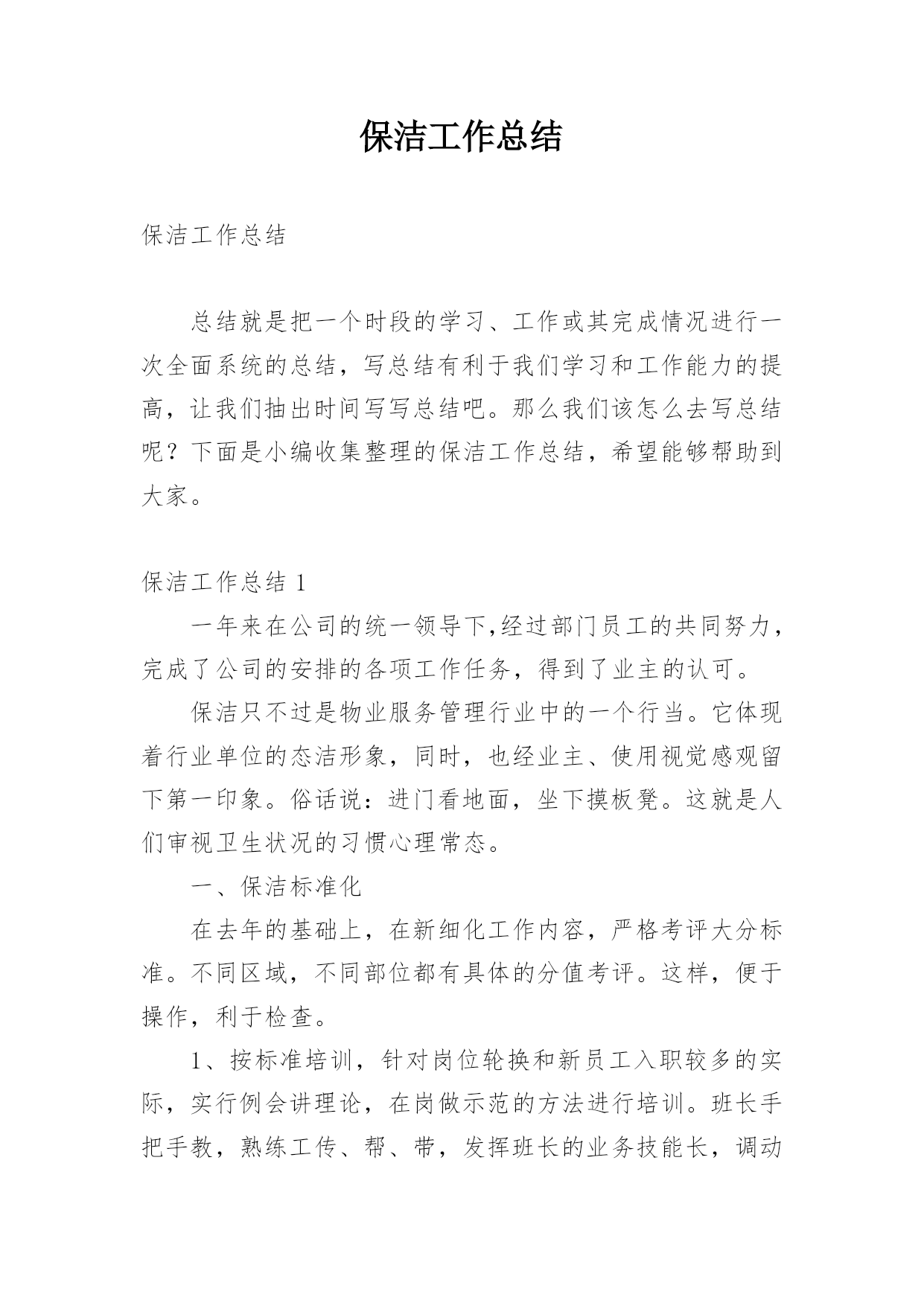 保洁工作总结保洁工作总结总结就是把一个时段的学习、工作或其完成情况进行一次全面系统的总结,写总结有利于我们学习和工作能力的提高,让我们抽出时间写写总结吧。那么我们该怎么去写总结呢?下面是小编收集整理的保洁工作总结,希望能够帮助到大家。保洁工作总结1一年来在公司的统一领导下,经过部门员工的共同努力,完成了公司的安排的各项工作任务,得到了业主的认可。保洁只不过是物业服务管理行业中的一个行当。它体现着行业单位的态洁形象,同时,也经业主、使用视觉感观留下第一印象。俗话说:进门看地面,坐下摸板凳。这就是人们审视卫生