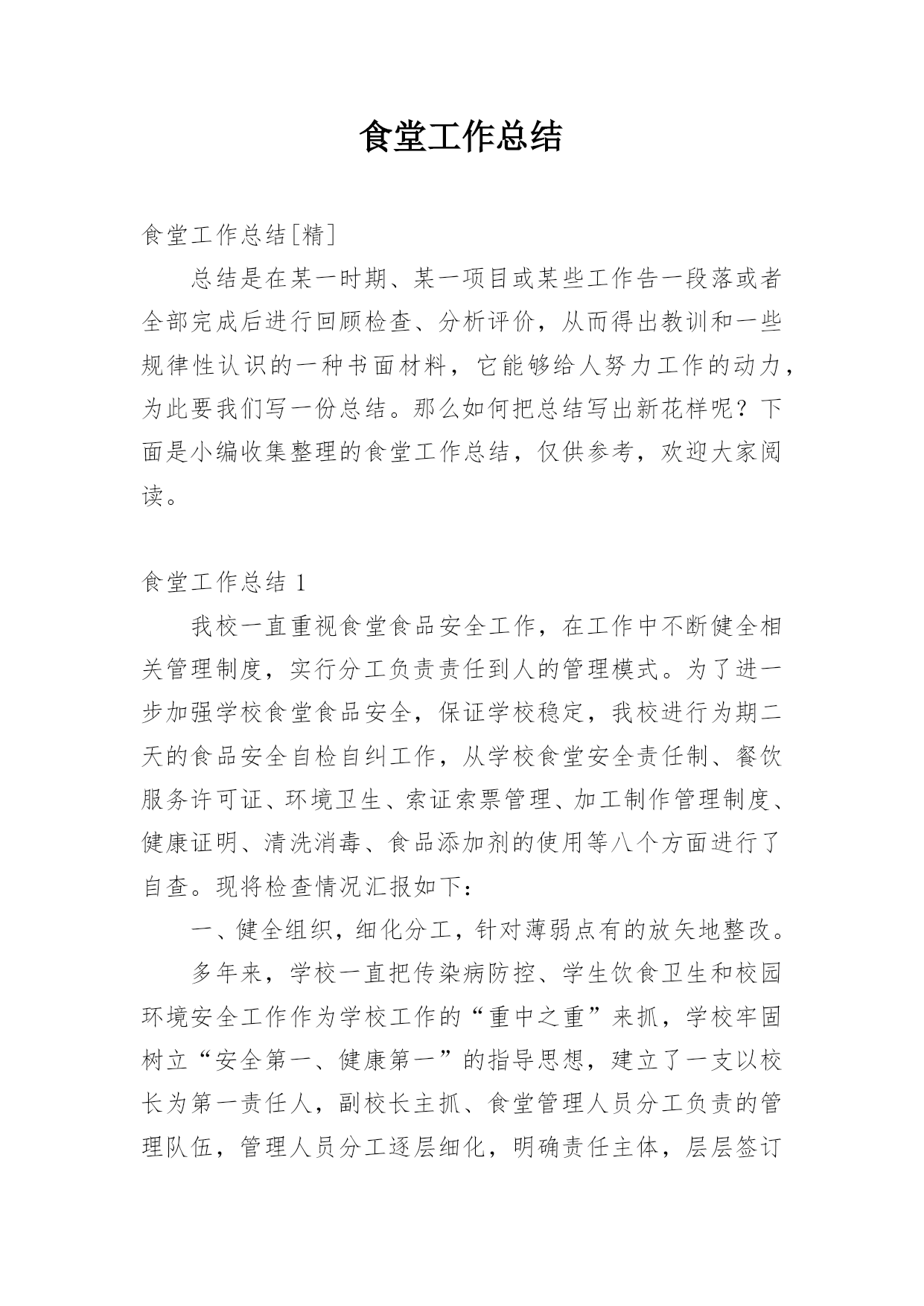 食堂工作总结食堂工作总结[精]总结是在某一时期、某一项目或某些工作告一段落或者全部完成后进行回顾检查、分析评价,从而得出教训和一些规律性认识的一种书面材料,它能够给人努力工作的动力,为此要我们写一份总结。那么如何把总结写出新花样呢?下面是小编收集整理的食堂工作总结,仅供参考,欢迎大家阅读。食堂工作总结1我校一直重视食堂食品安全工作,在工作中不断健全相关管理制度,实行分工负责责任到人的管理模式。为了进一步加强学校食堂食品安全,保证学校稳定,我校进行为期二天的食品安全自检自纠工作,从学校食堂安全责任制、餐饮服