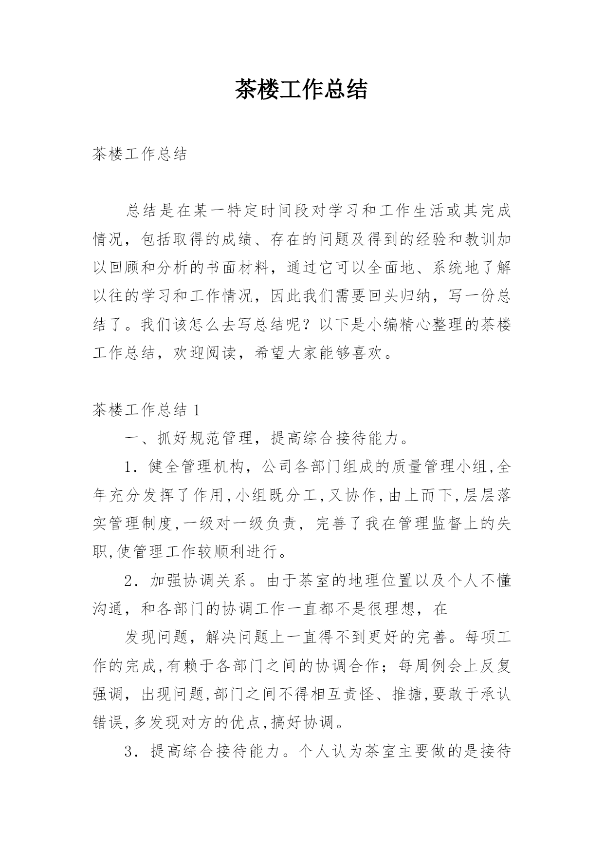 茶楼工作总结.docx
