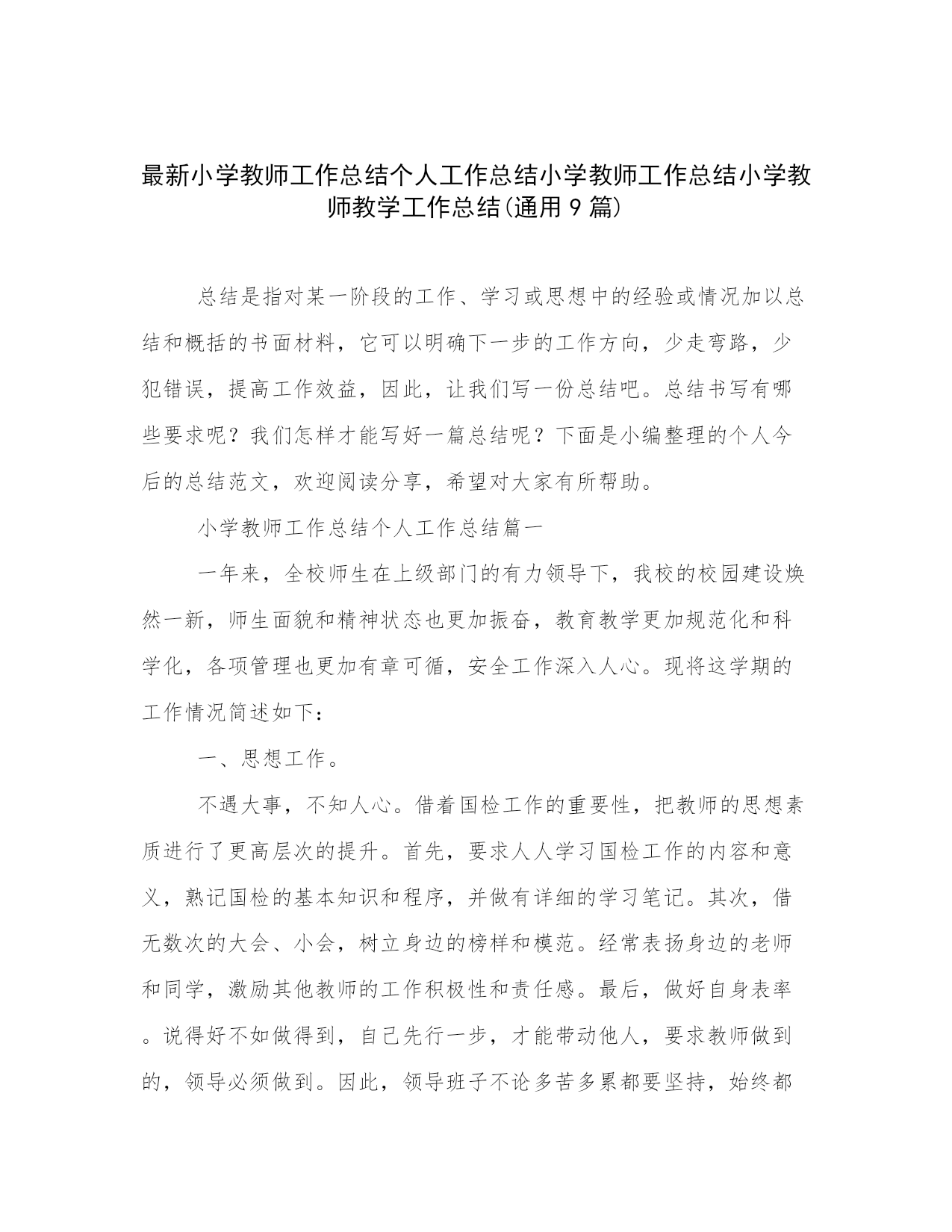 最新小学教师工作总结个人工作总结小学教师工作总结小学教师教学工作总结(通用9篇).docx