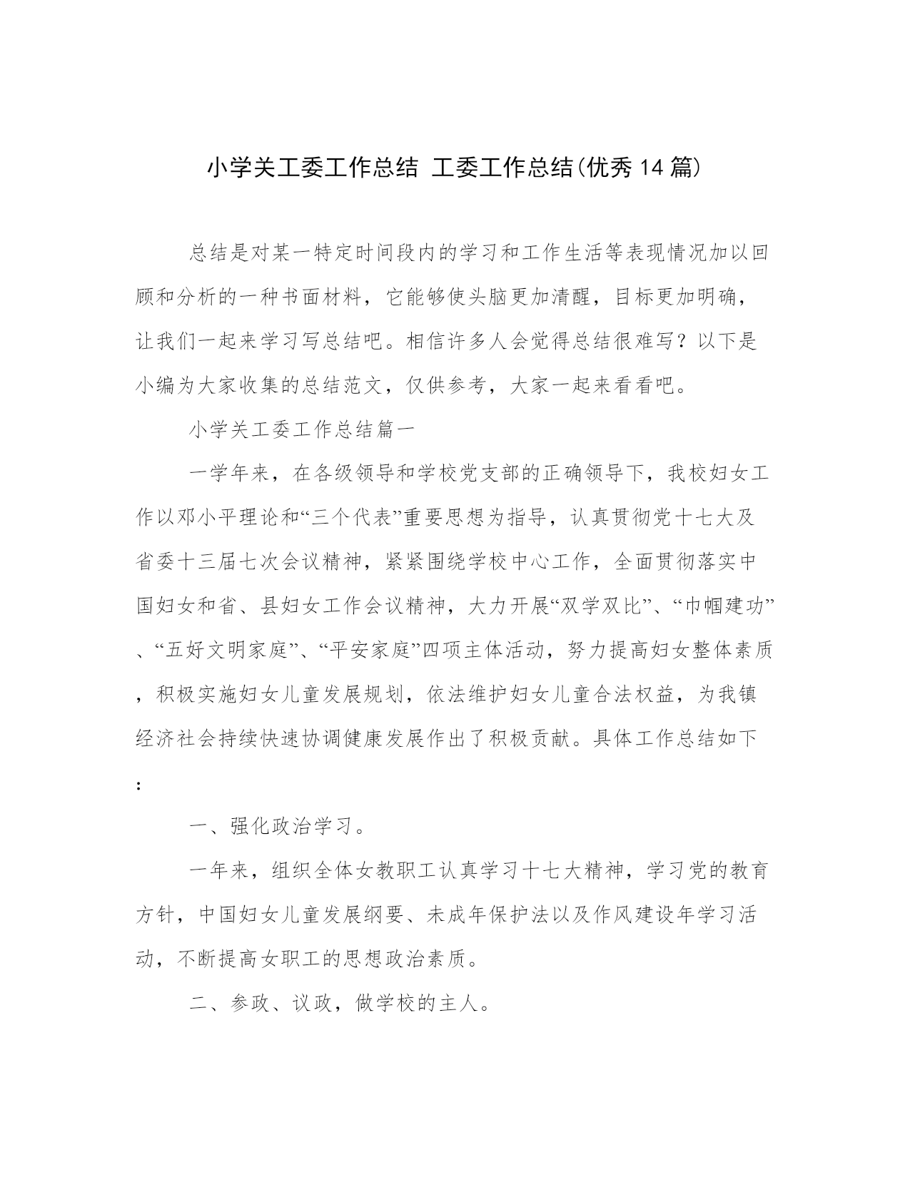 小学关工委工作总结 工委工作总结(优秀14篇).docx
