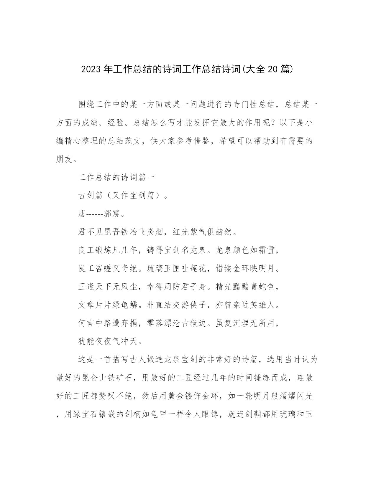 2023年工作总结的诗词工作总结诗词(大全20篇).docx
