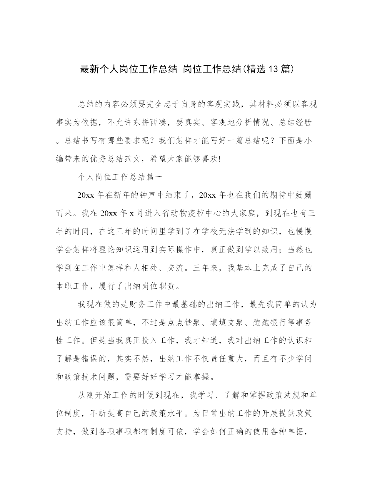 最新个人岗位工作总结 岗位工作总结(精选13篇).docx