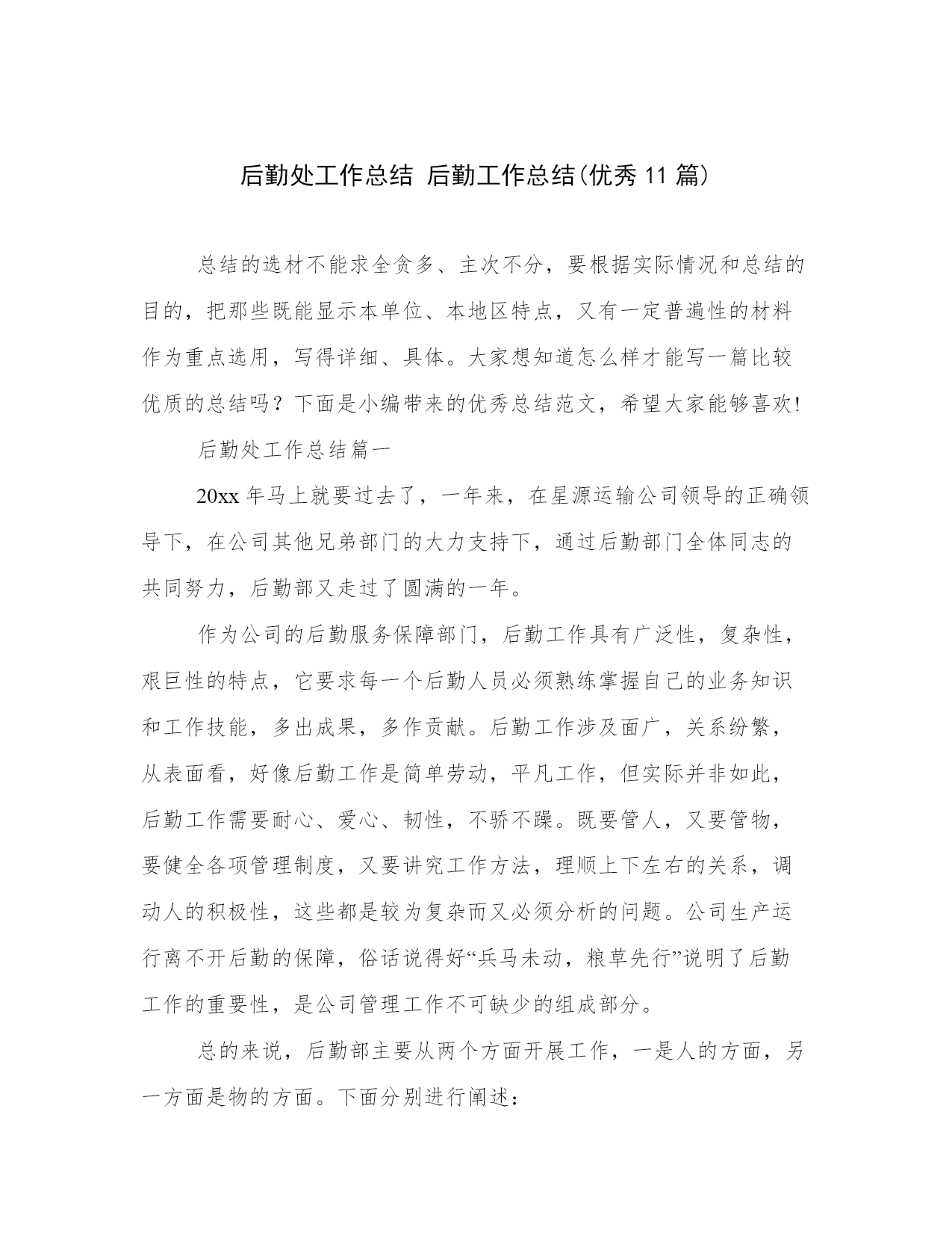 后勤处工作总结 后勤工作总结(优秀11篇).docx