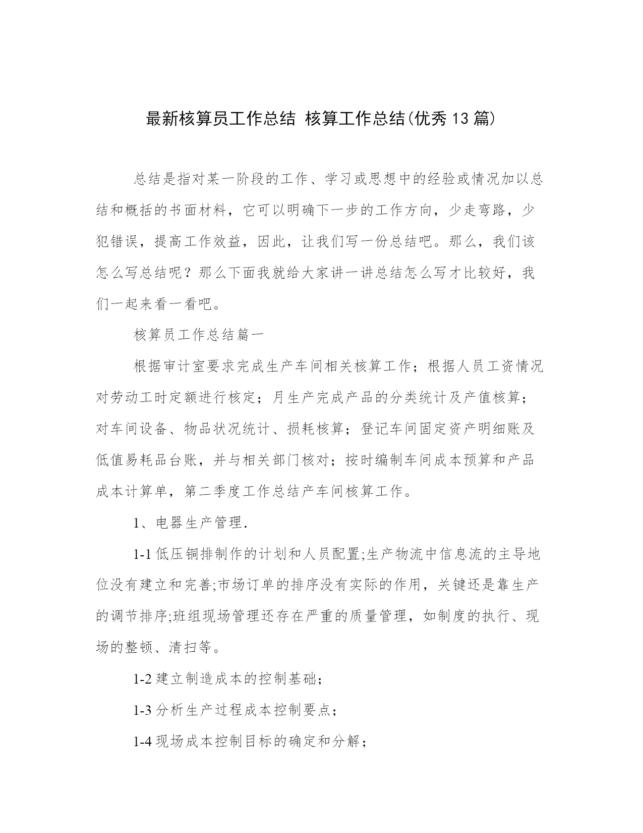 最新核算员工作总结 核算工作总结(优秀13篇).docx