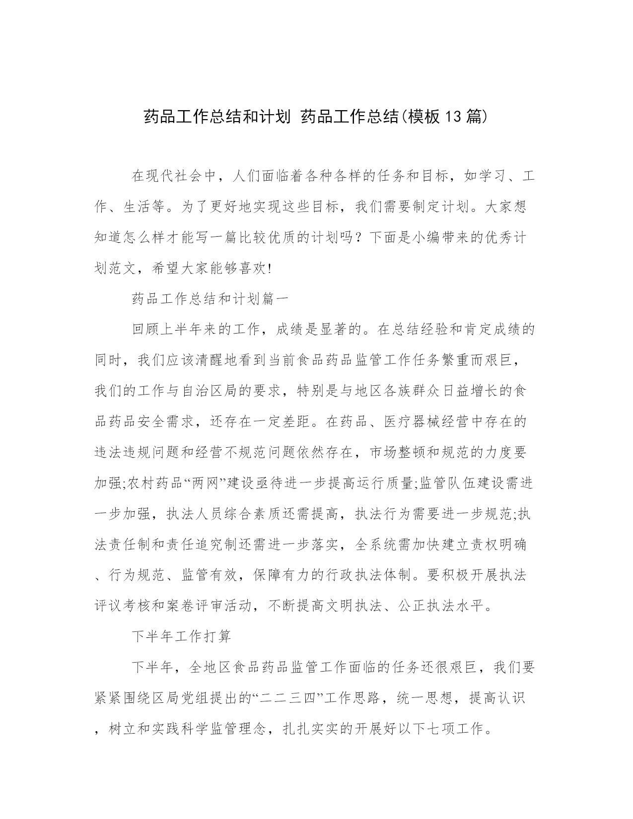 药品工作总结和计划 药品工作总结(模板13篇).docx