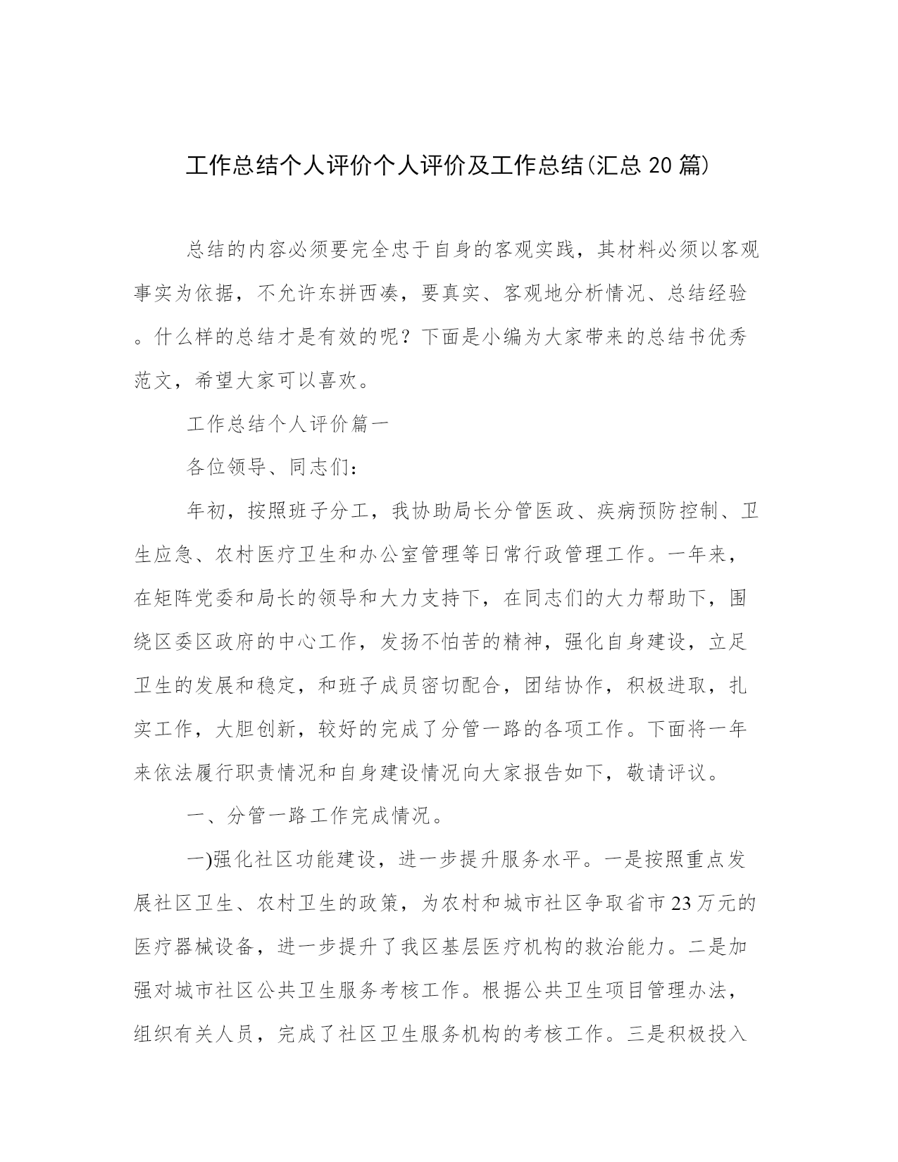 工作总结个人评价个人评价及工作总结(汇总20篇).docx