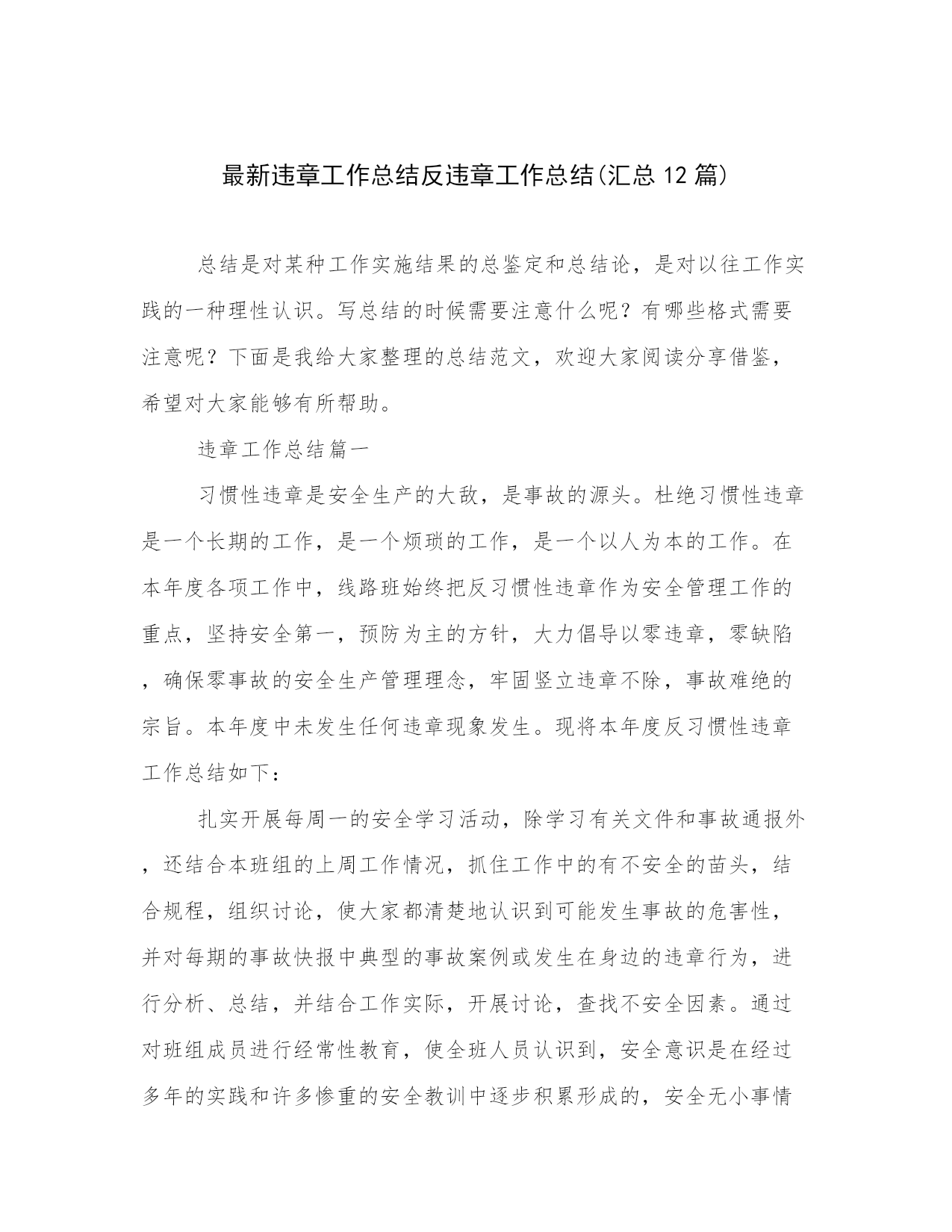 最新违章工作总结反违章工作总结(汇总12篇).docx