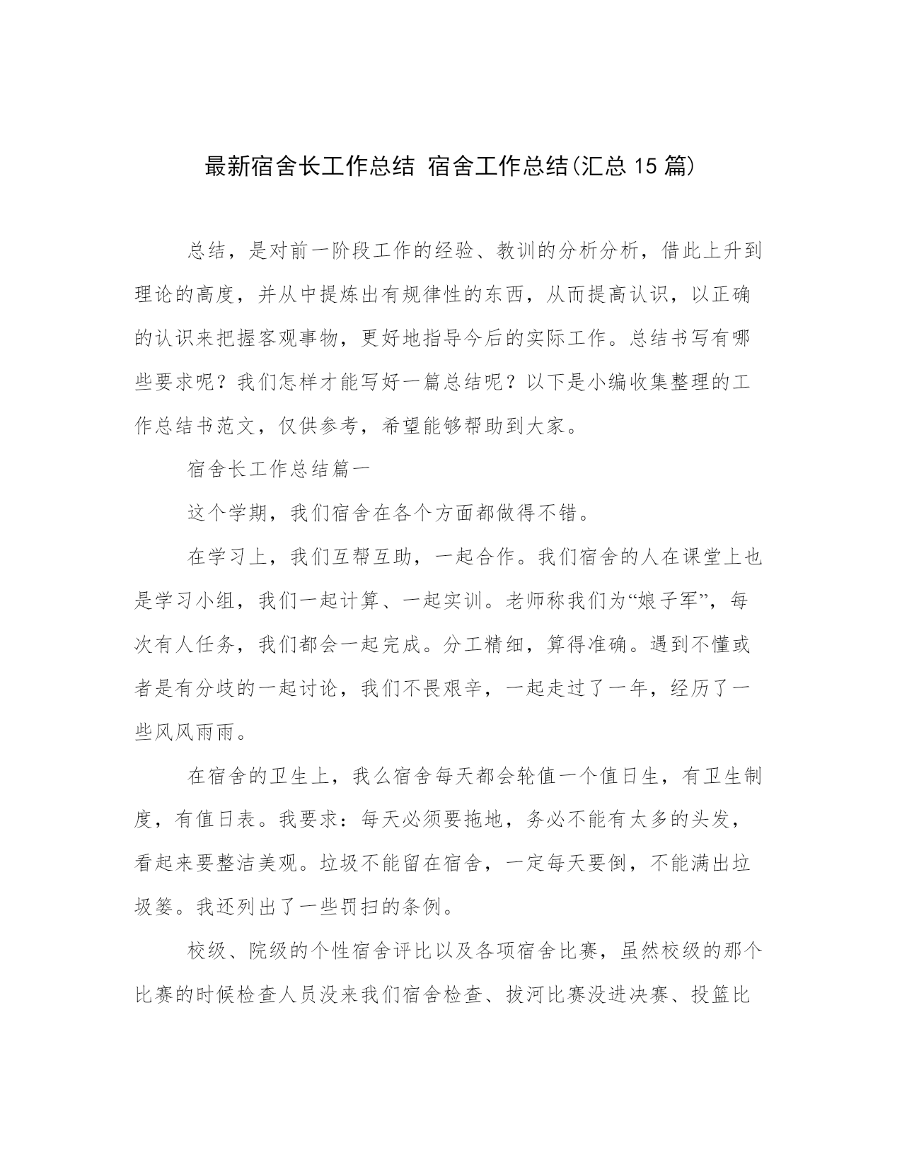 最新宿舍长工作总结 宿舍工作总结(汇总15篇).docx