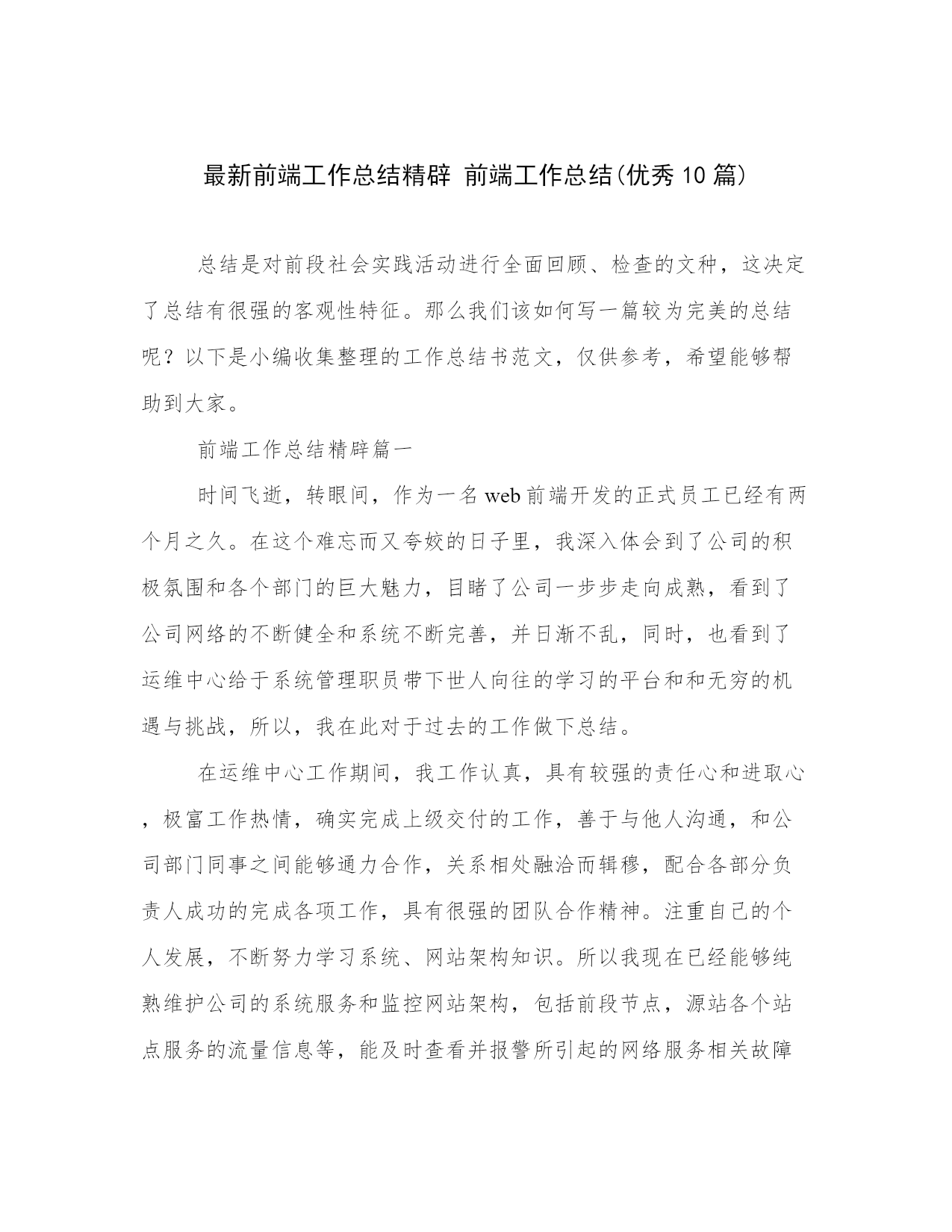 最新前端工作总结精辟 前端工作总结(优秀10篇).docx