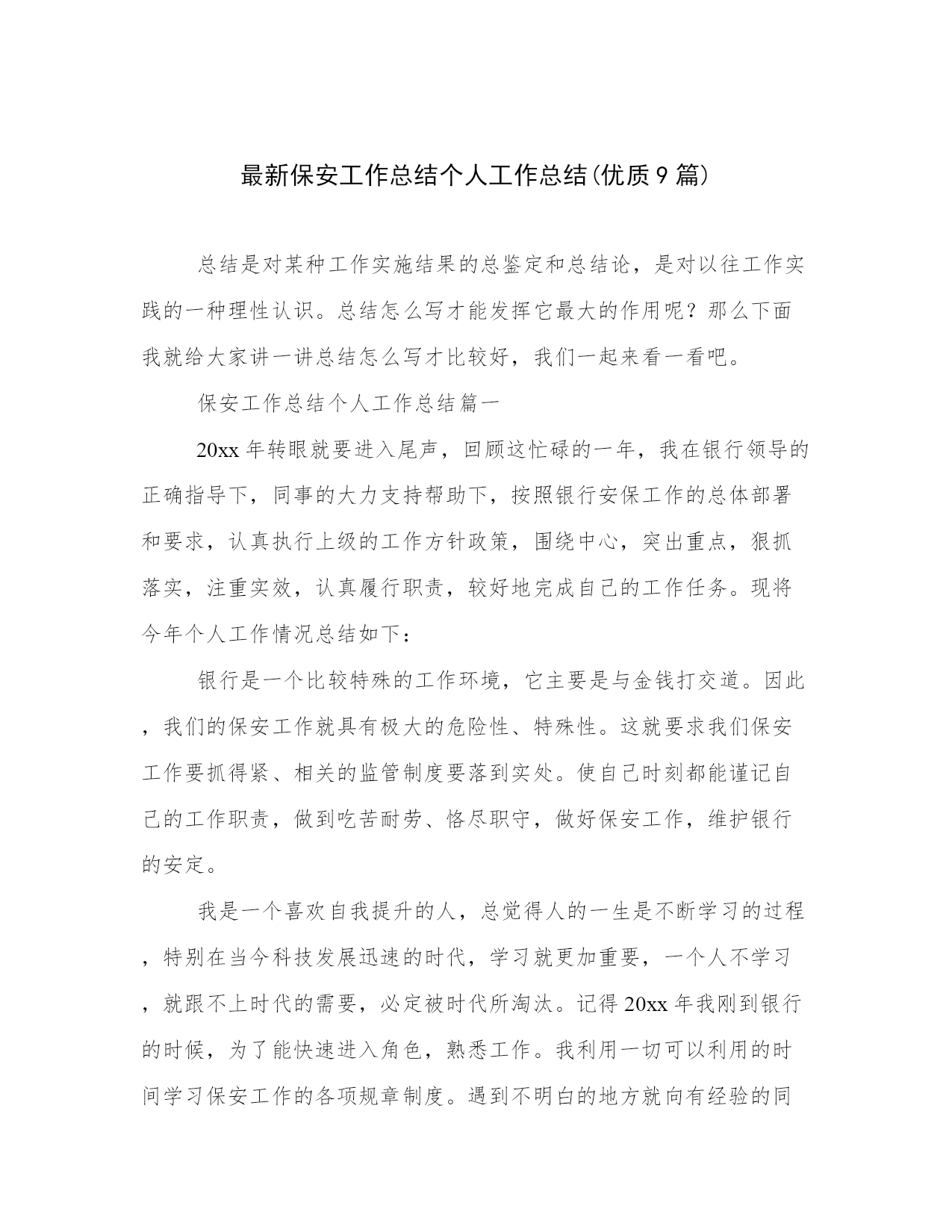 最新保安工作总结个人工作总结(优质9篇).docx