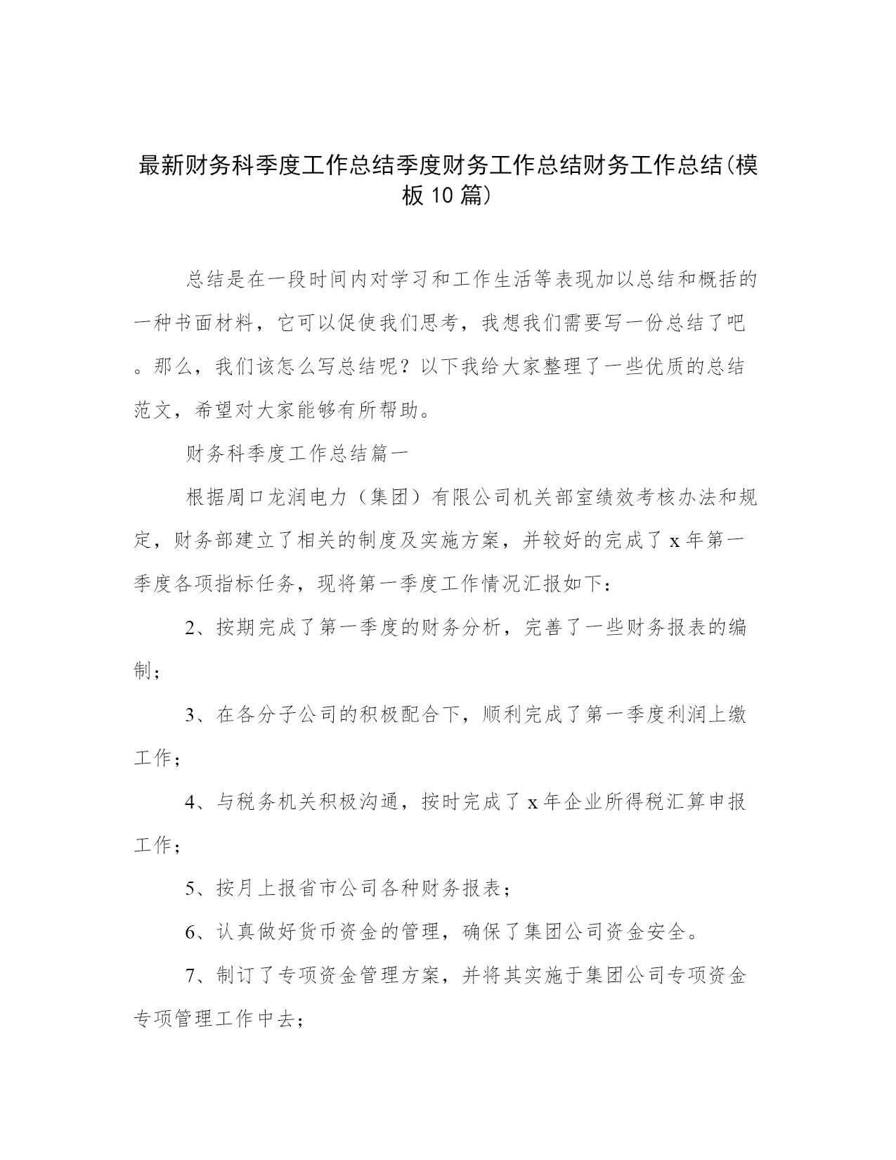 最新财务科季度工作总结季度财务工作总结财务工作总结(模板10篇).docx