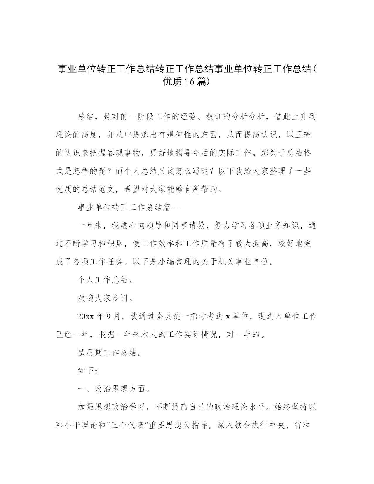 事业单位转正工作总结转正工作总结事业单位转正工作总结(优质16篇).docx