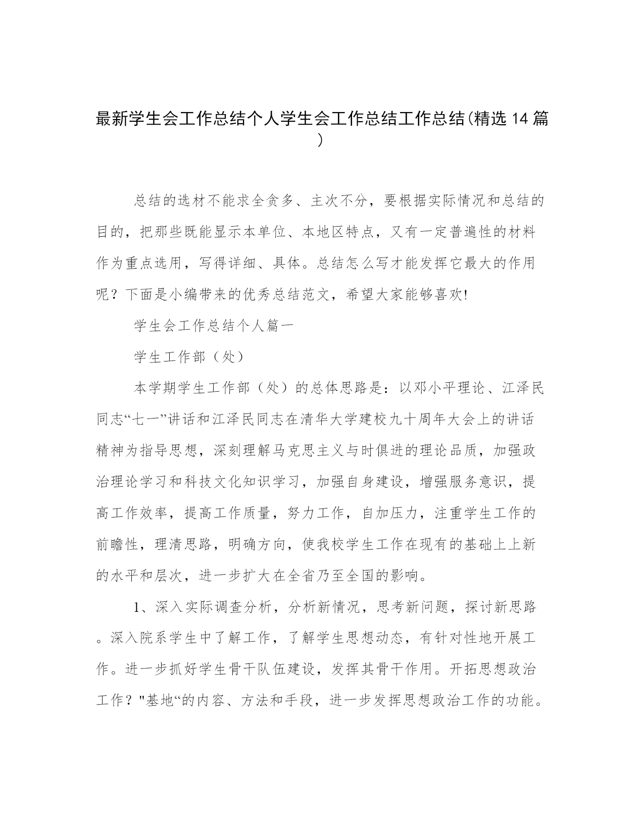 最新学生会工作总结个人学生会工作总结工作总结(精选14篇).docx