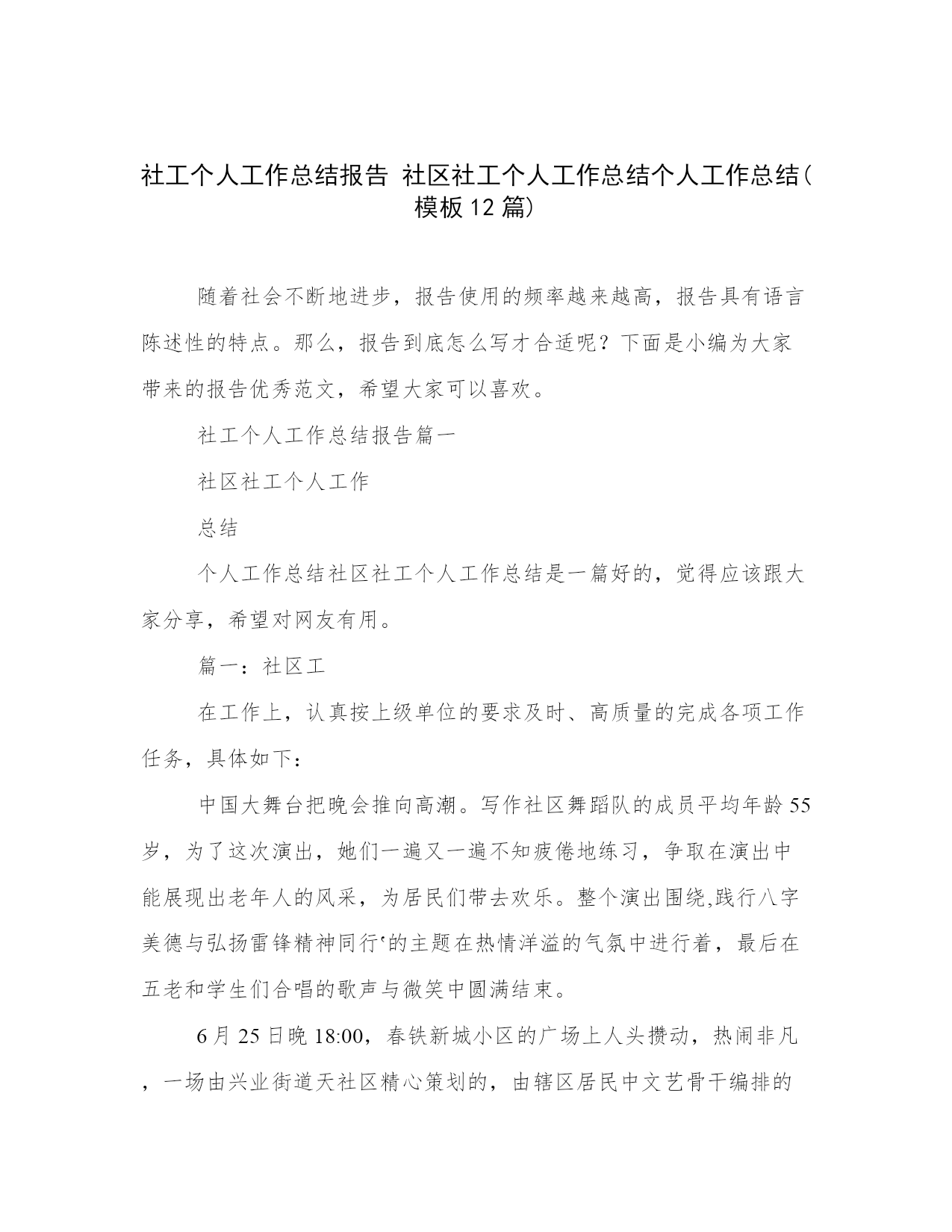 社工个人工作总结报告 社区社工个人工作总结个人工作总结(模板12篇).docx
