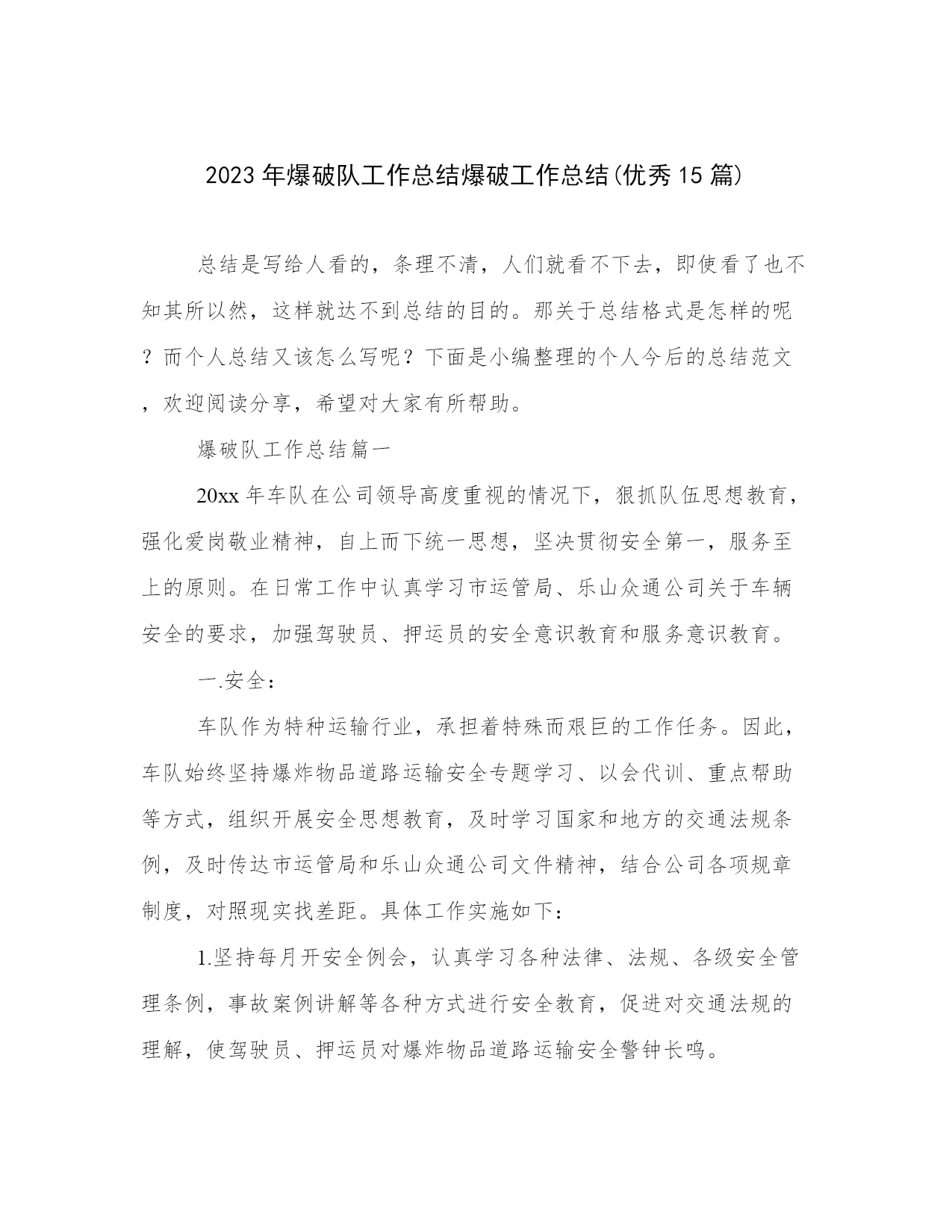 2023年爆破队工作总结爆破工作总结(优秀15篇).docx
