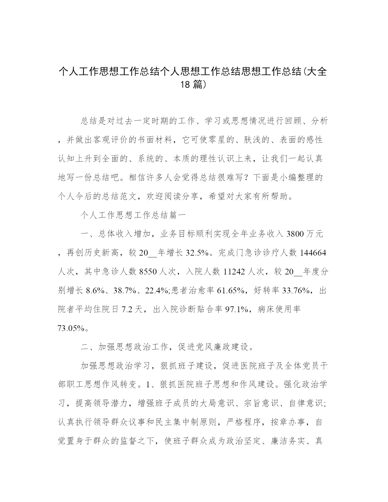 个人工作思想工作总结个人思想工作总结思想工作总结(大全18篇).docx