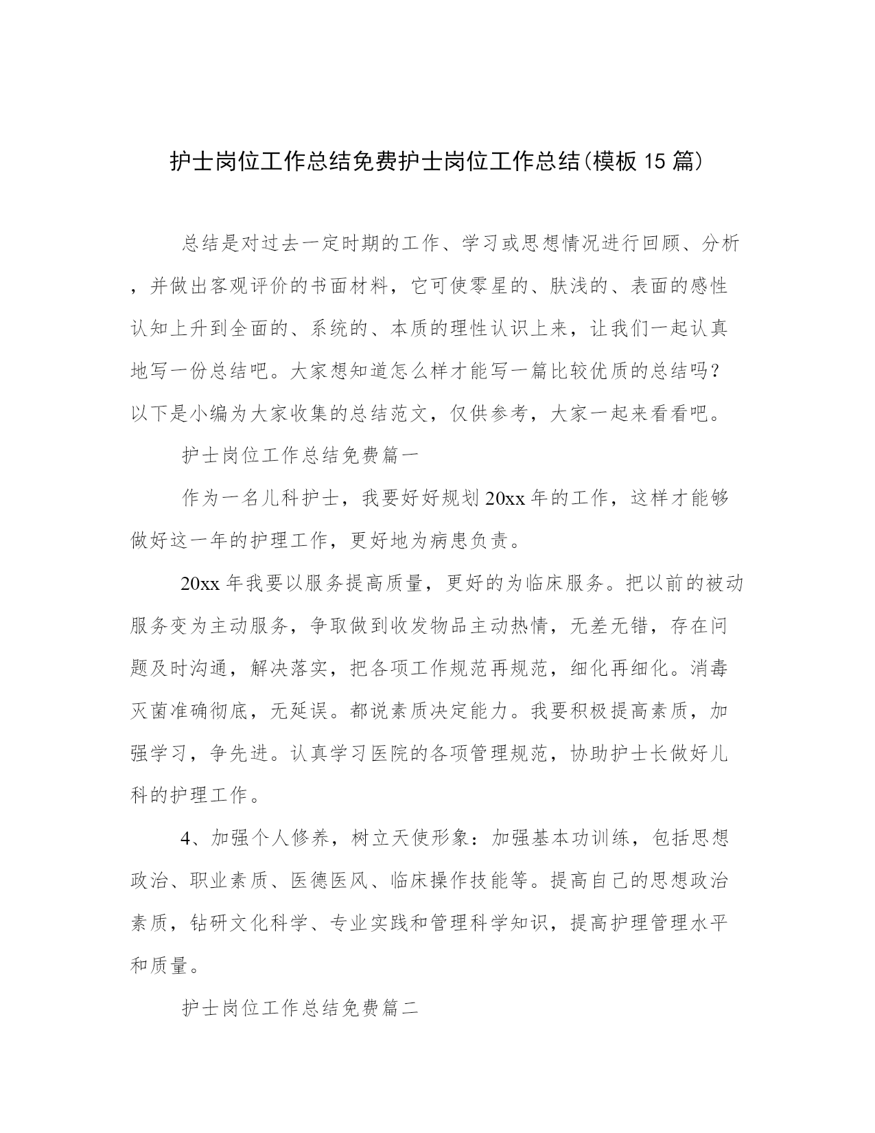 护士岗位工作总结免费护士岗位工作总结(模板15篇).docx