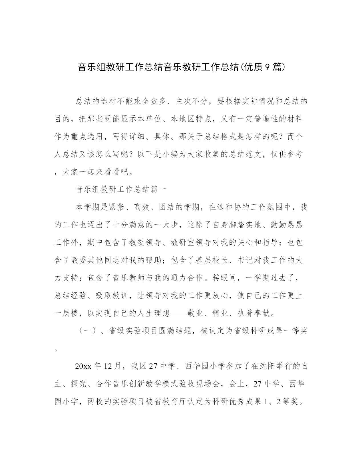 音乐组教研工作总结音乐教研工作总结(优质9篇).docx
