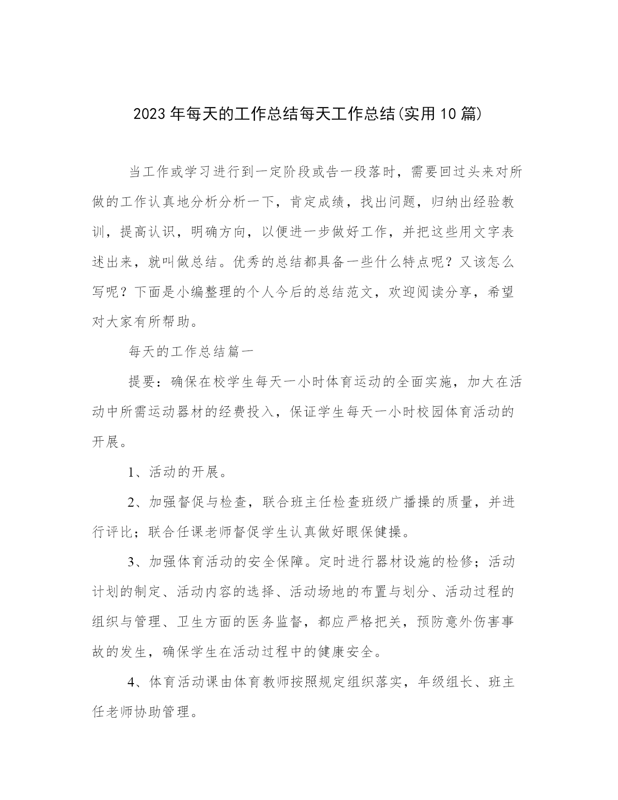 2023年每天的工作总结每天工作总结(实用10篇).docx