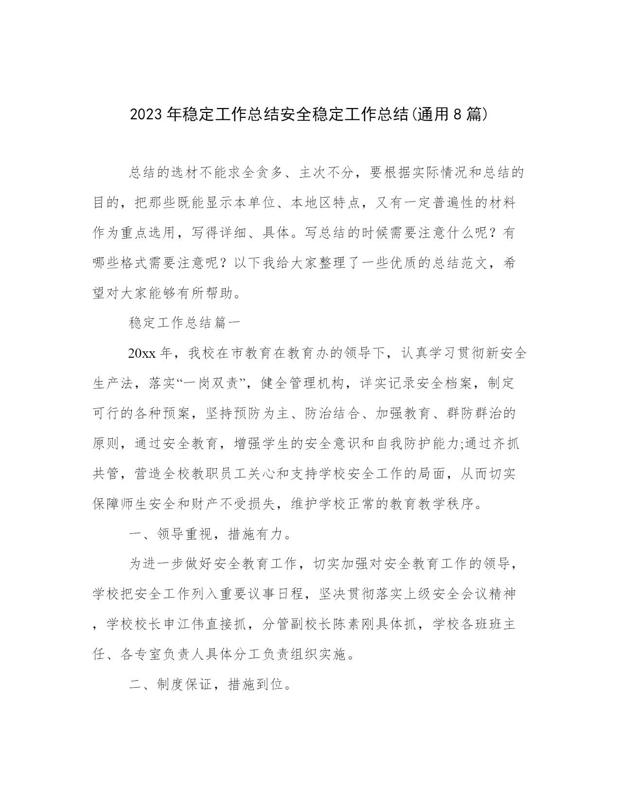 2023年稳定工作总结安全稳定工作总结(通用8篇).docx