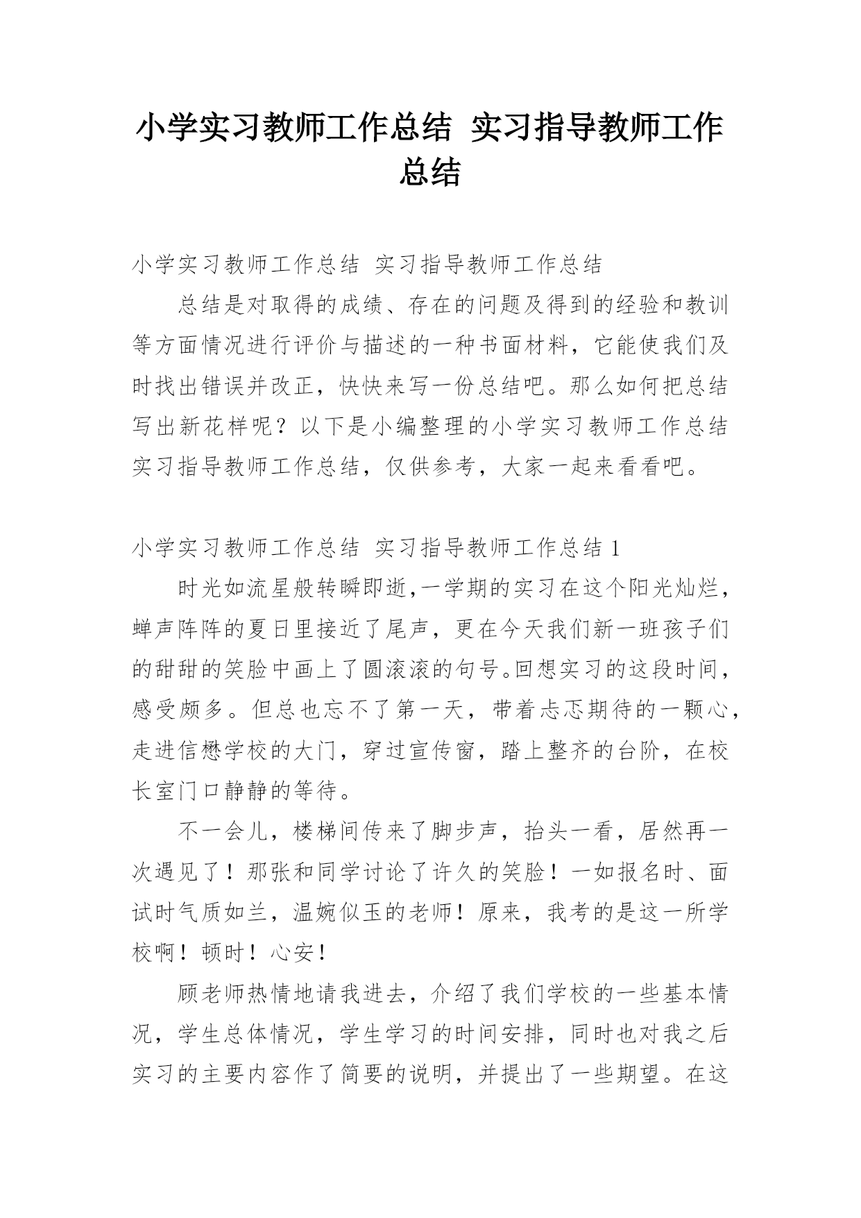 小学实习教师工作总结 实习指导教师工作总结.docx