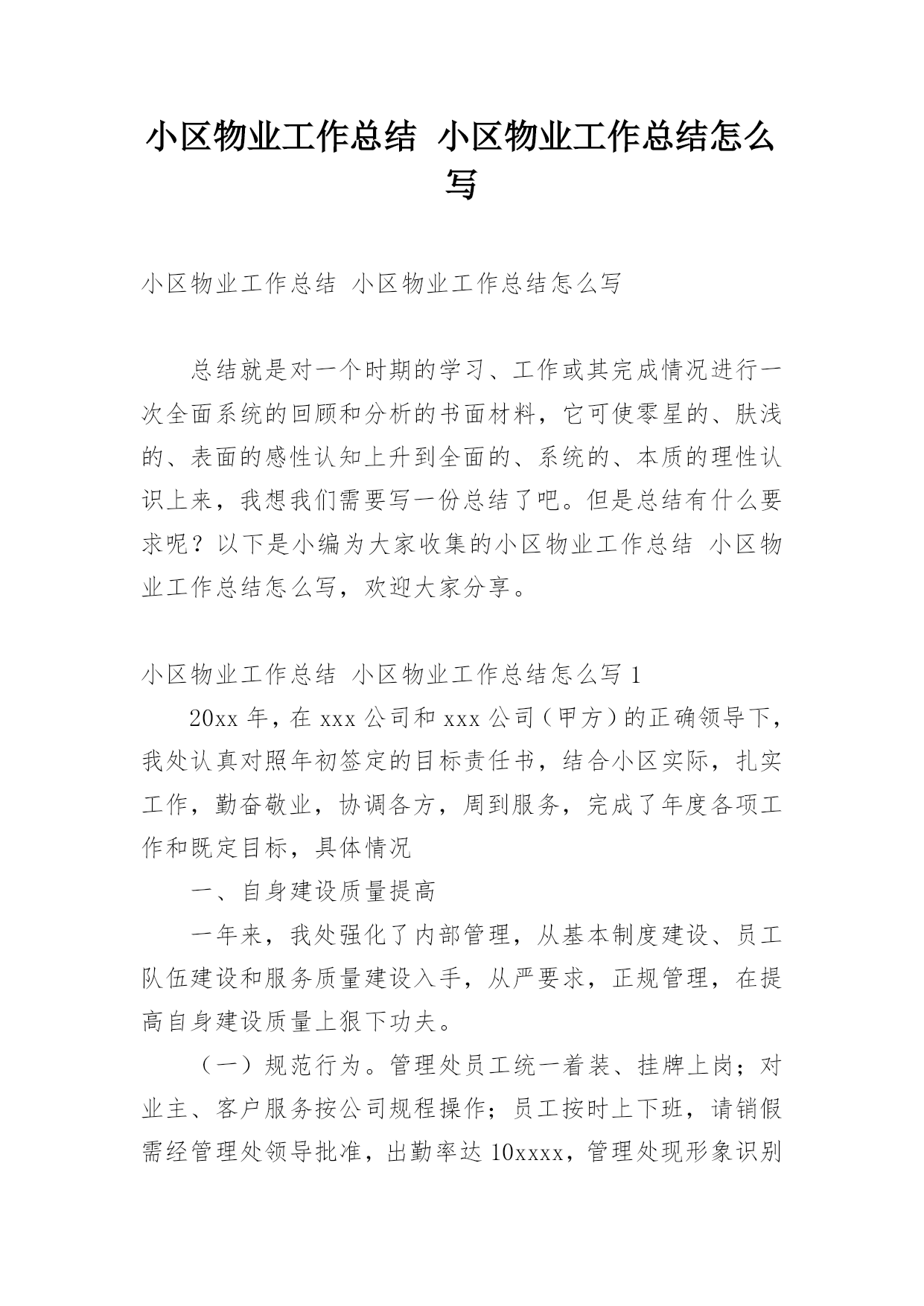 小区物业工作总结 小区物业工作总结怎么写.docx