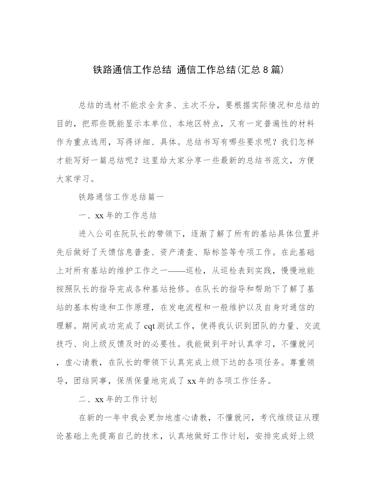 铁路通信工作总结 通信工作总结(汇总8篇).docx